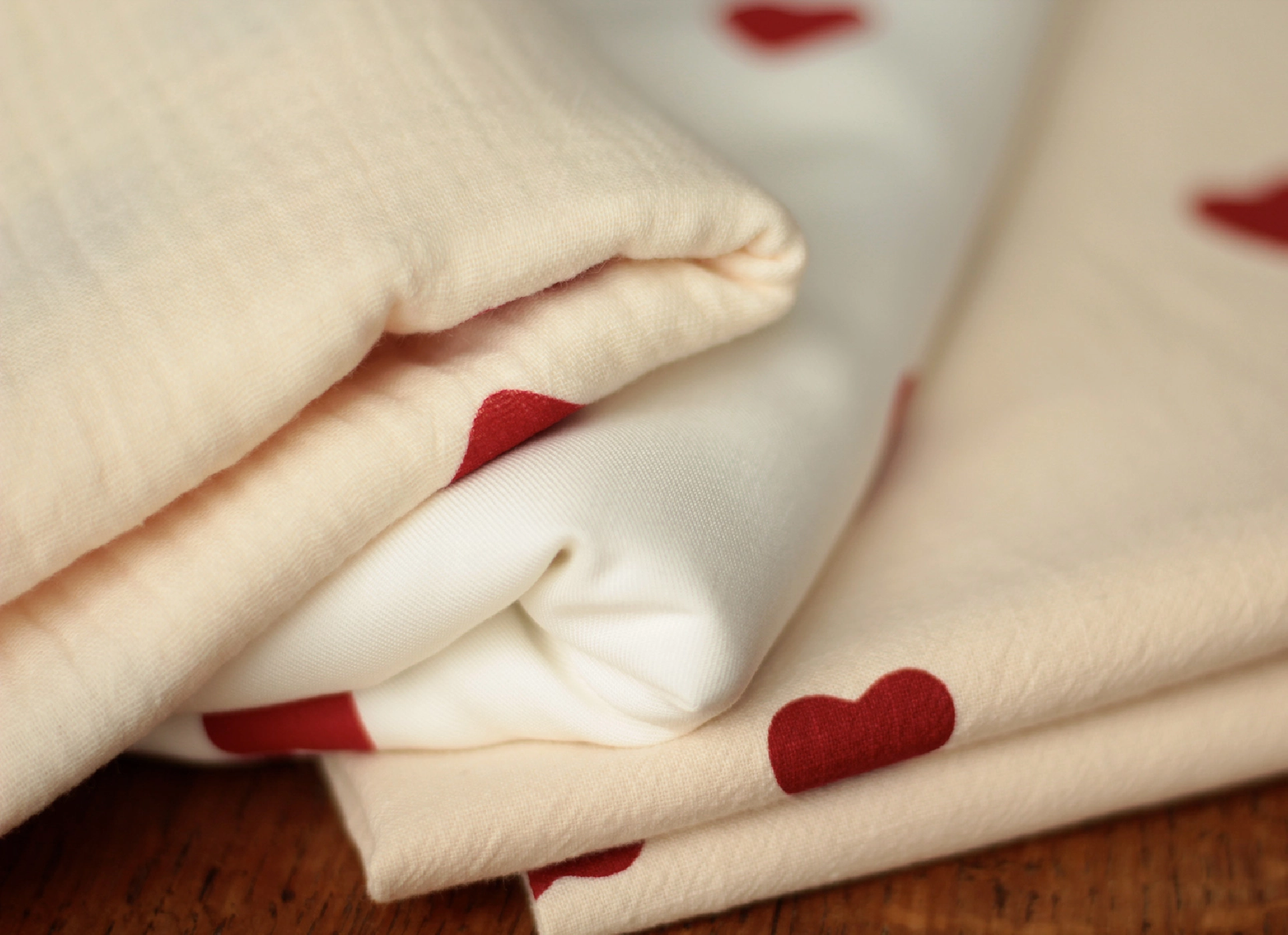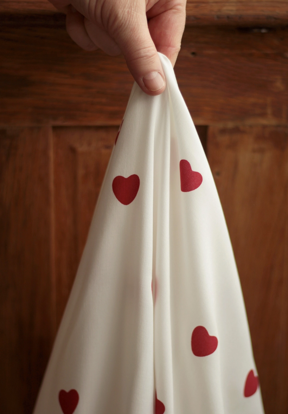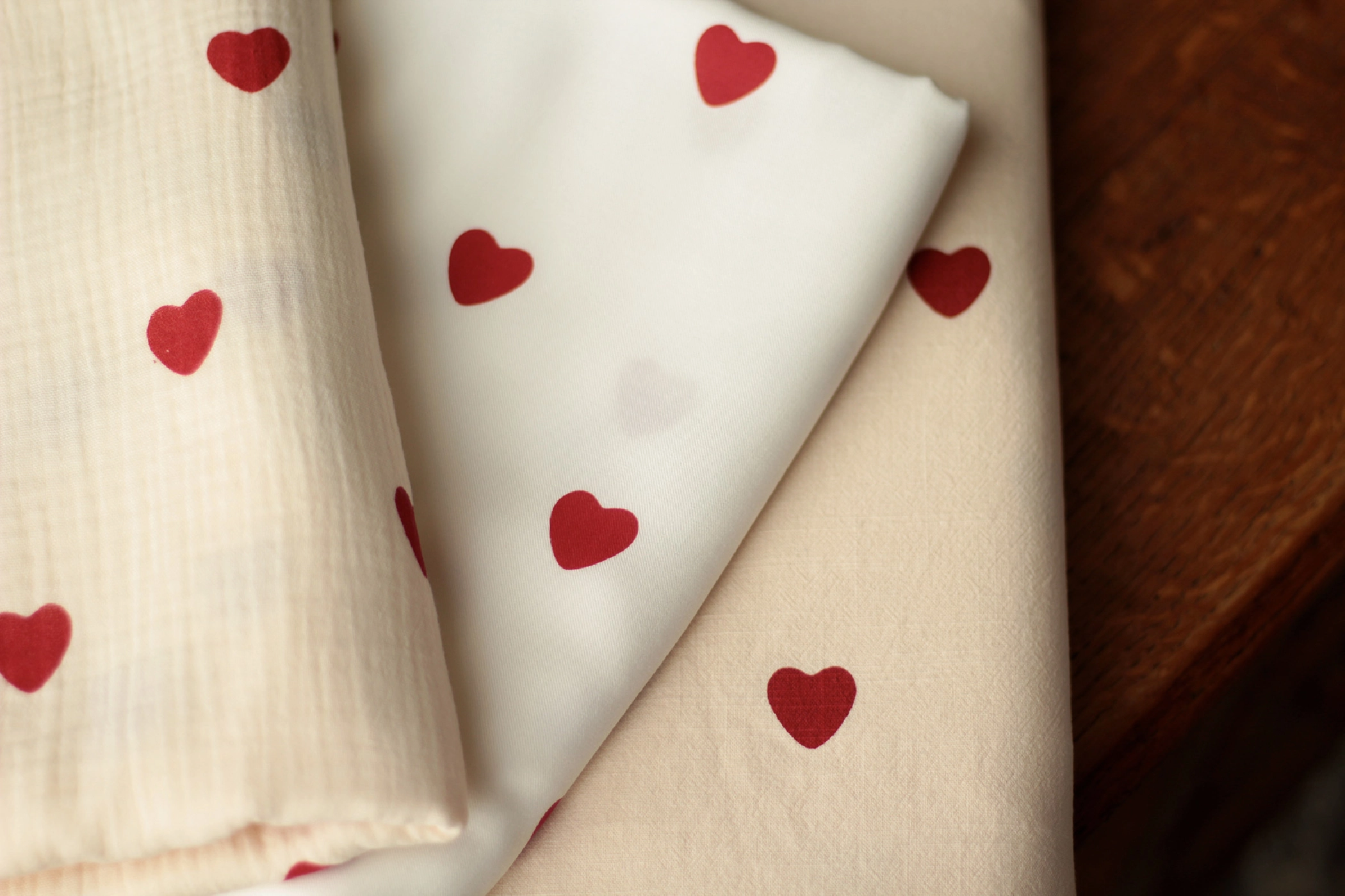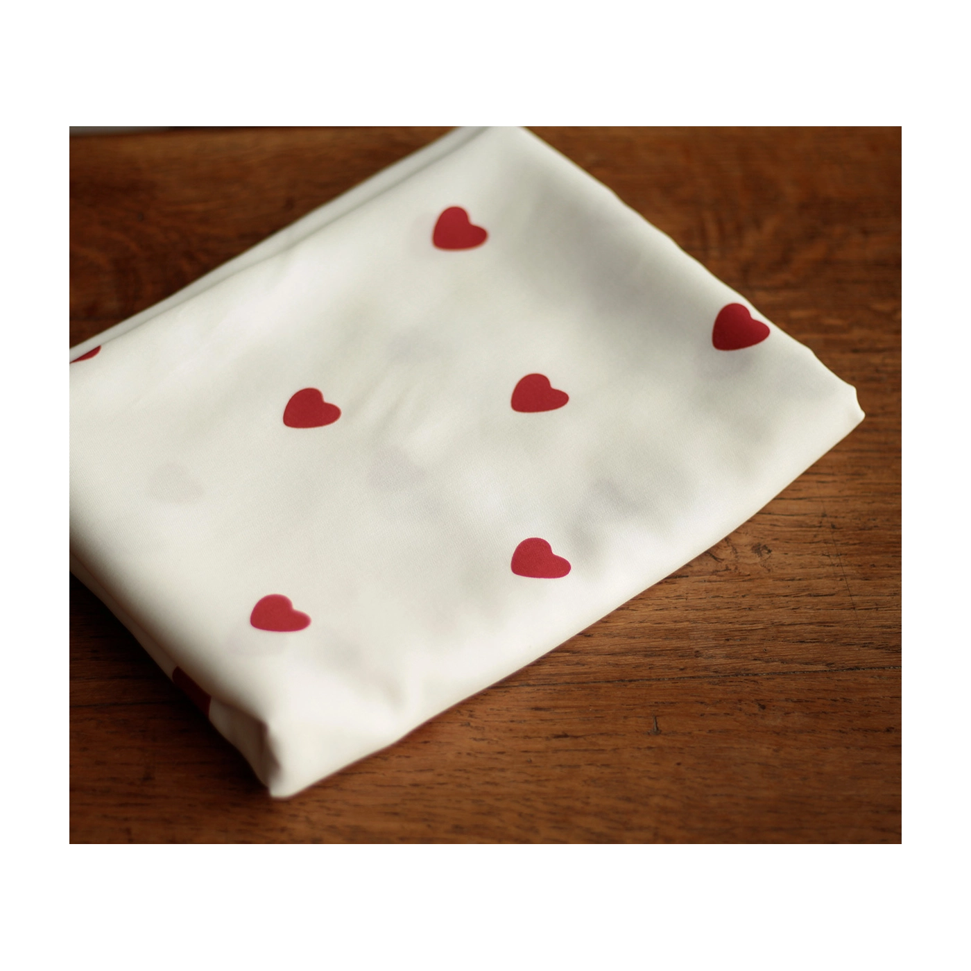 Coupon de 120 cm de Manou - Viscose blanc cassé imprimé exclusif coeurs rouges