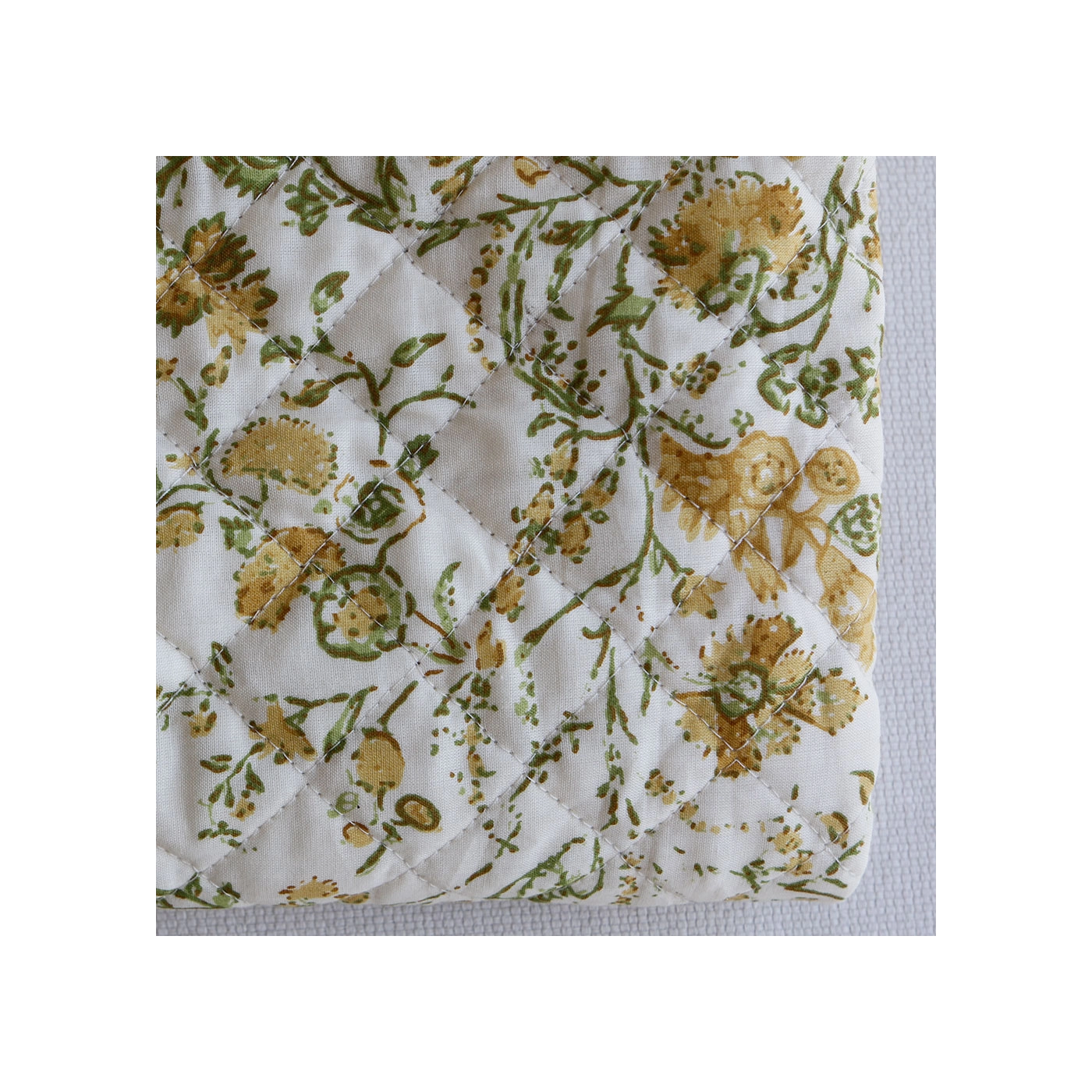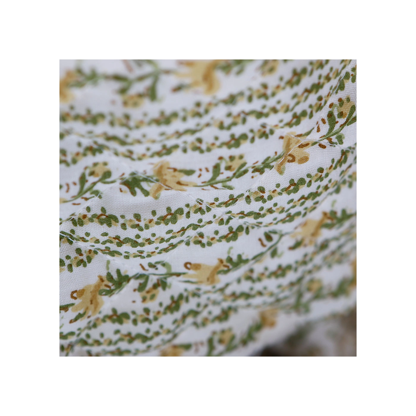 - A noter que le processus artisanal (impression à la main, au tampon en bois) de ce tissu fait que chaque pièce est unique et que l'impression ET le matelassage ne sont pas aussi parfaits qu'un processus industriel.