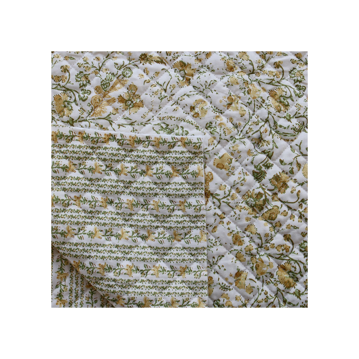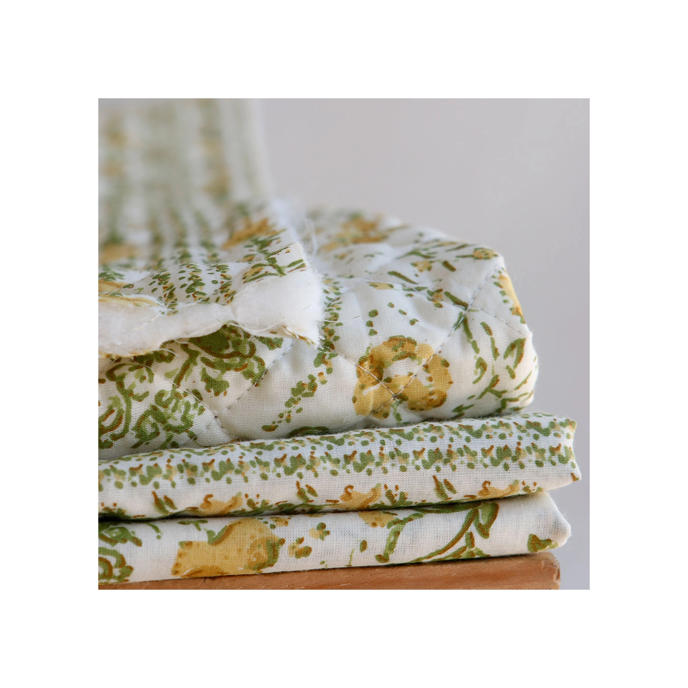 Nous avons décliné cette collection avec nos partenaires en Inde, afin de vous proposer pour le même motif le tissu en coton, et la version double face matelassée.