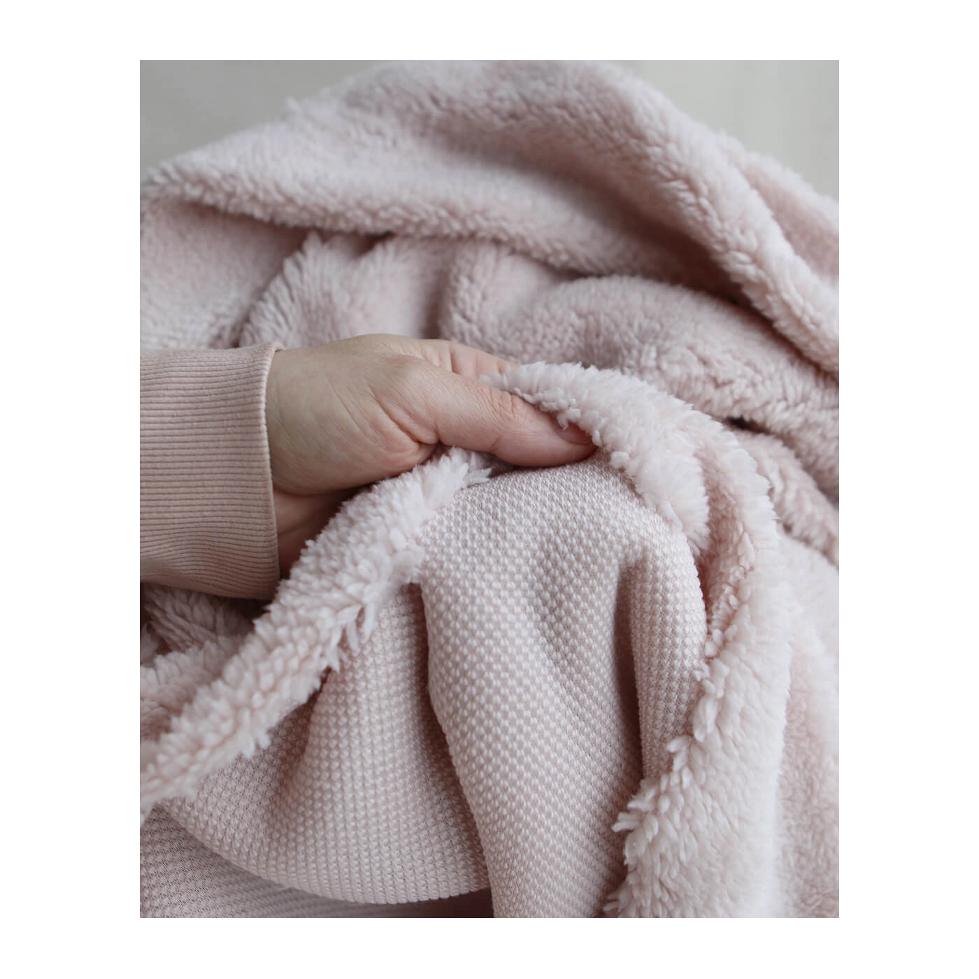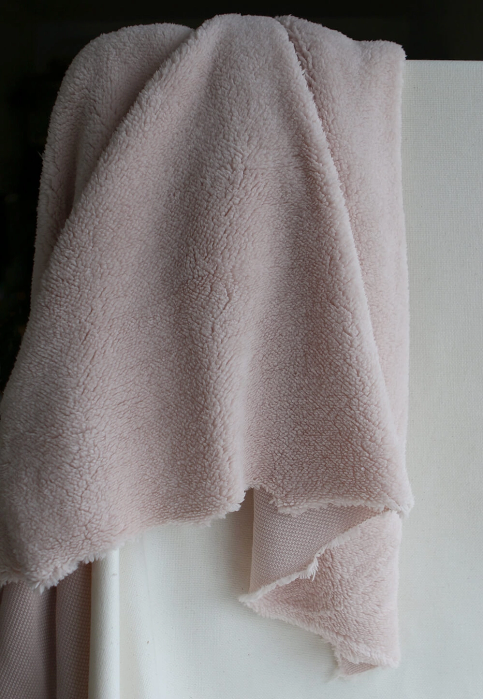 Coupon de 125 cm x 130 cm de laize de Teddy / moumoute bouclé coloris rose poudré