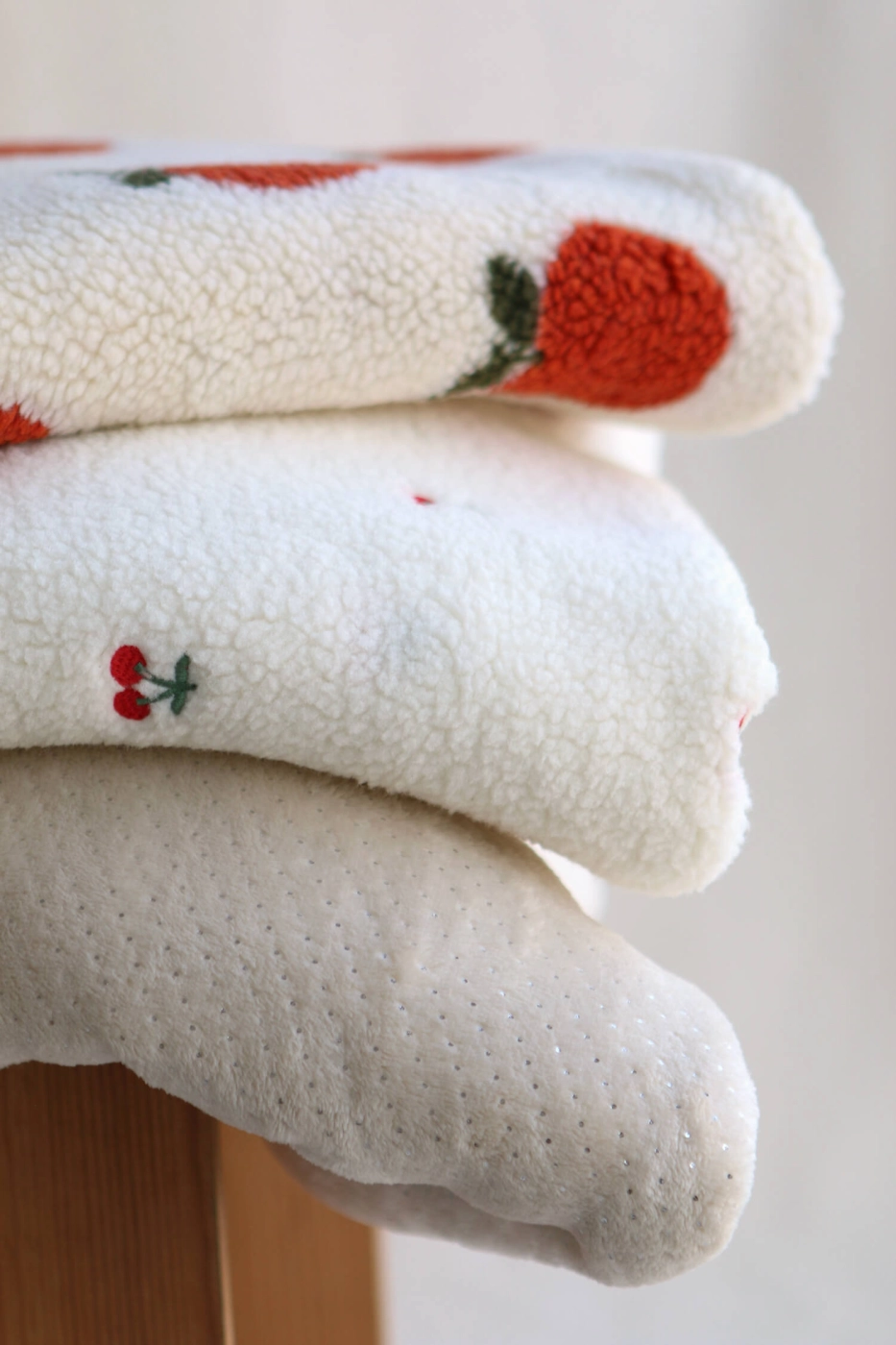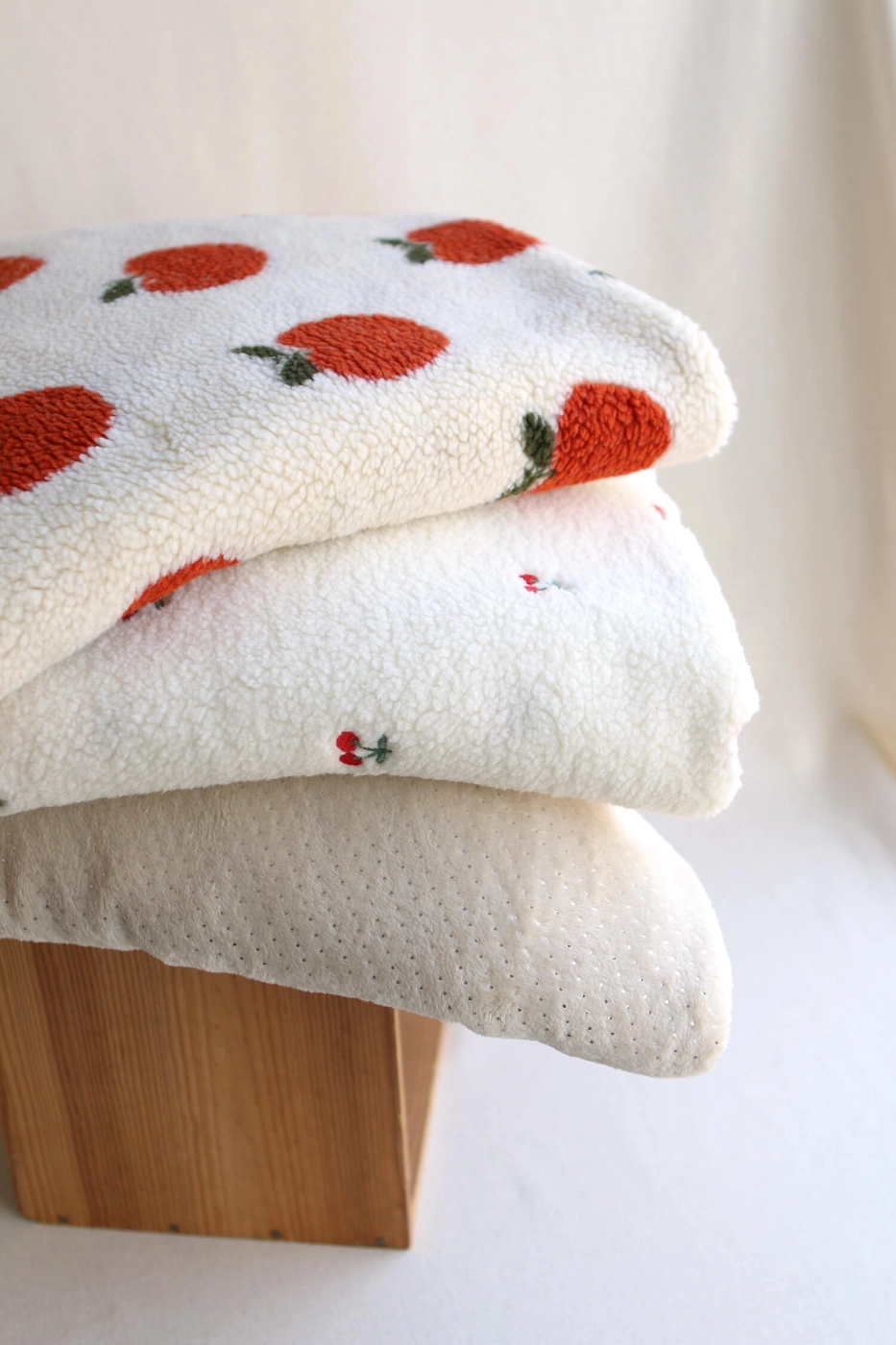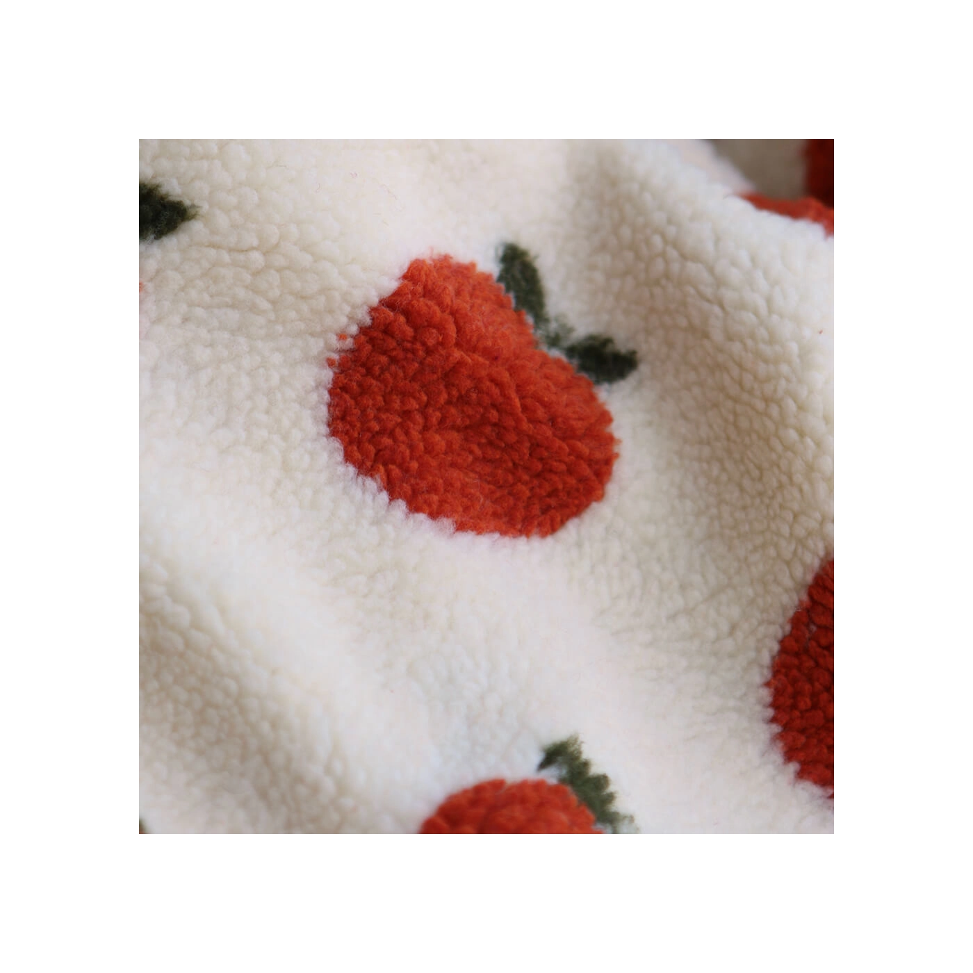 Coupon de 47 cm Teddy / moumoute bouclé fond écru motif pommes