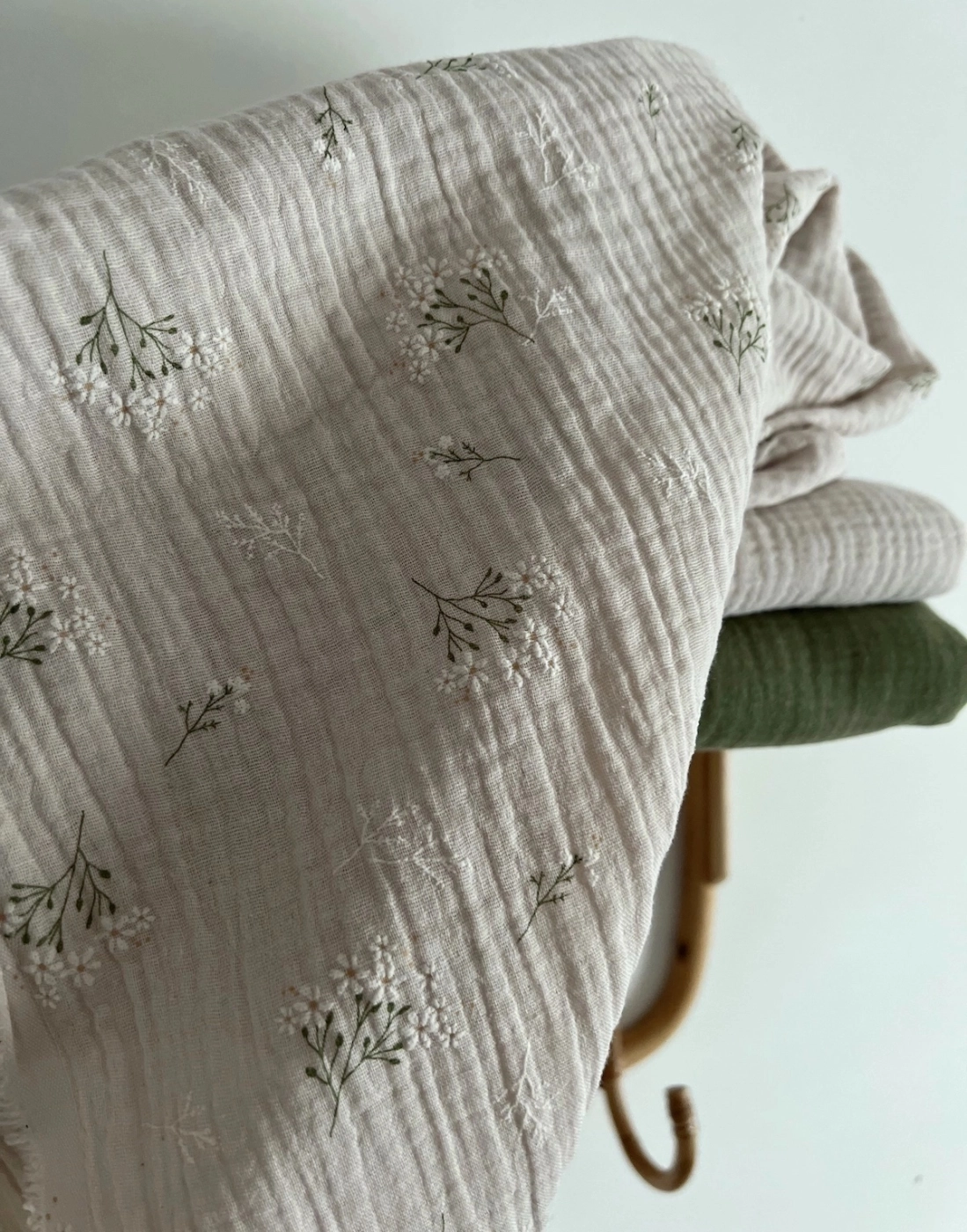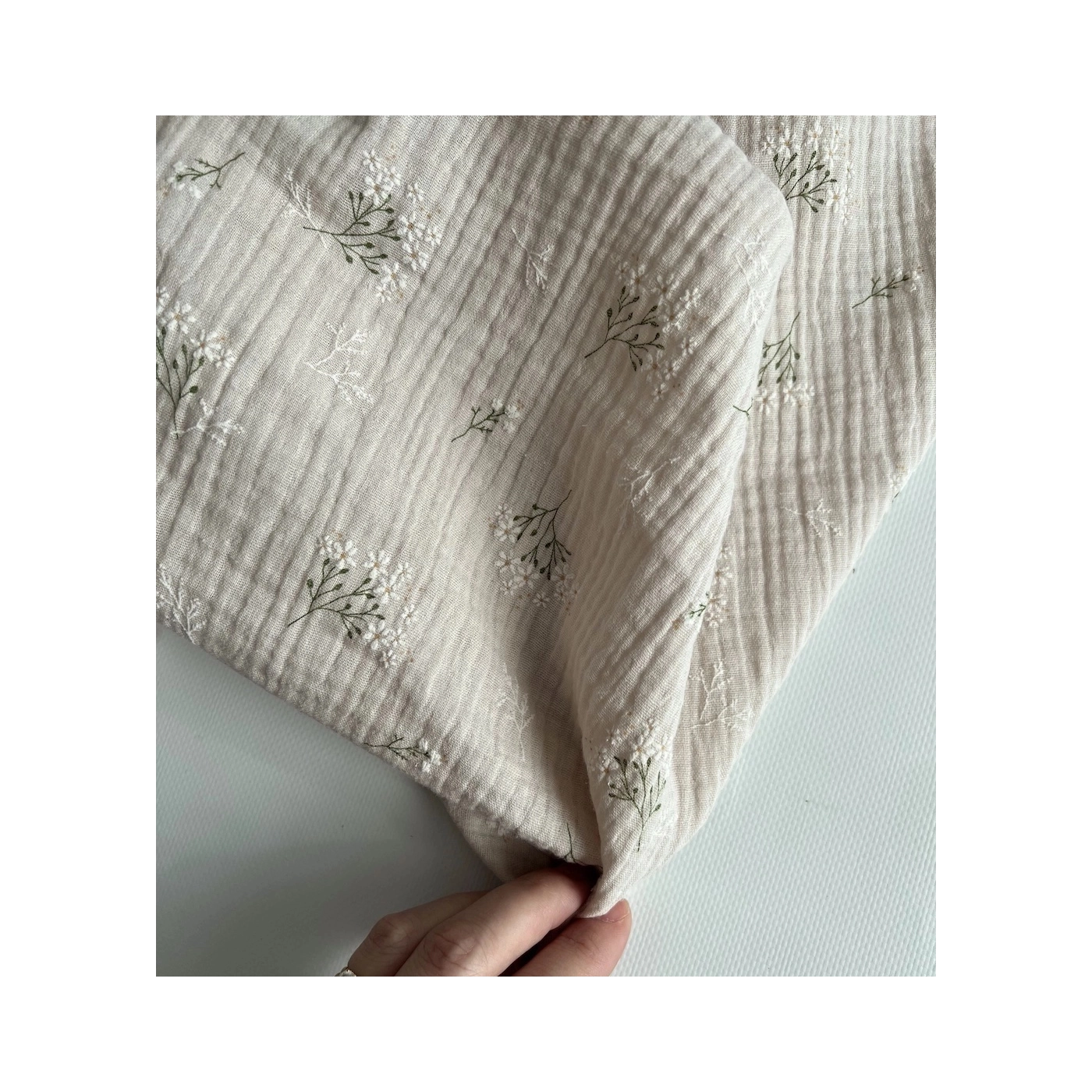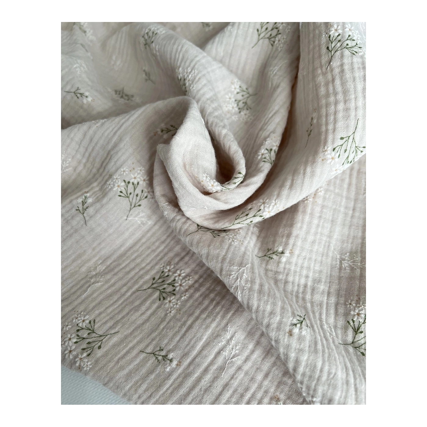 coupon de 92 cm de Camomille - Double gaze de coton BIO crème motif exclusif