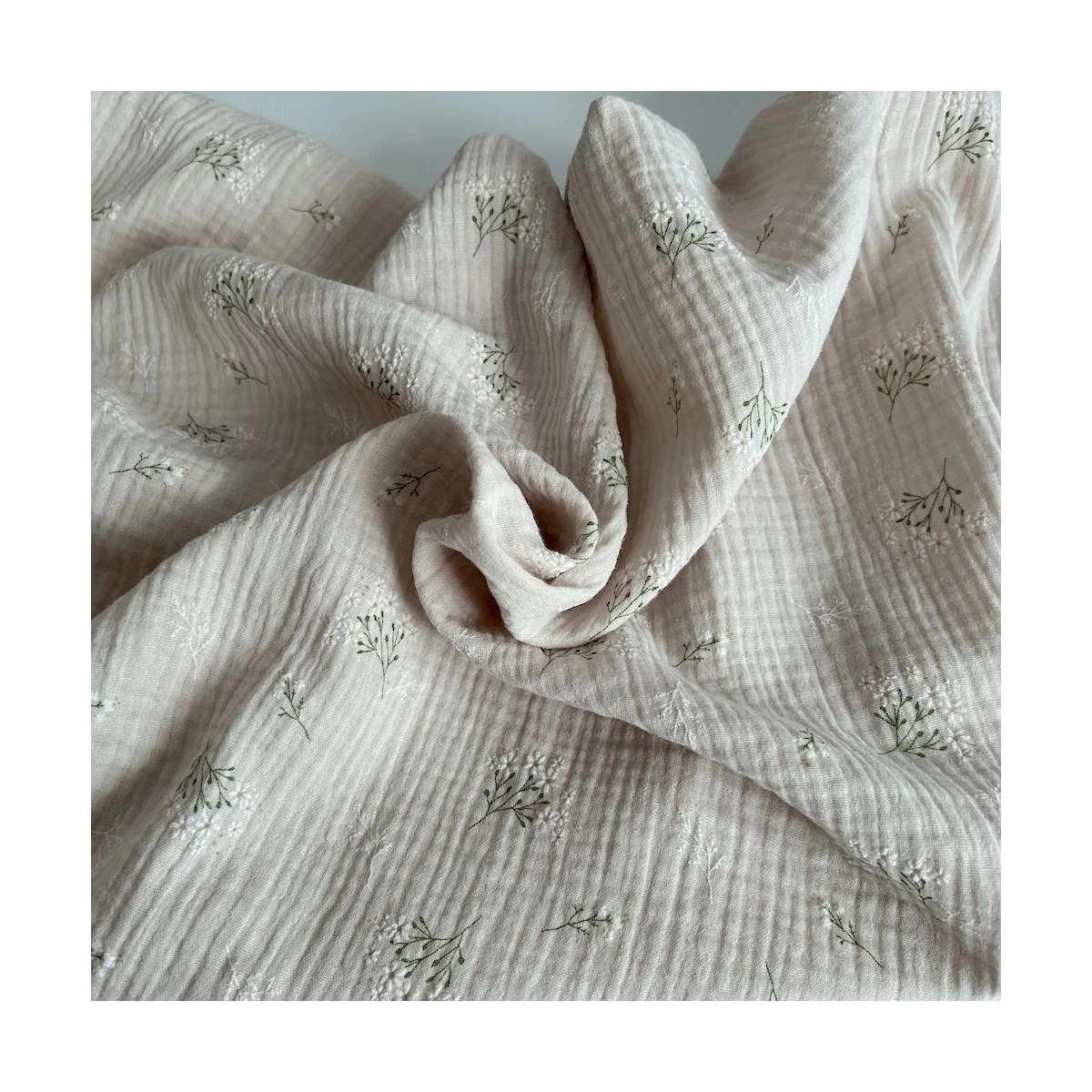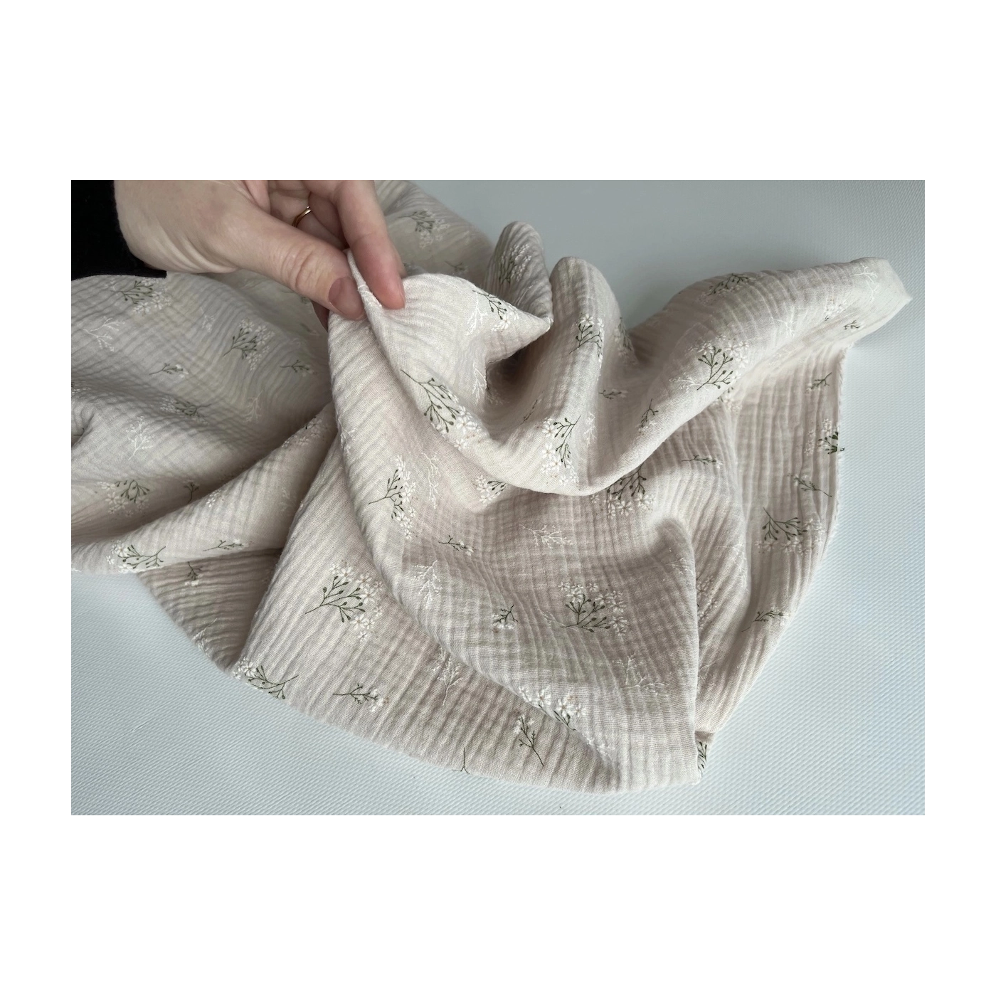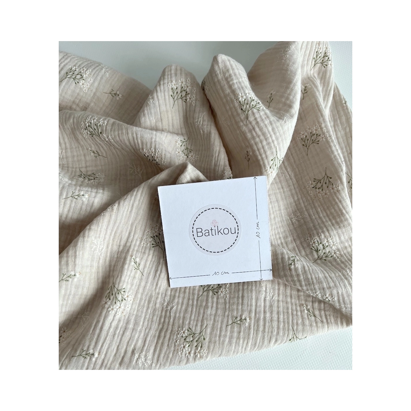 coupon de 92 cm de Camomille - Double gaze de coton BIO crème motif exclusif