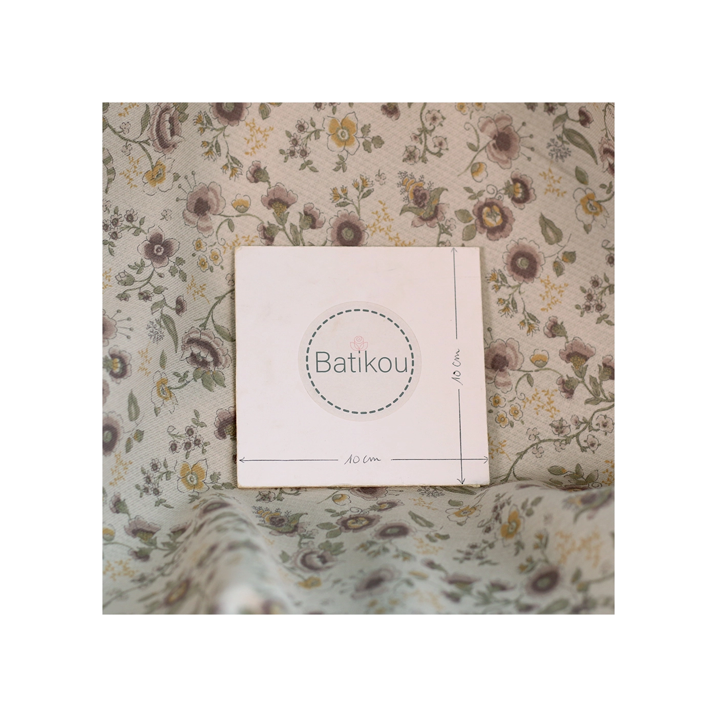 Coupon de 105 cm de April - Tissu coton piqué léger texturé fleuri kaki