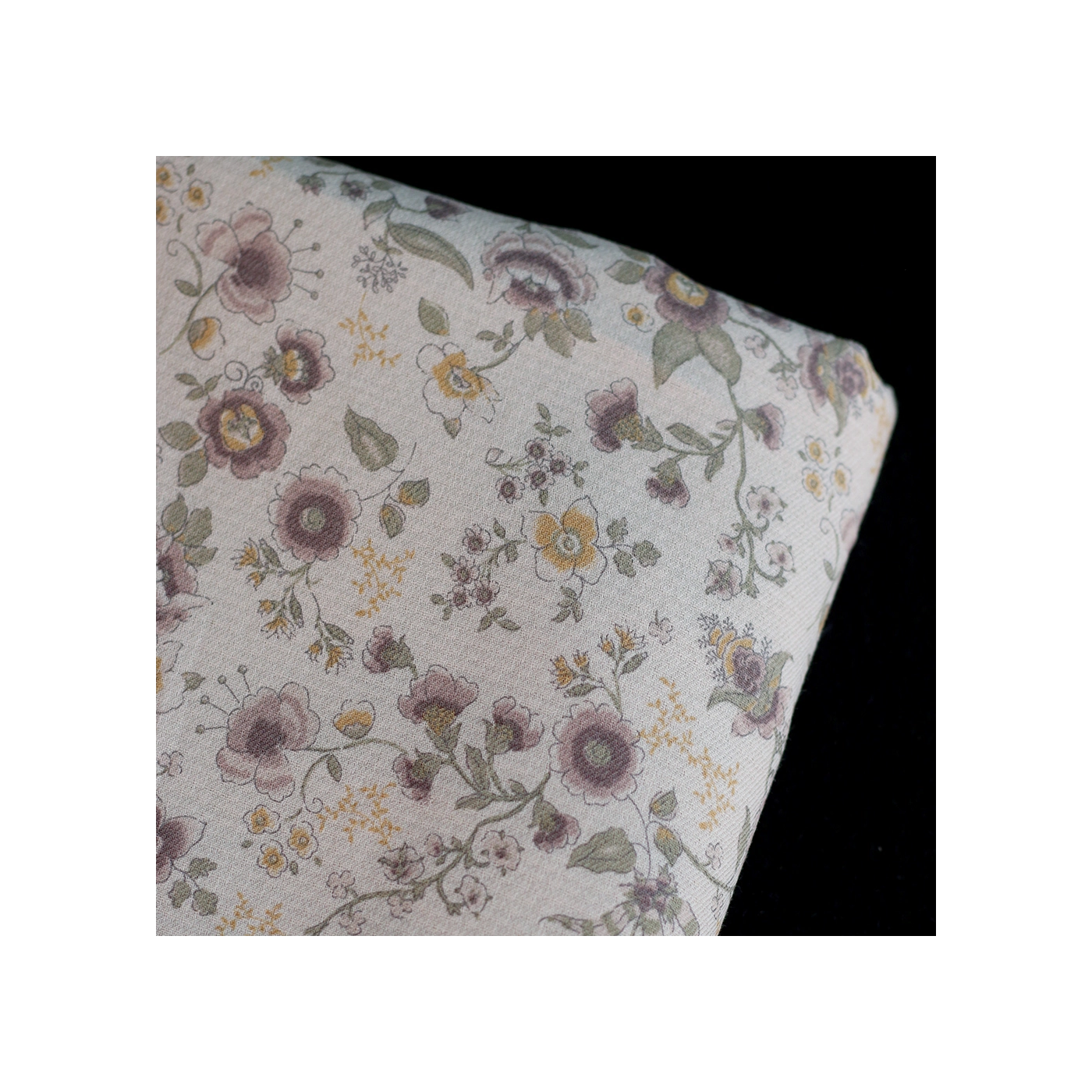 Coloris: fond gris fleuri kaki, moutarde, violine