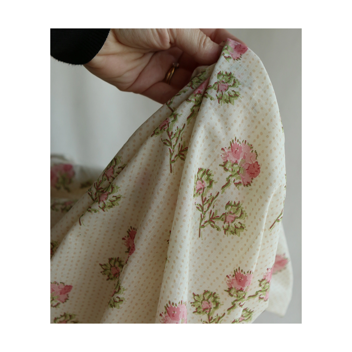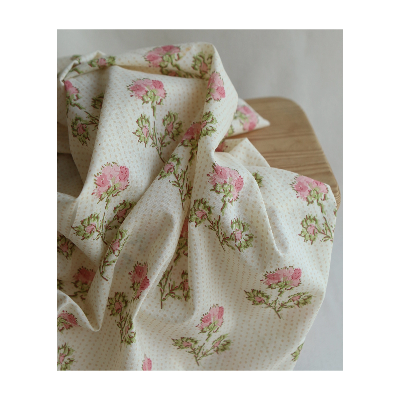 Karishma rose B- Tissu indien en coton imprimé main Hand Block Artisanal