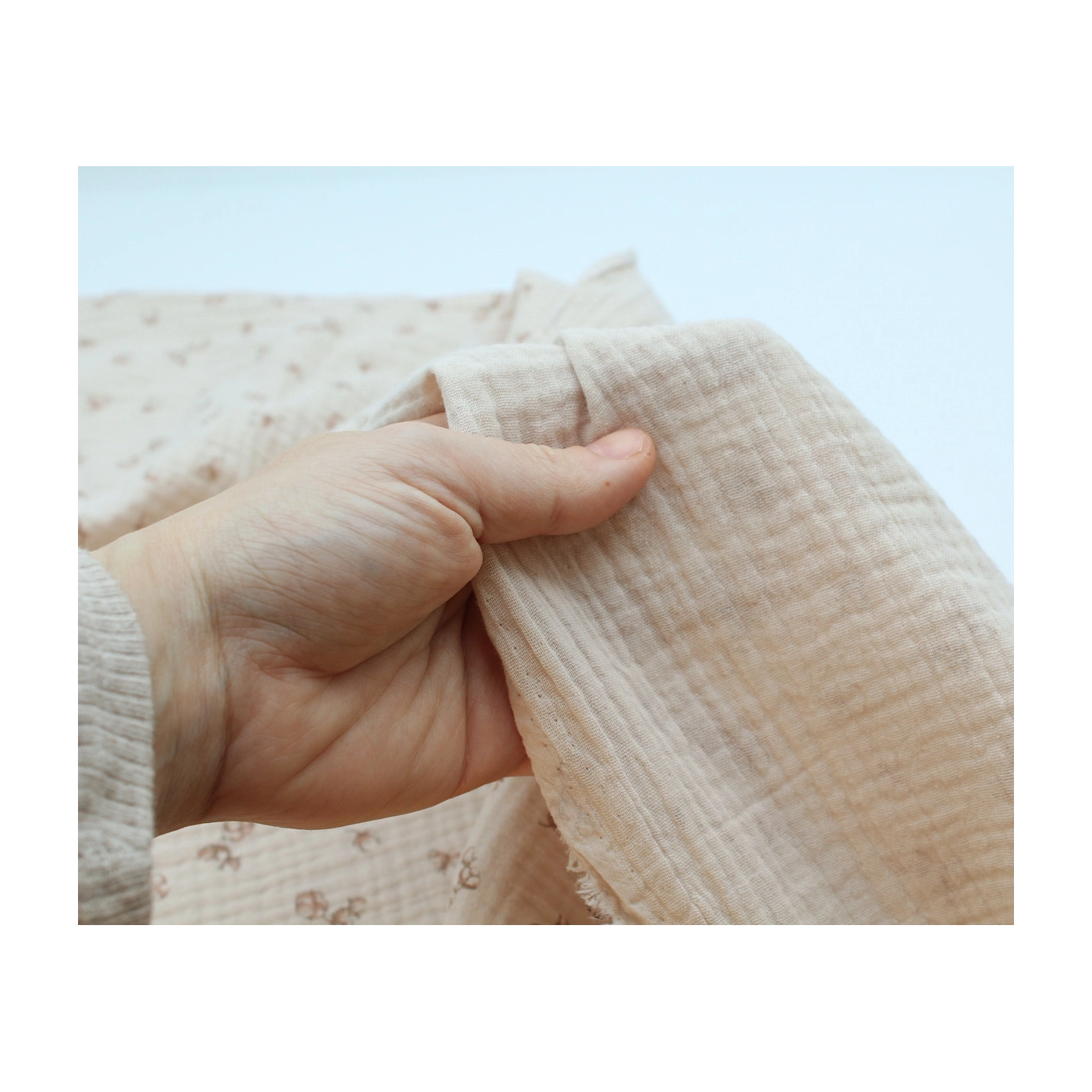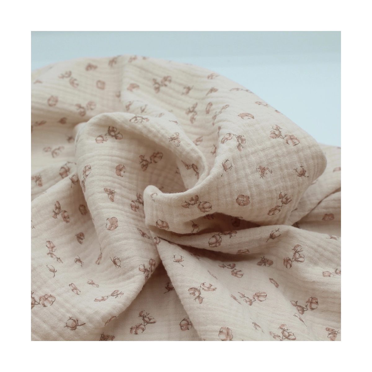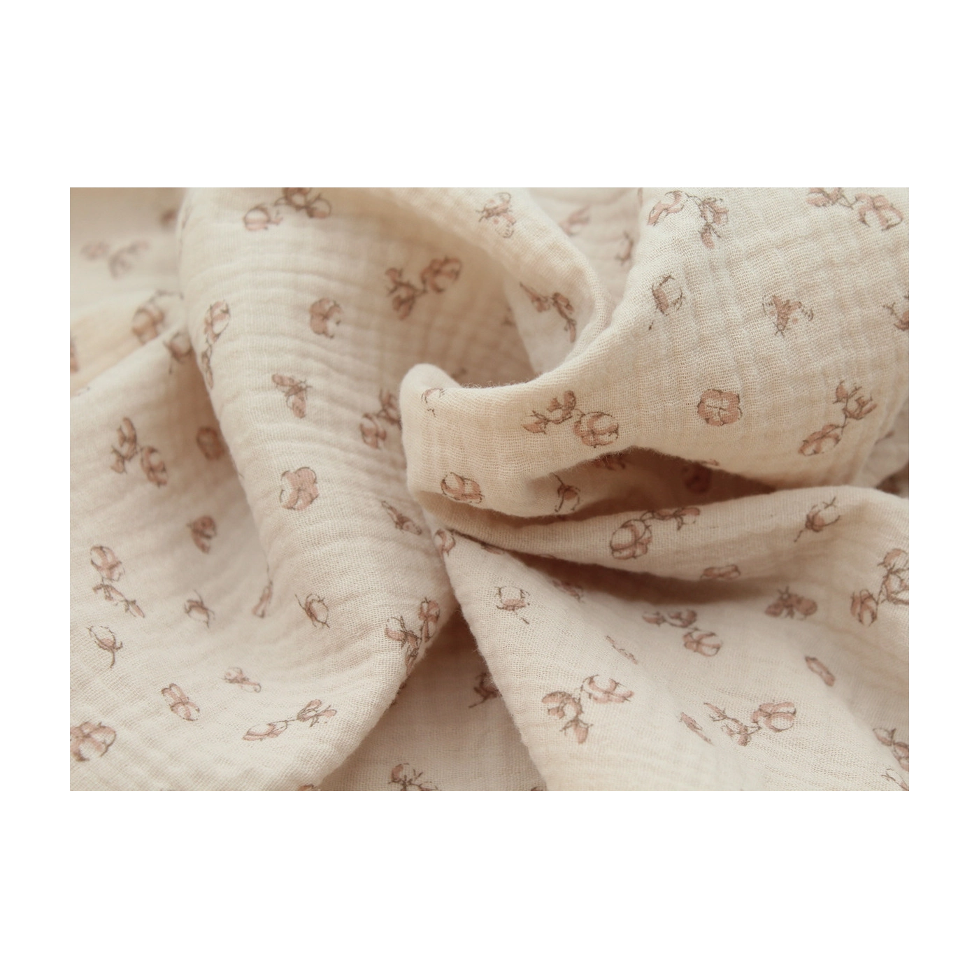Coupon de 128 cm de Double gaze de coton coloris nude naturel à motifs fleurs de coton