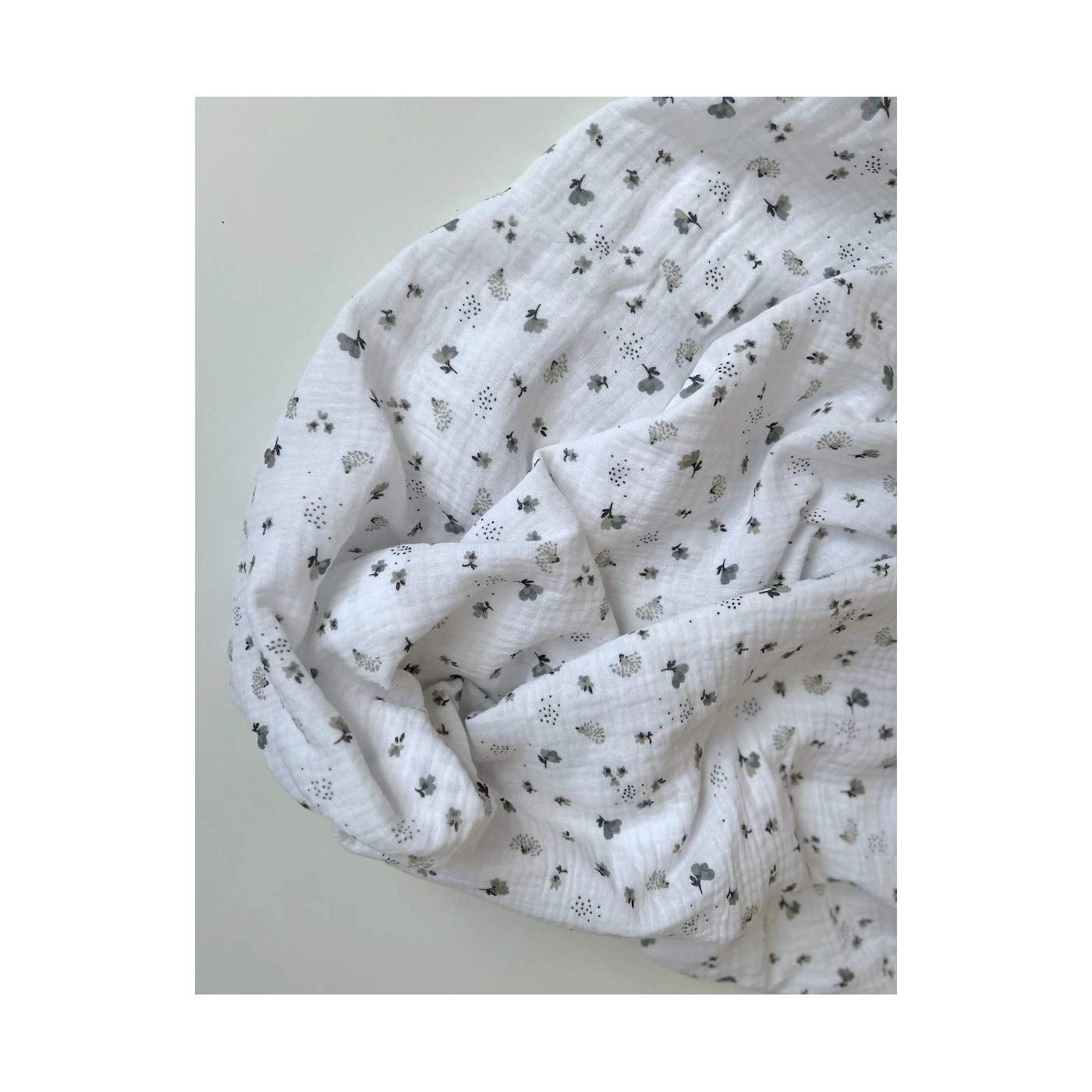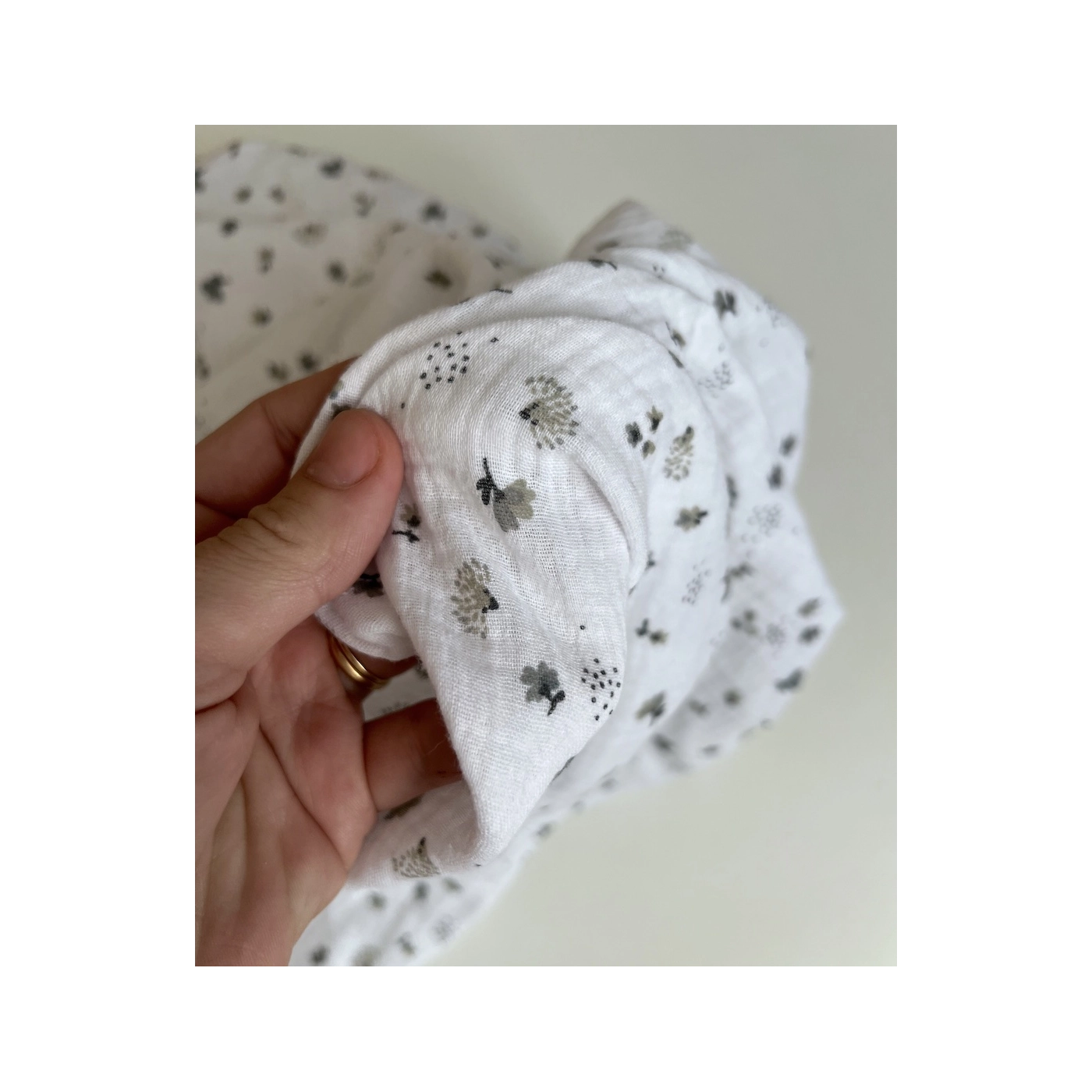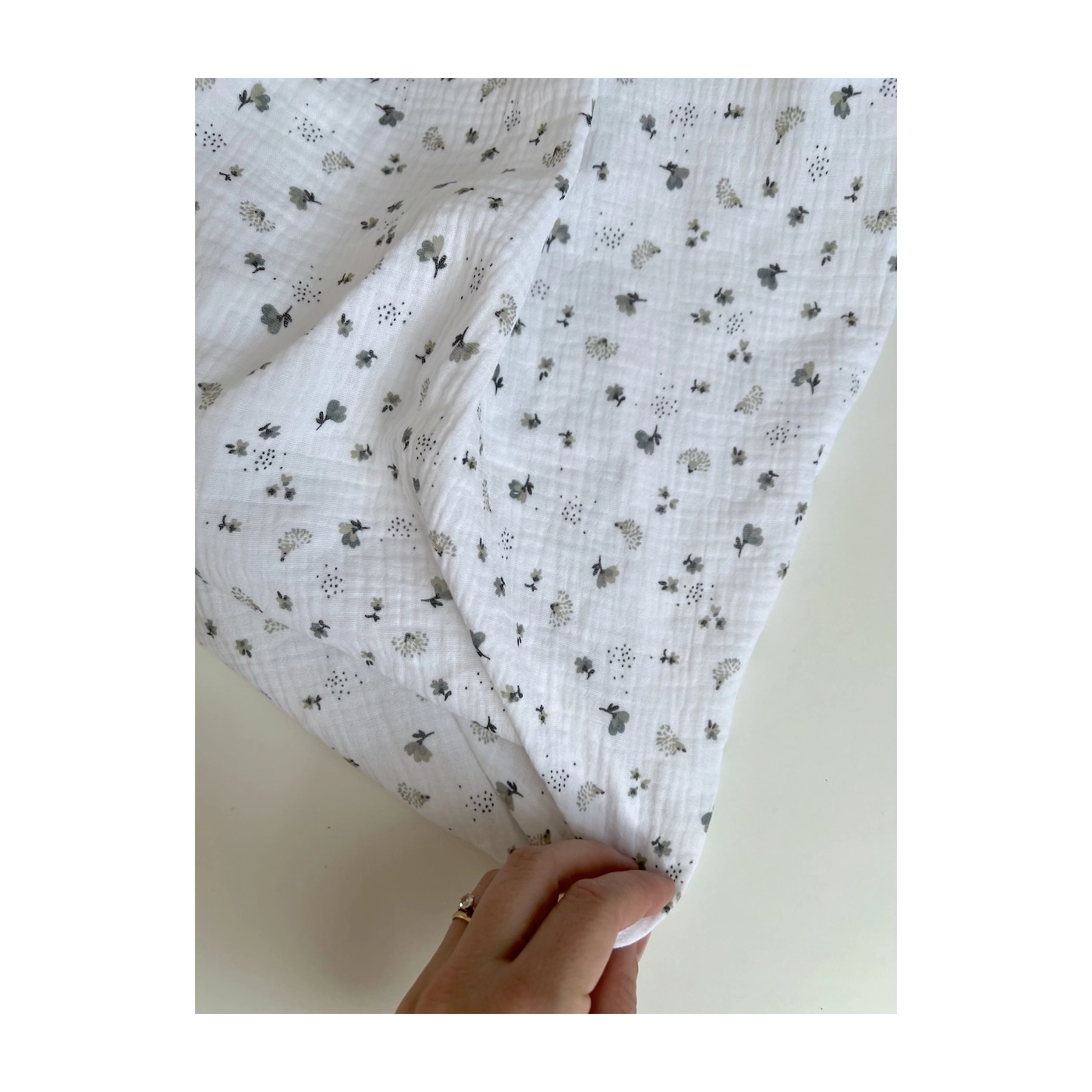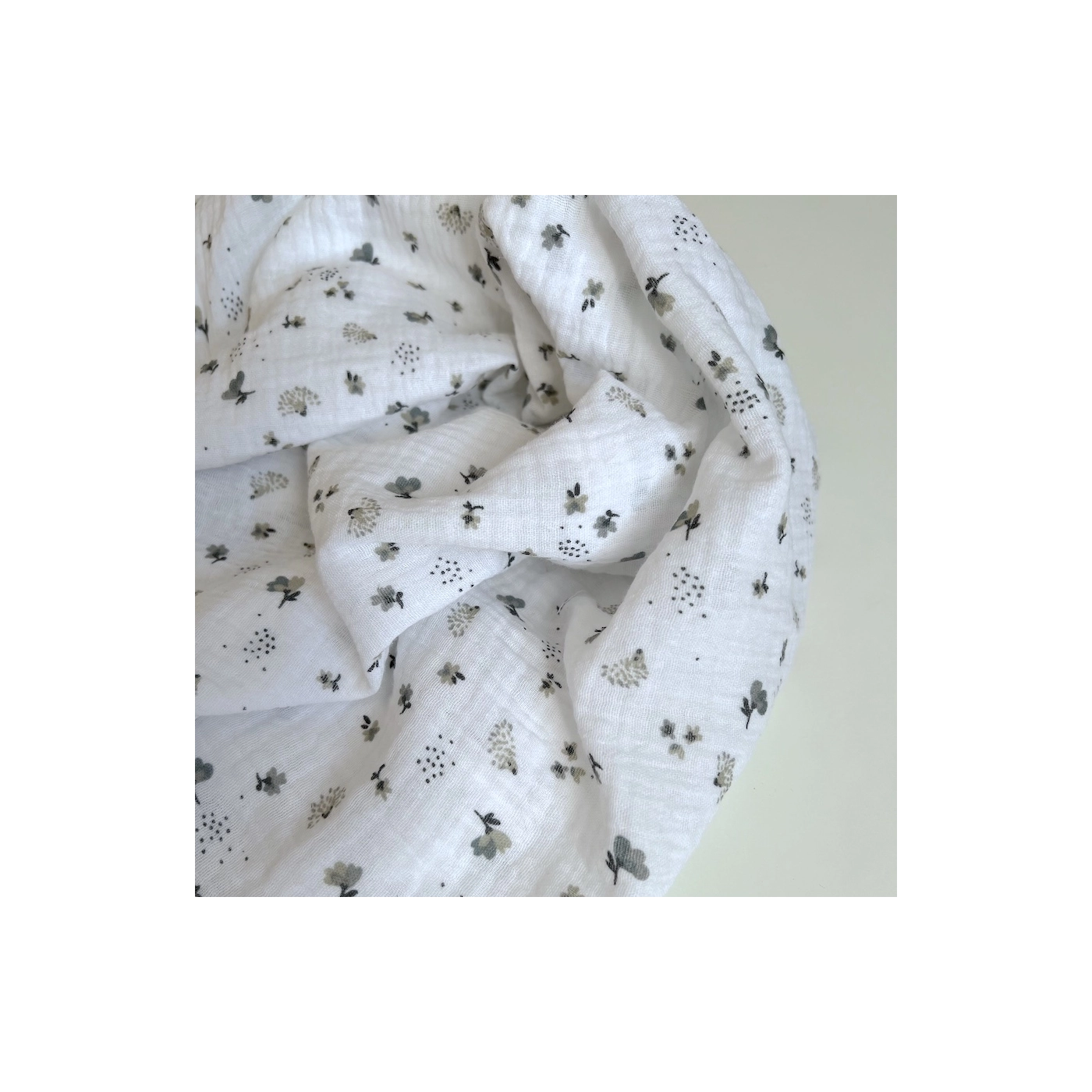 Coupon de 30 cm de Double gaze de coton Nelsi blanc motif gris