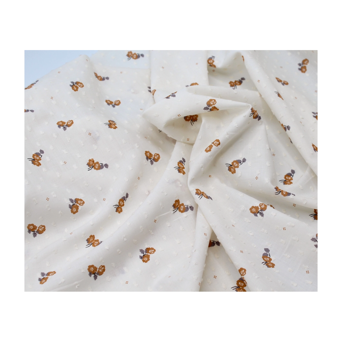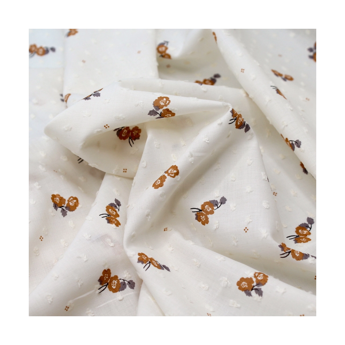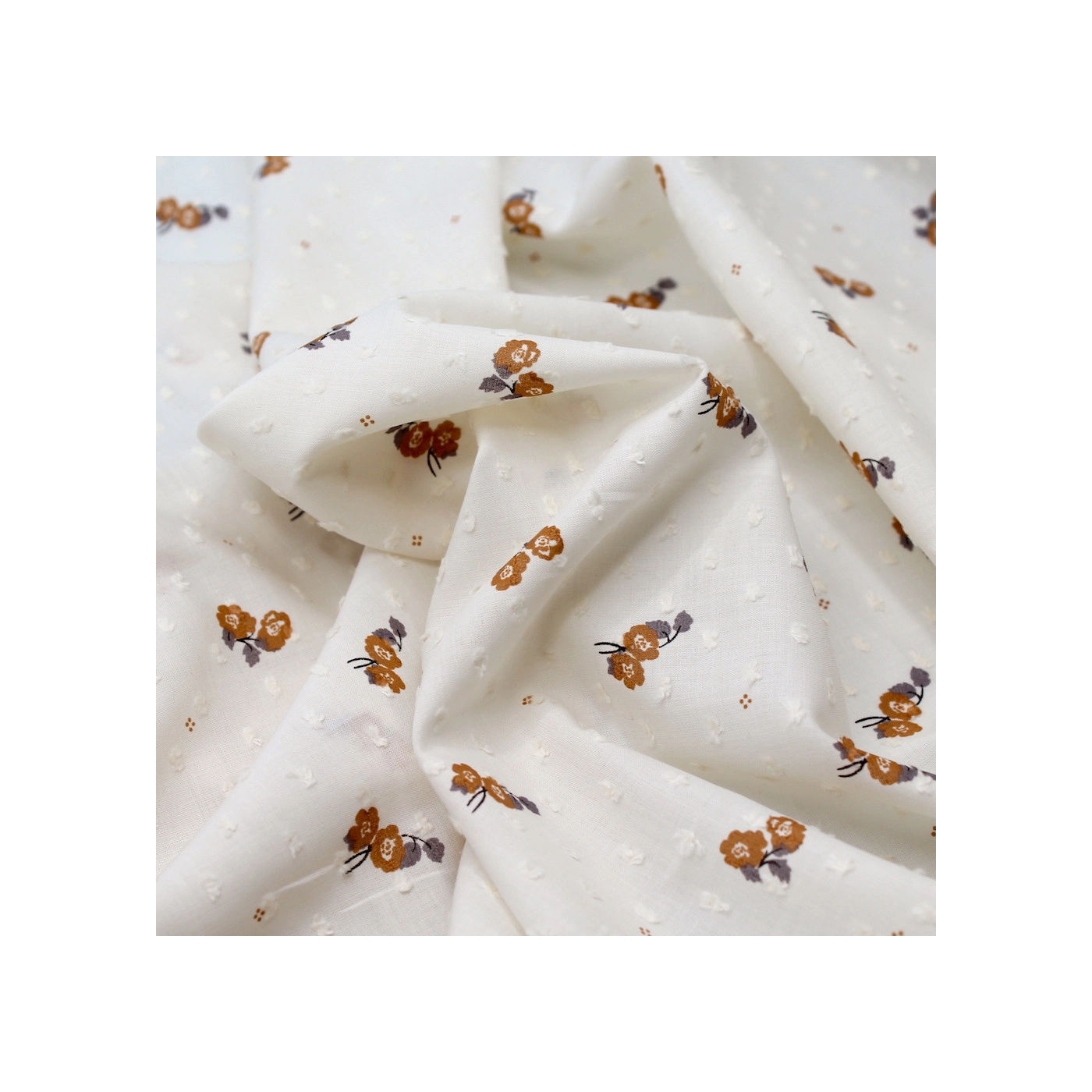 Priscille - Seersucker / Coton gaufré doux fond blanc motif fleuri parme