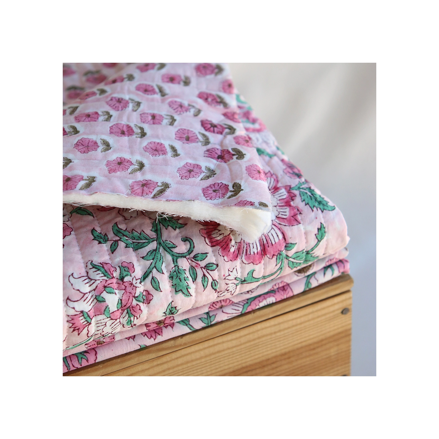 Le block print est un artisanat ancestral indien : le dessin est gravé sur un tampon en bois, chaque couleur nécessitant une étape d'impression distincte.