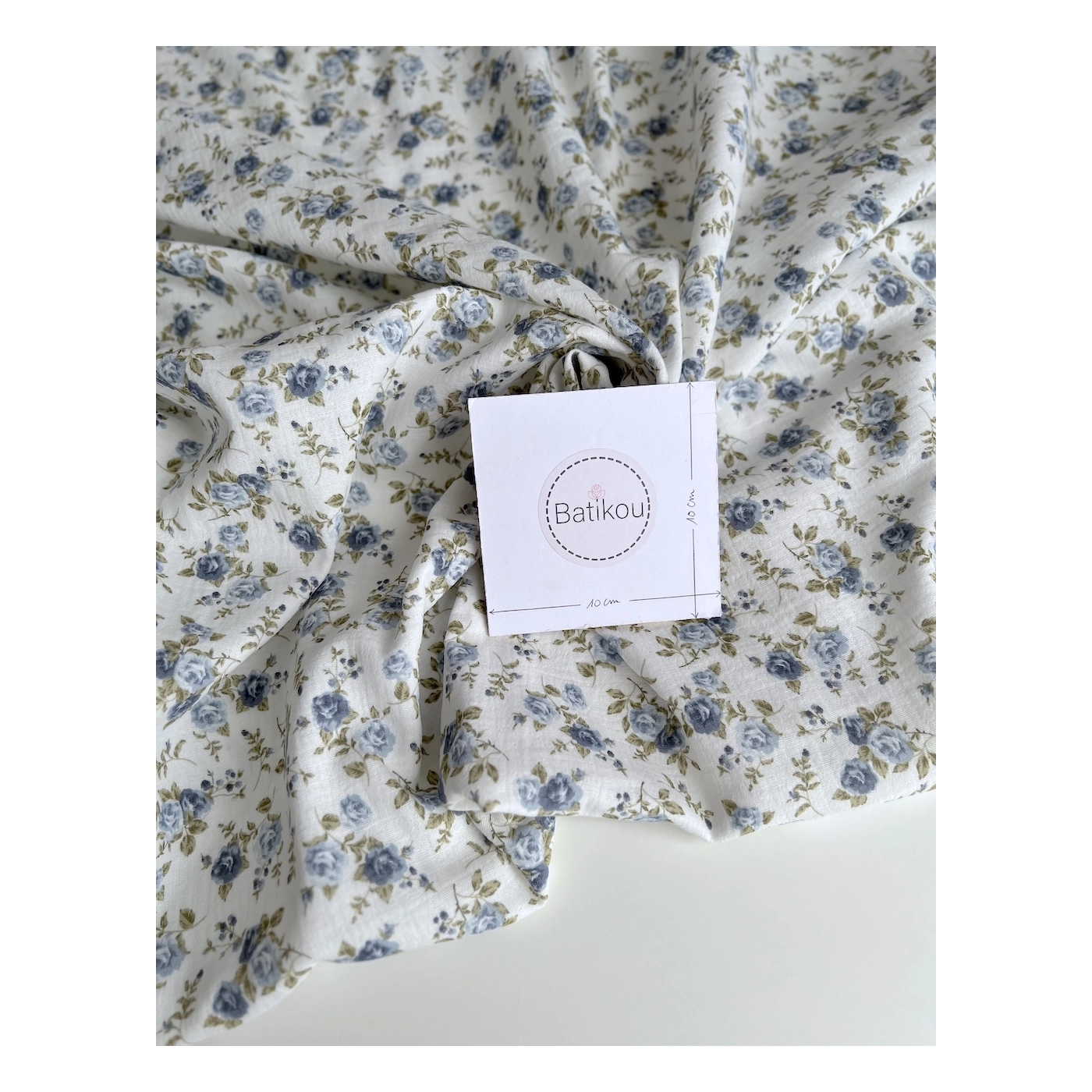 La photo avec le carré blanc permet d'avoir un repère de mesure (le carré fait 10cm de côté) et de couleur, en effet il est blanc optique. Cette indication peut vous permettre de mieux percevoir le rendu du tissu.