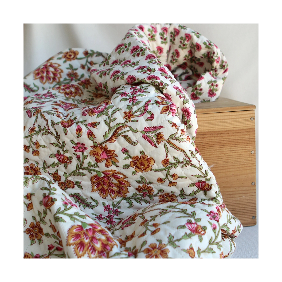 Coupon de 15 cm de Jamila - Tissu indien matelassé double face coton hand block largeur 100cm