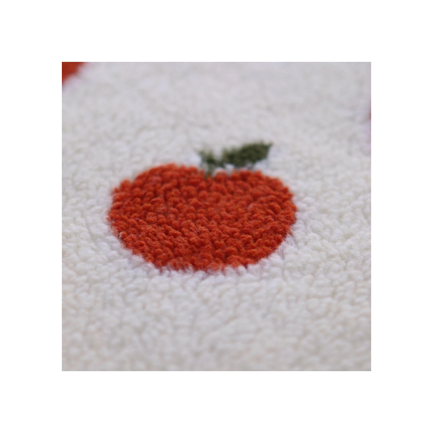 Coupon de 47 cm Teddy / moumoute bouclé fond écru motif pommes