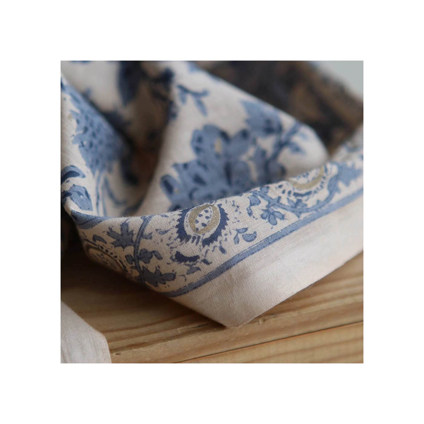 Le block print est un artisanat ancestral indien : le dessin est gravé sur un tampon en bois, chaque couleur nécessitant une étape d'impression distincte.