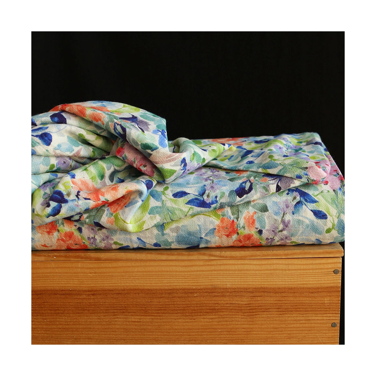 Coupon de 37 cm de Crêpe lin et viscose imprimé fleuri bleu et vert