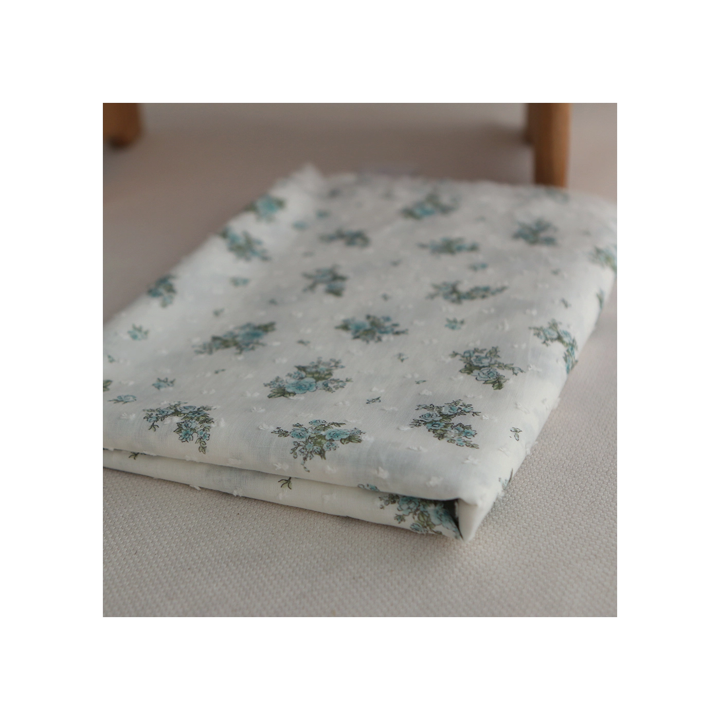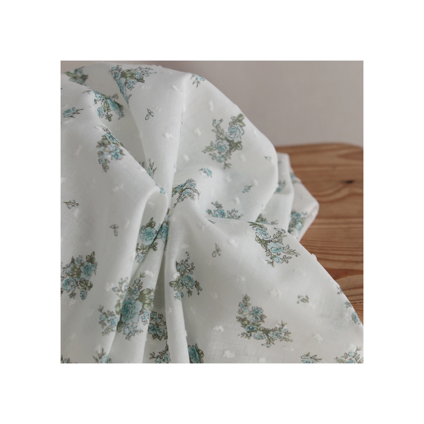 Coupon de 135 cm de Felicity - Plumetis de coton imprimé fleuri bleu et vert