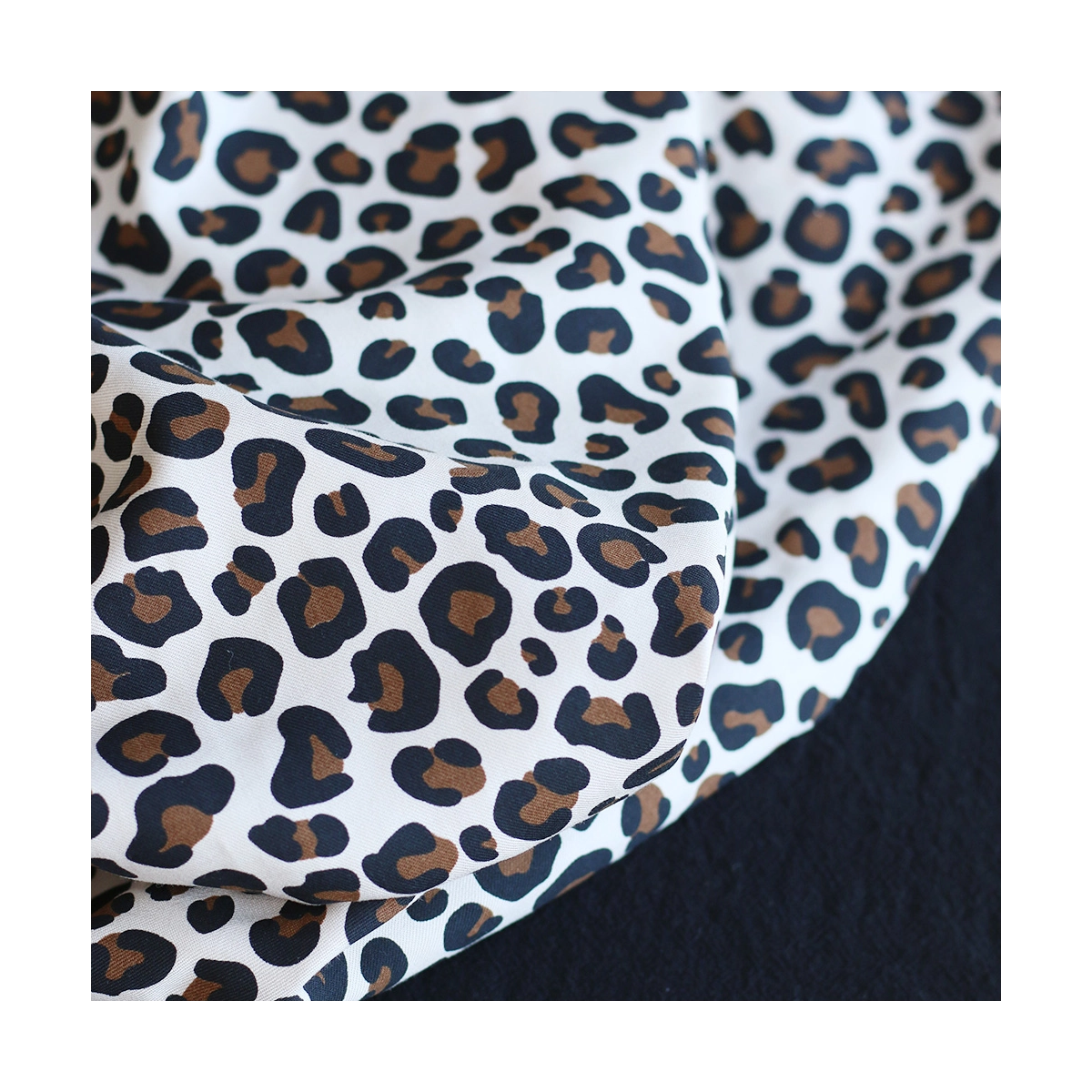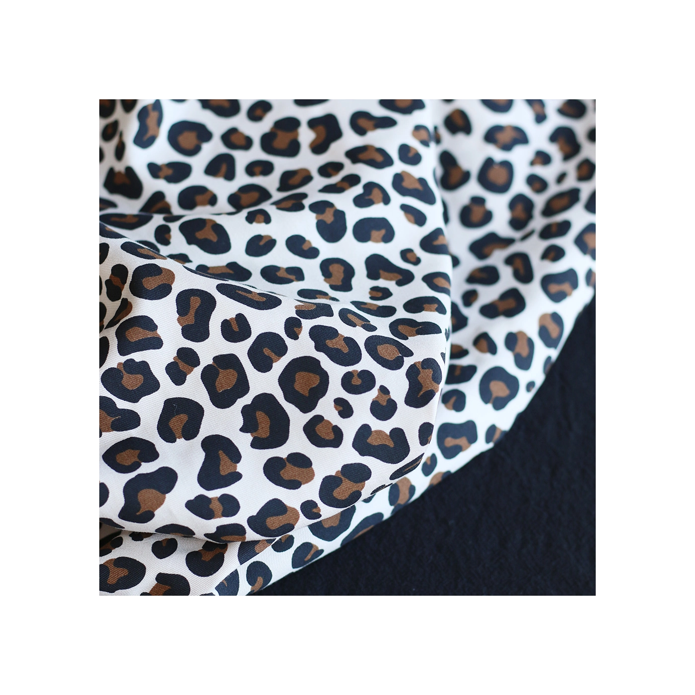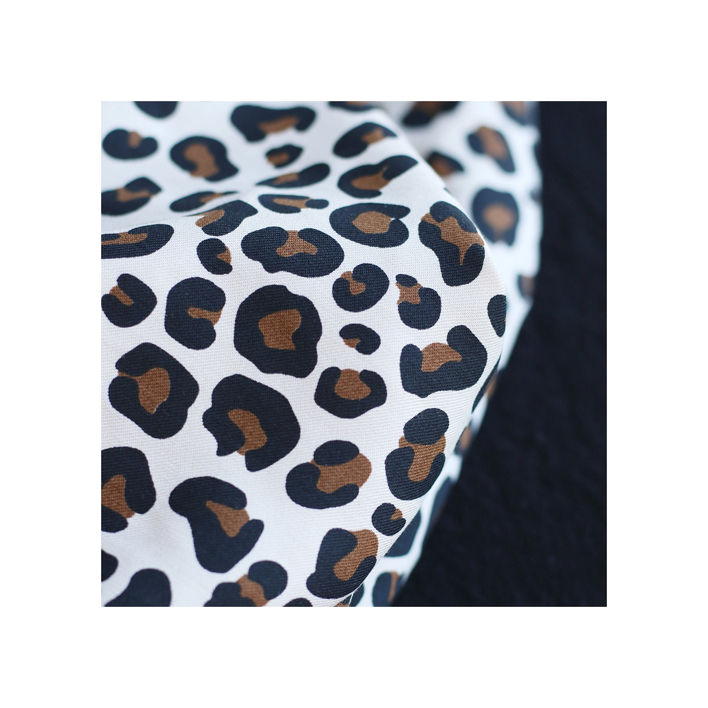 La photo avec le carré blanc permet d'avoir un repère de mesure (le carré fait 10cm de côté) et de couleur, en effet il est blanc optique. Cette indication peut vous permettre de mieux percevoir le rendu du tissu.