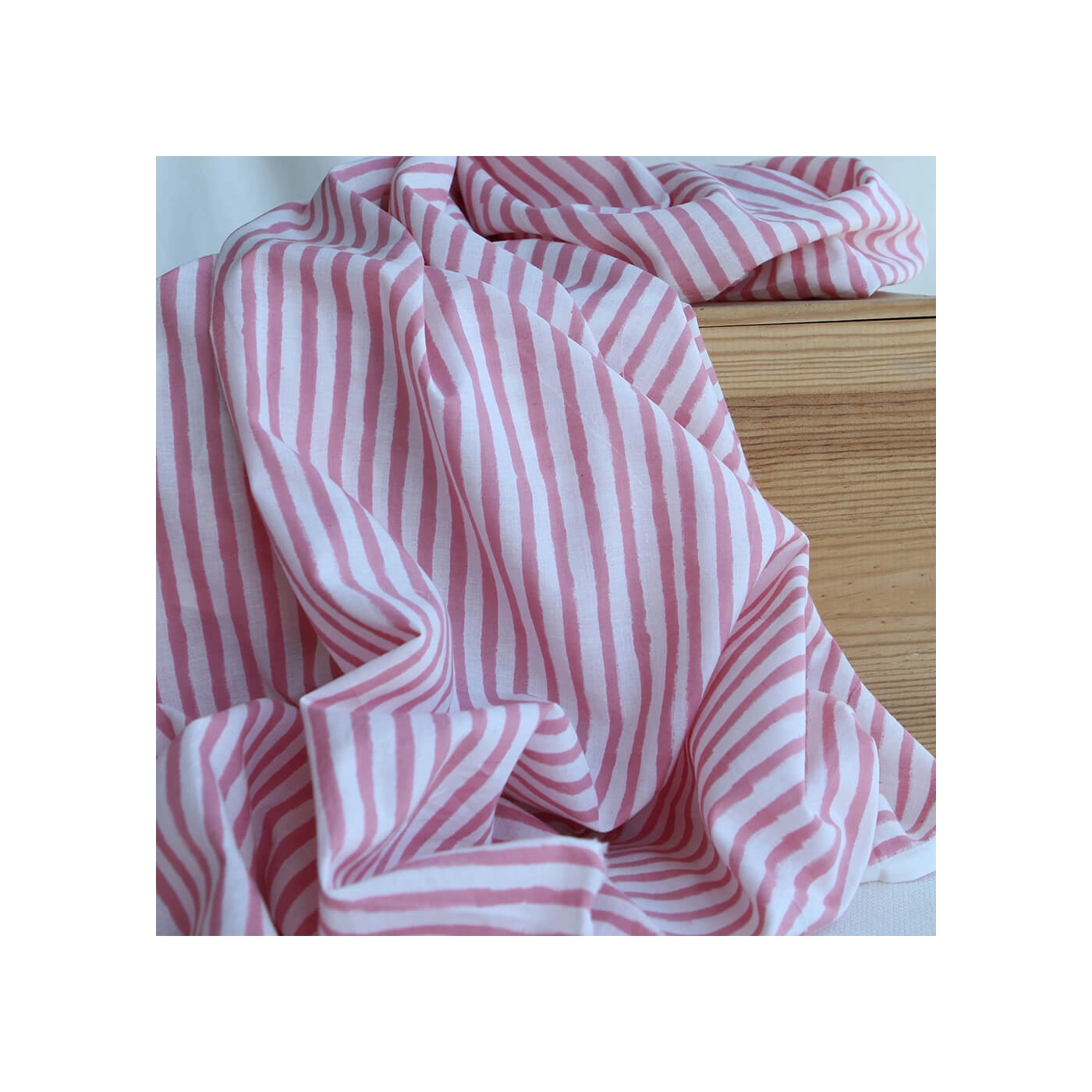 • Gamme Ishara: rayures irrégulières environ 5mm vieux rose et blanc