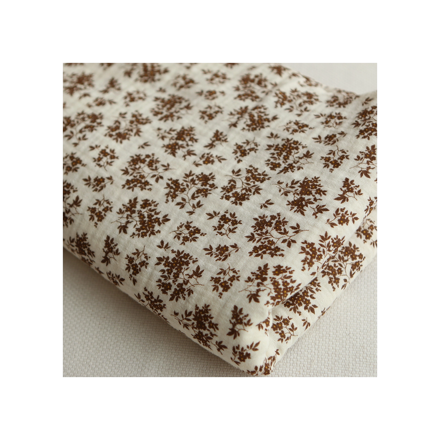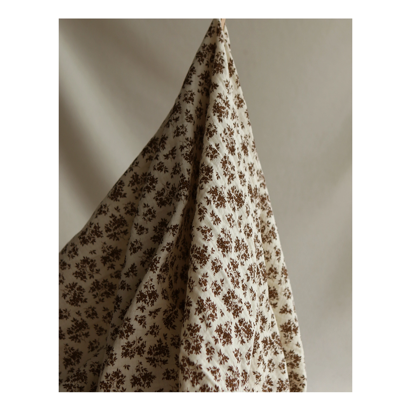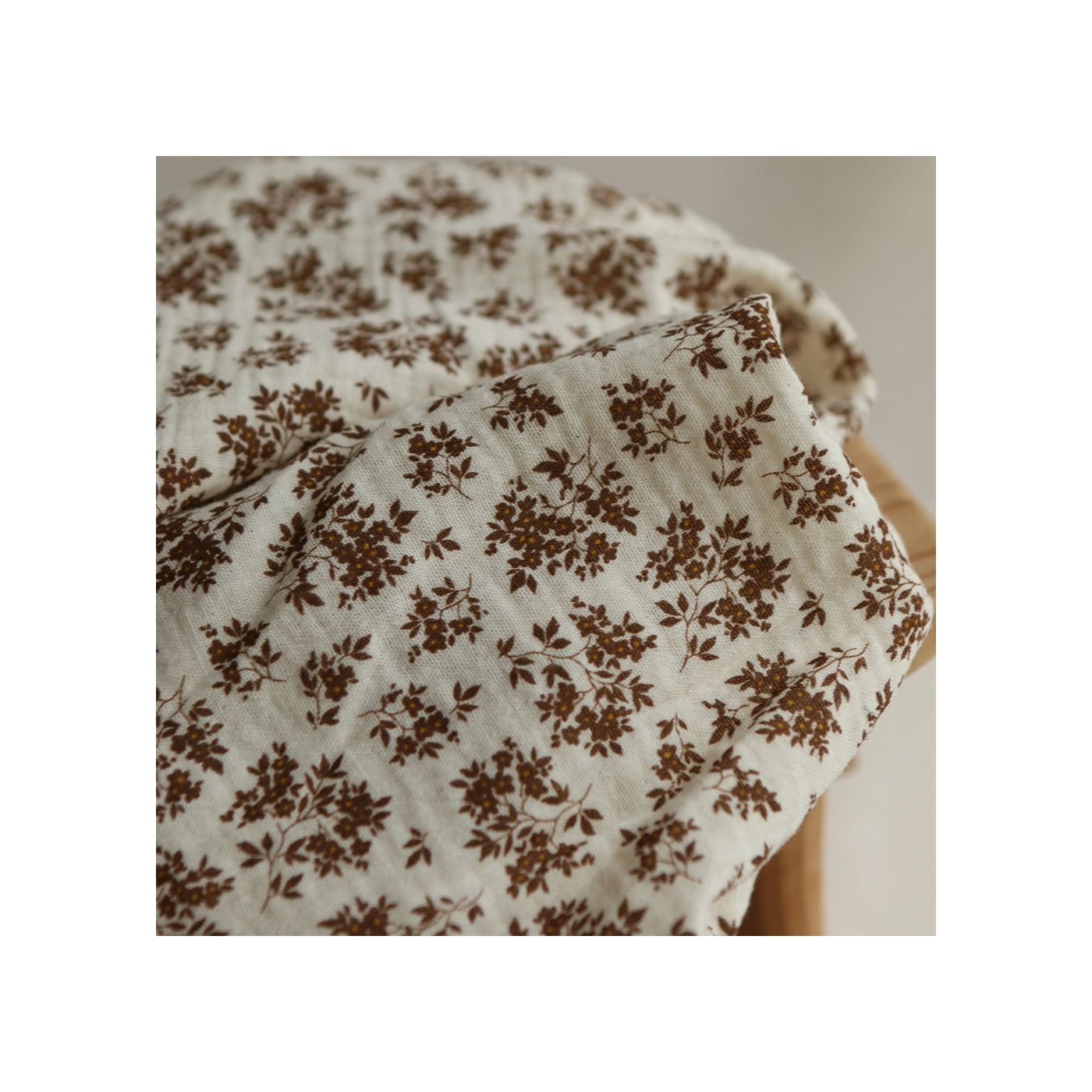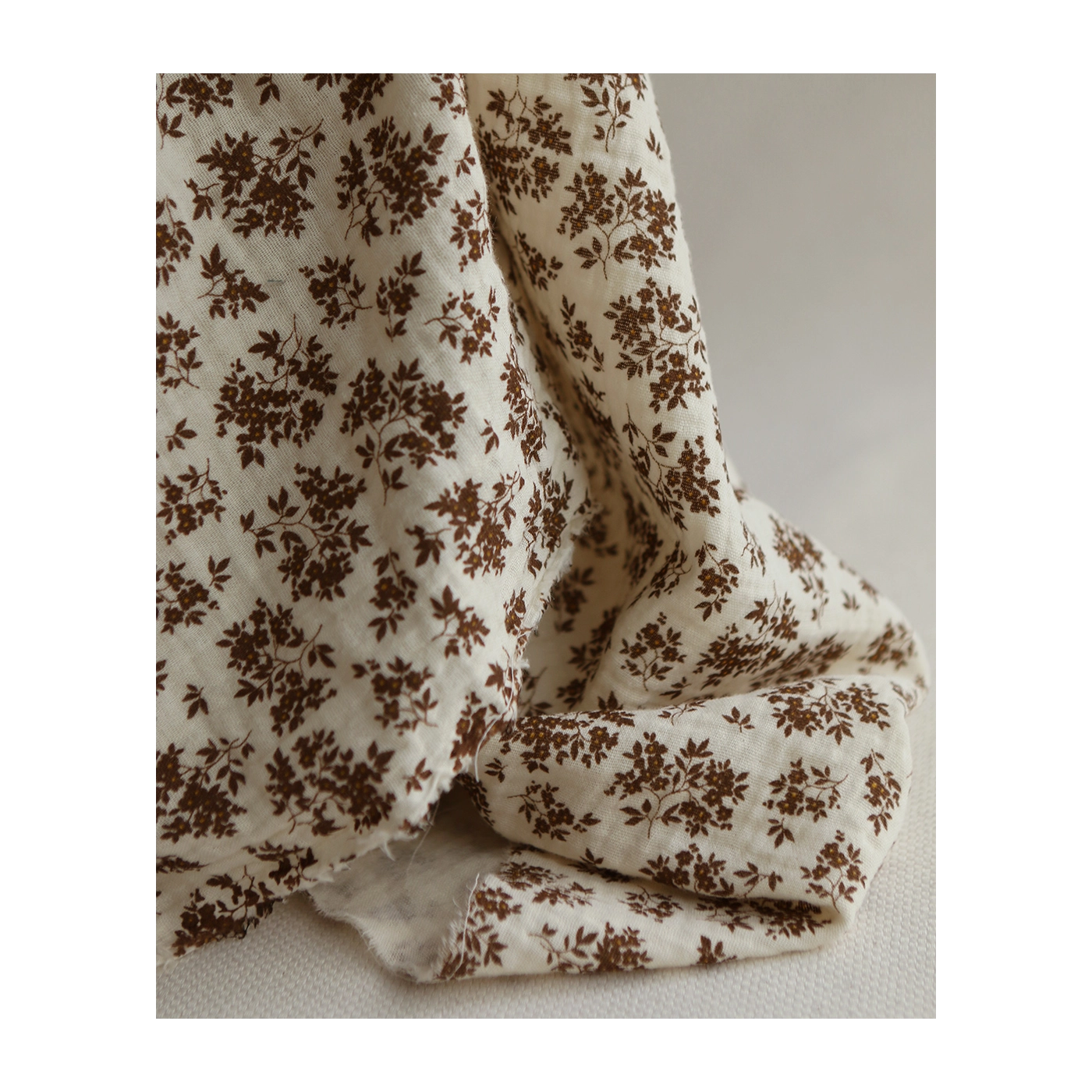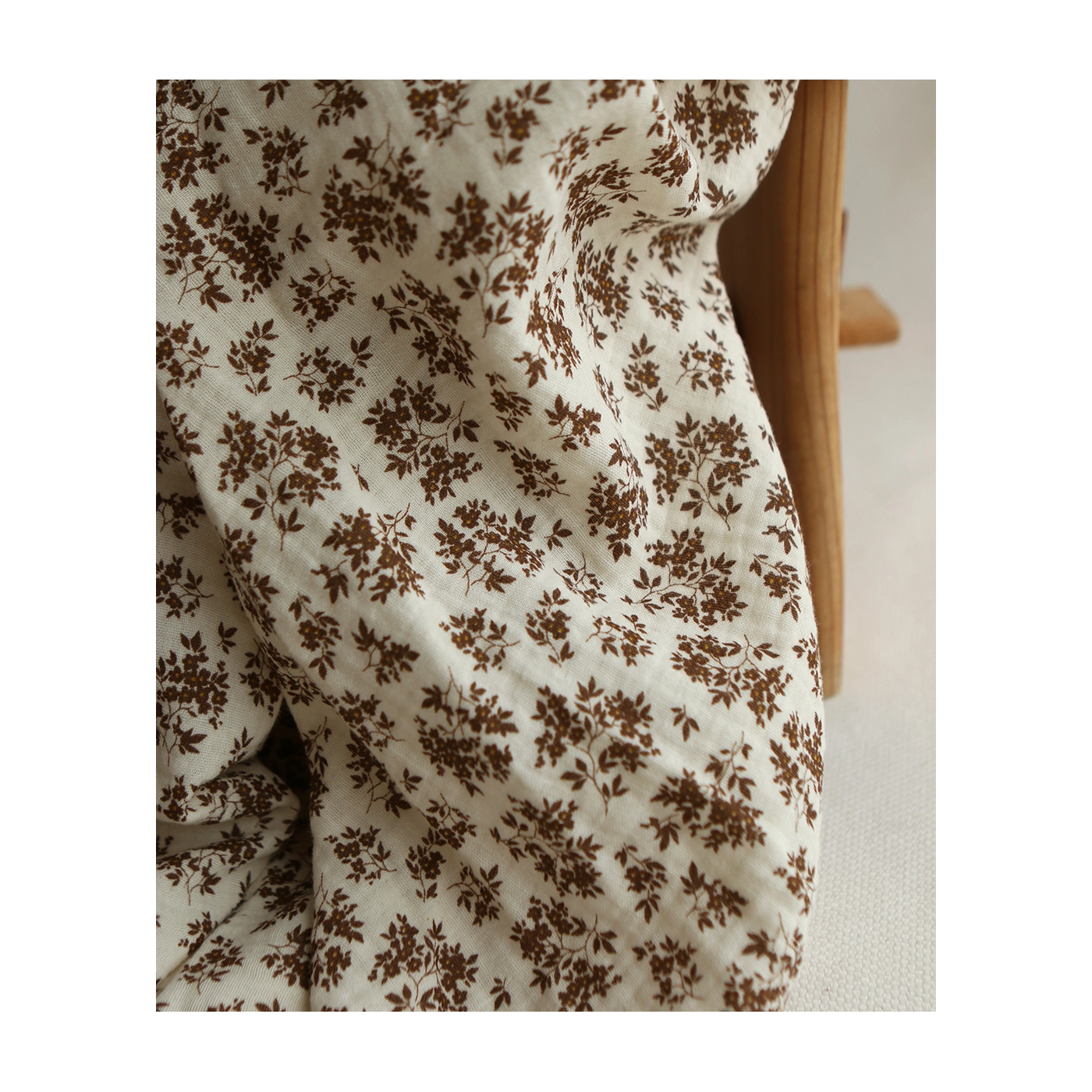 Coupon de 70 cm de Soumeya - Double gaze coton BIO motif exclusif fond écru chocolat