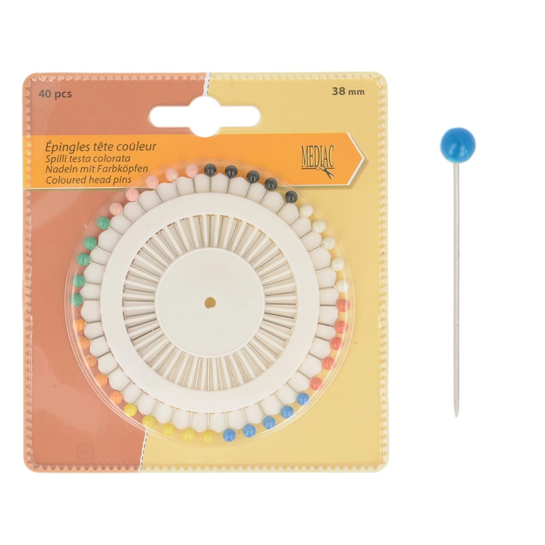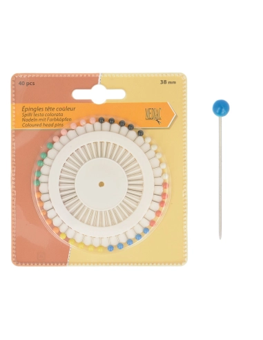 Accessoire de mercerie: Lot de 40 épingles à tête couleur