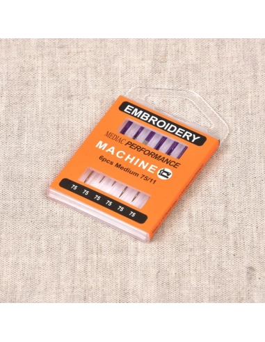 Ces aiguilles machine à broder MEDIAC Performance en taille 75/11 sont conçues pour la broderie machine sur tissus fins à moyens. Leur format convient bien aux travaux qui demandent précision, régularité et belle qualité de point. Vendues par boîte de 6, elles permettent d’avoir toujours des aiguilles adaptées sous la main pour enchaîner plusieurs motifs ou projets sans interrompre votre travail.