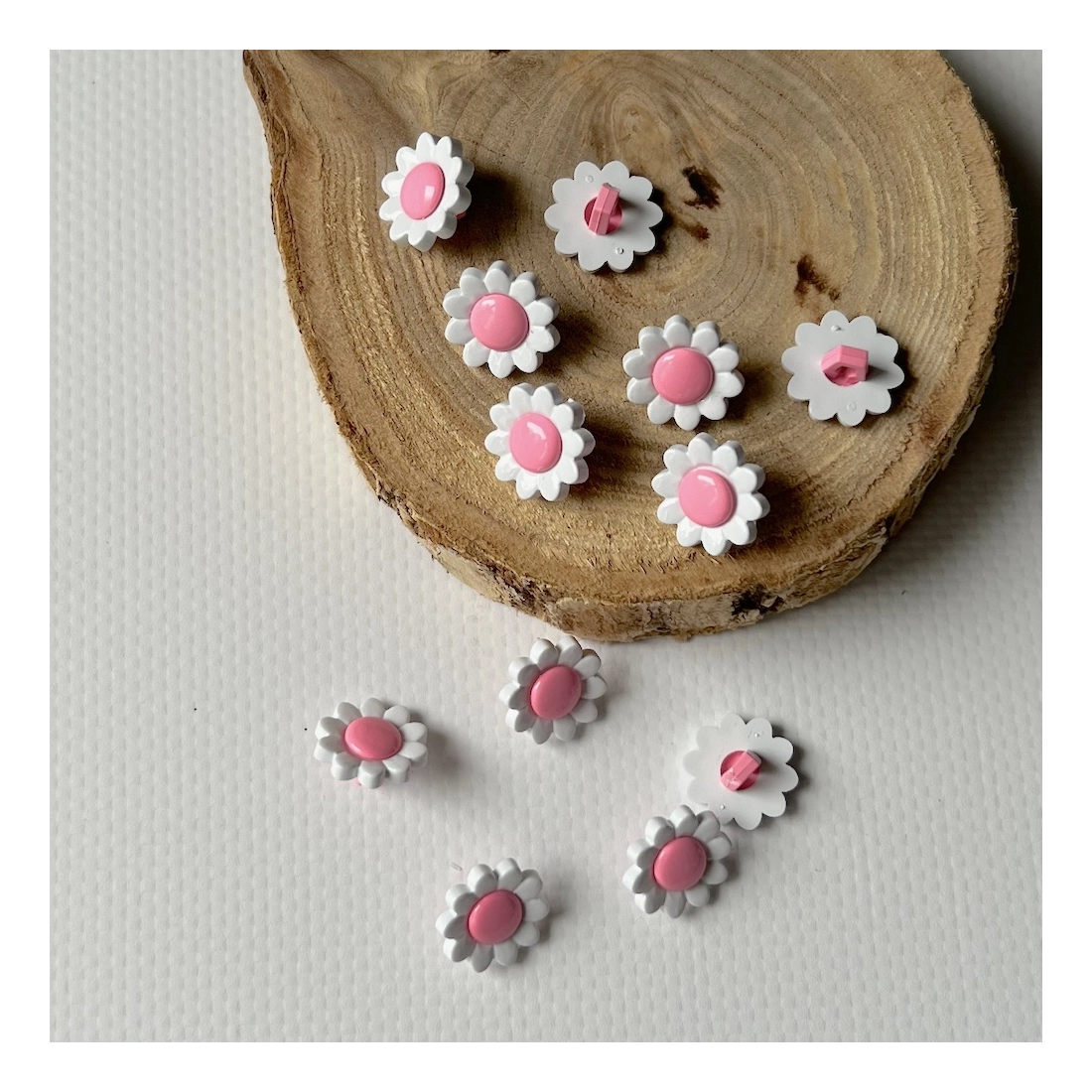 Bouton à queue forme marguerites / pâquerettes taille 15mm rose