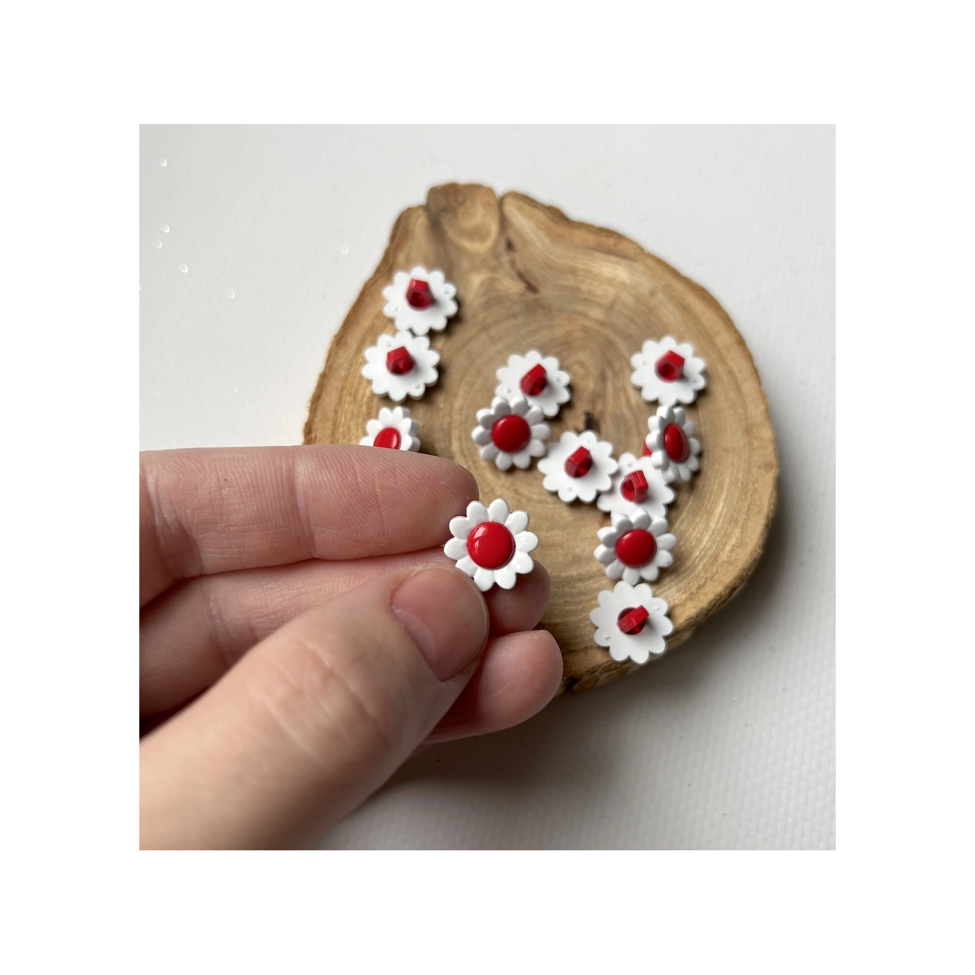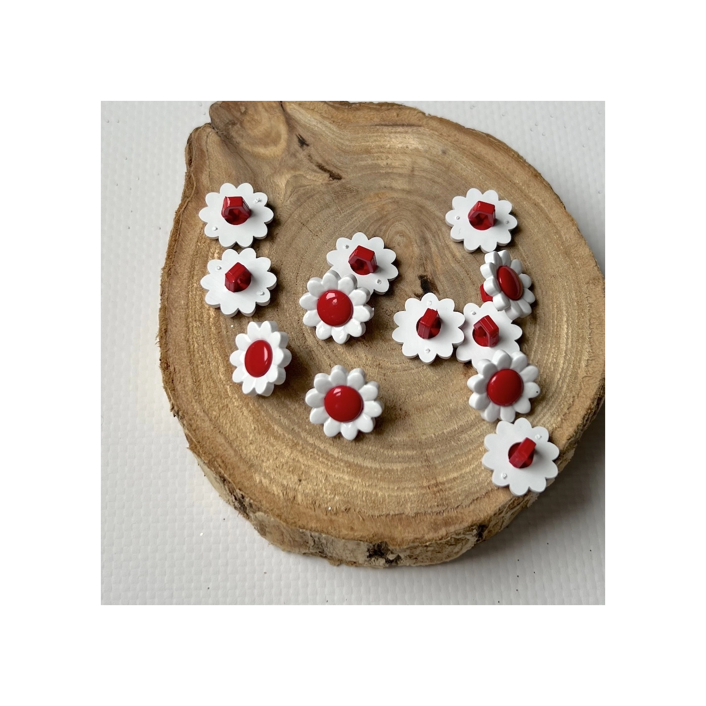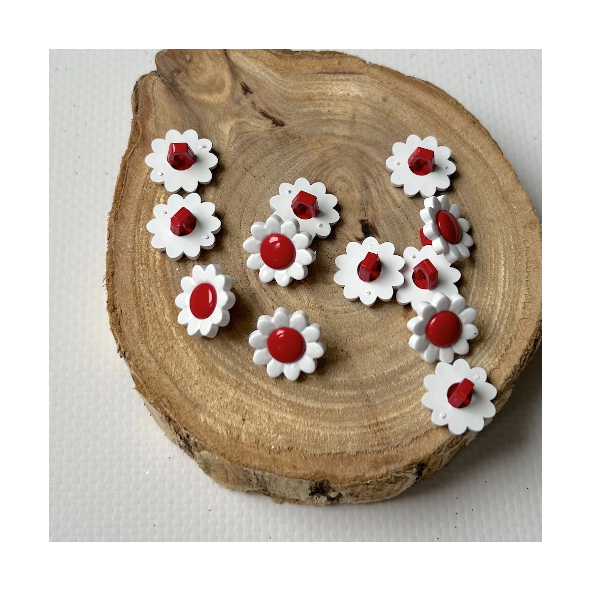 Bouton à queue forme marguerites / pâquerettes taille 15mm rouge