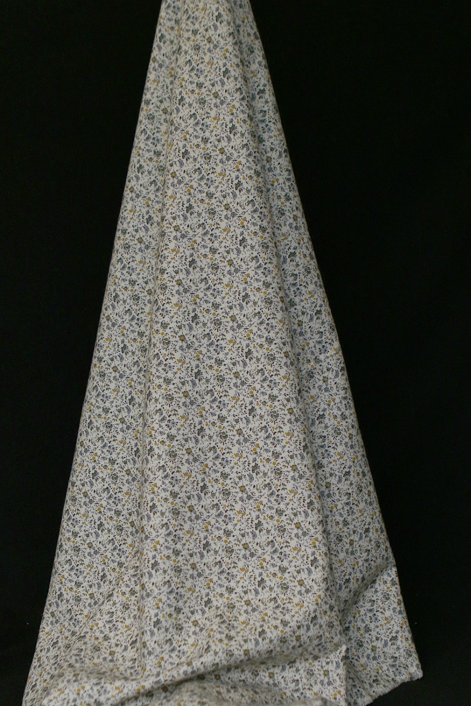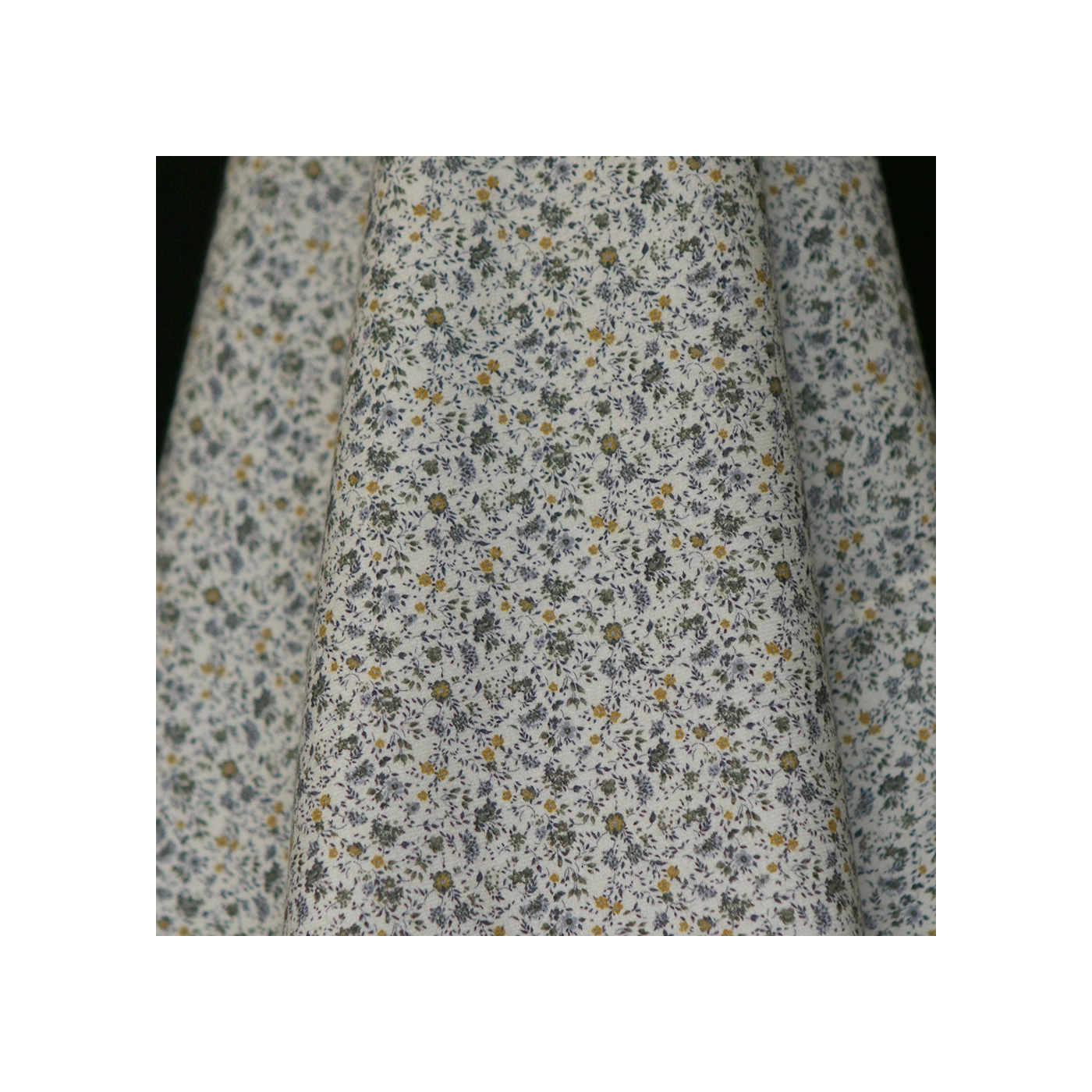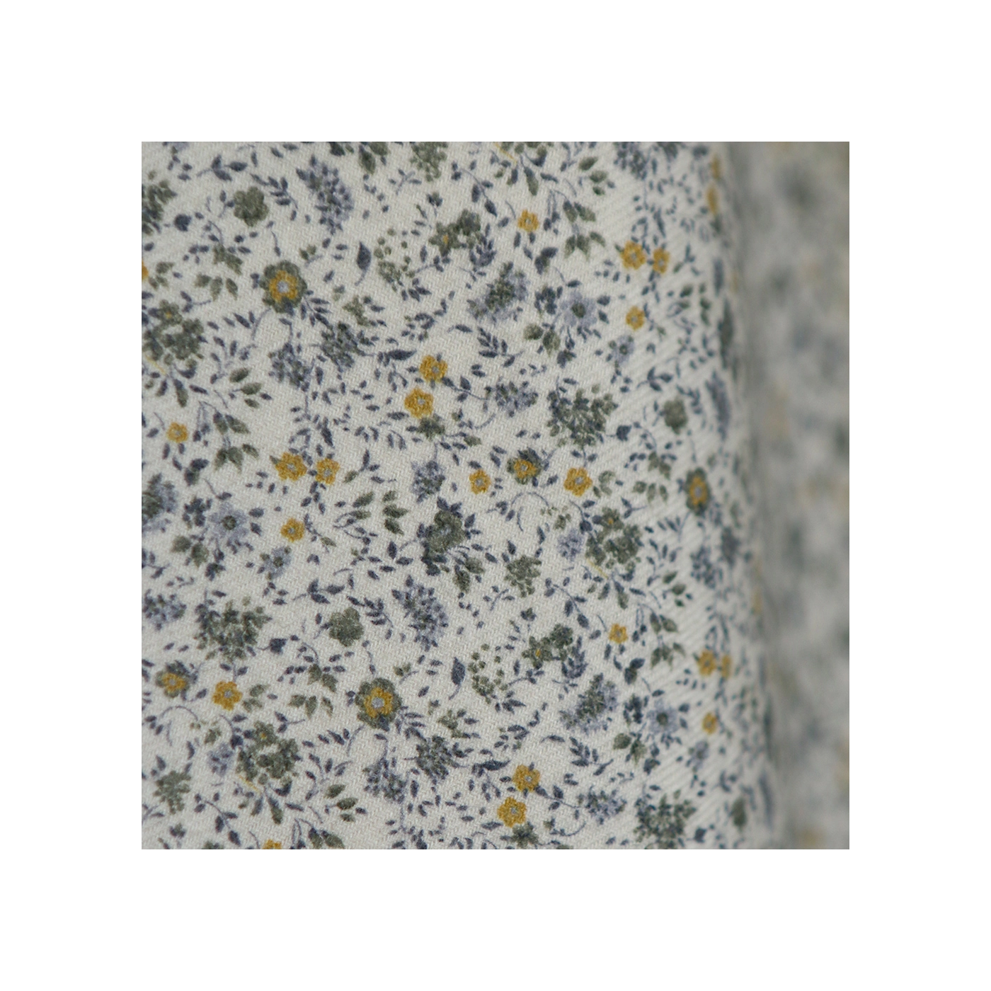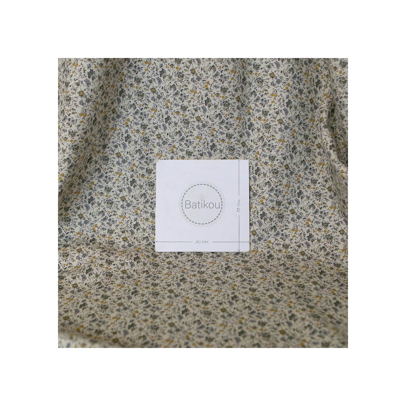 Coloris: fond écru motif fleuri bleu, moutarde et kaki