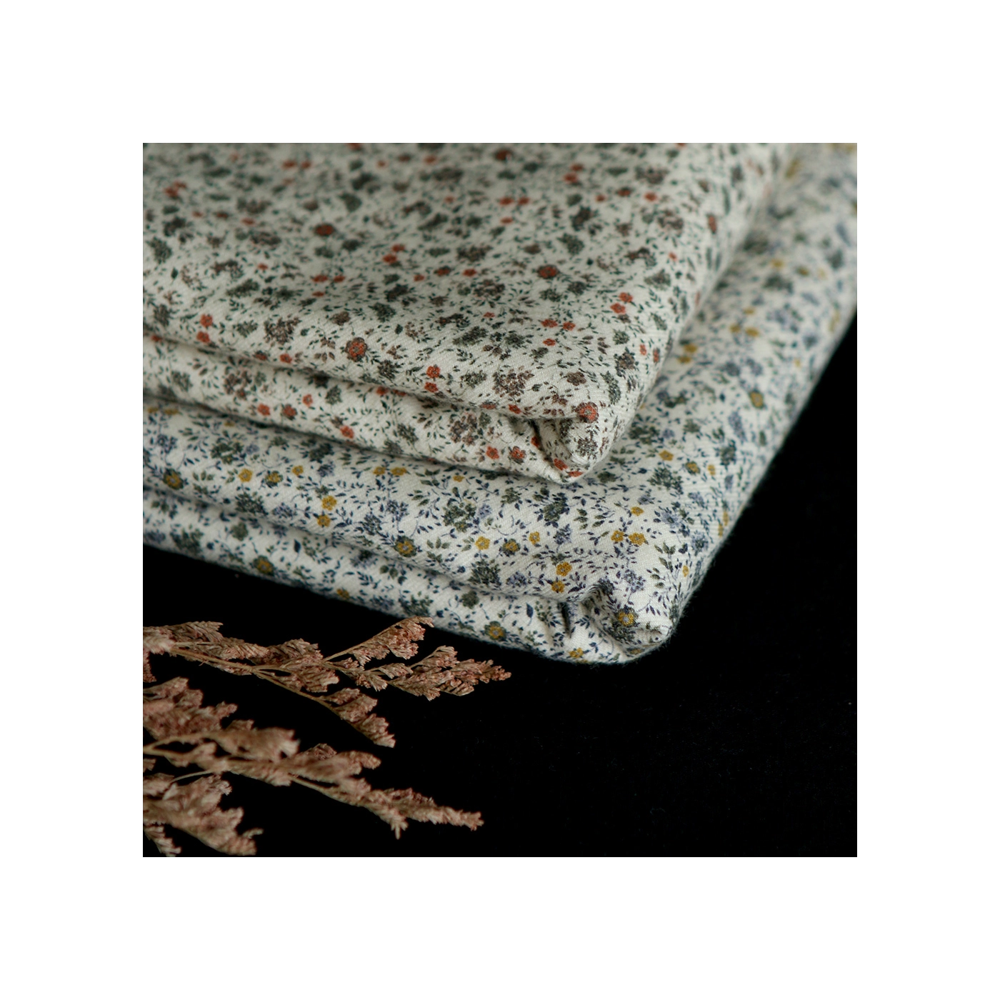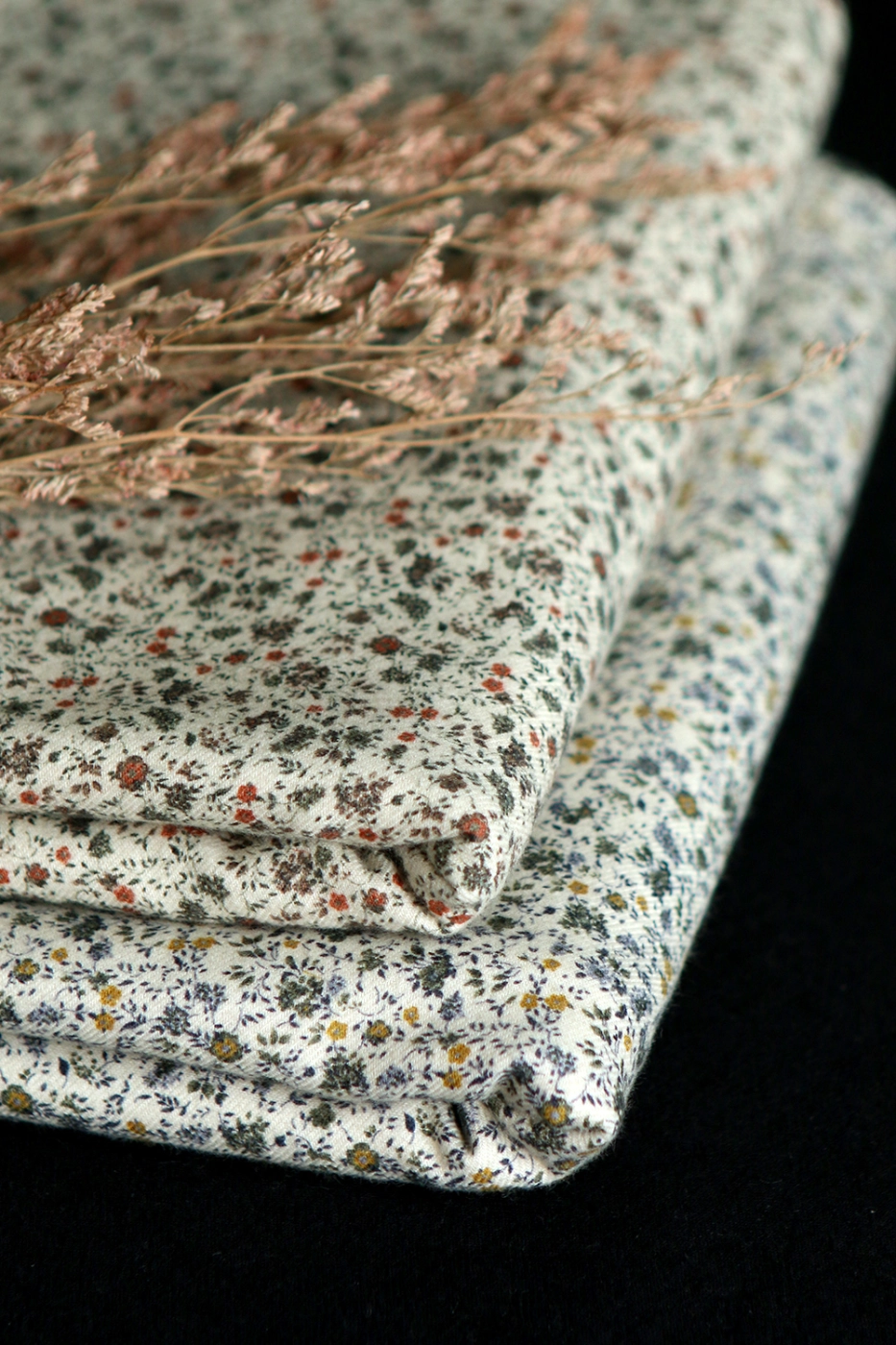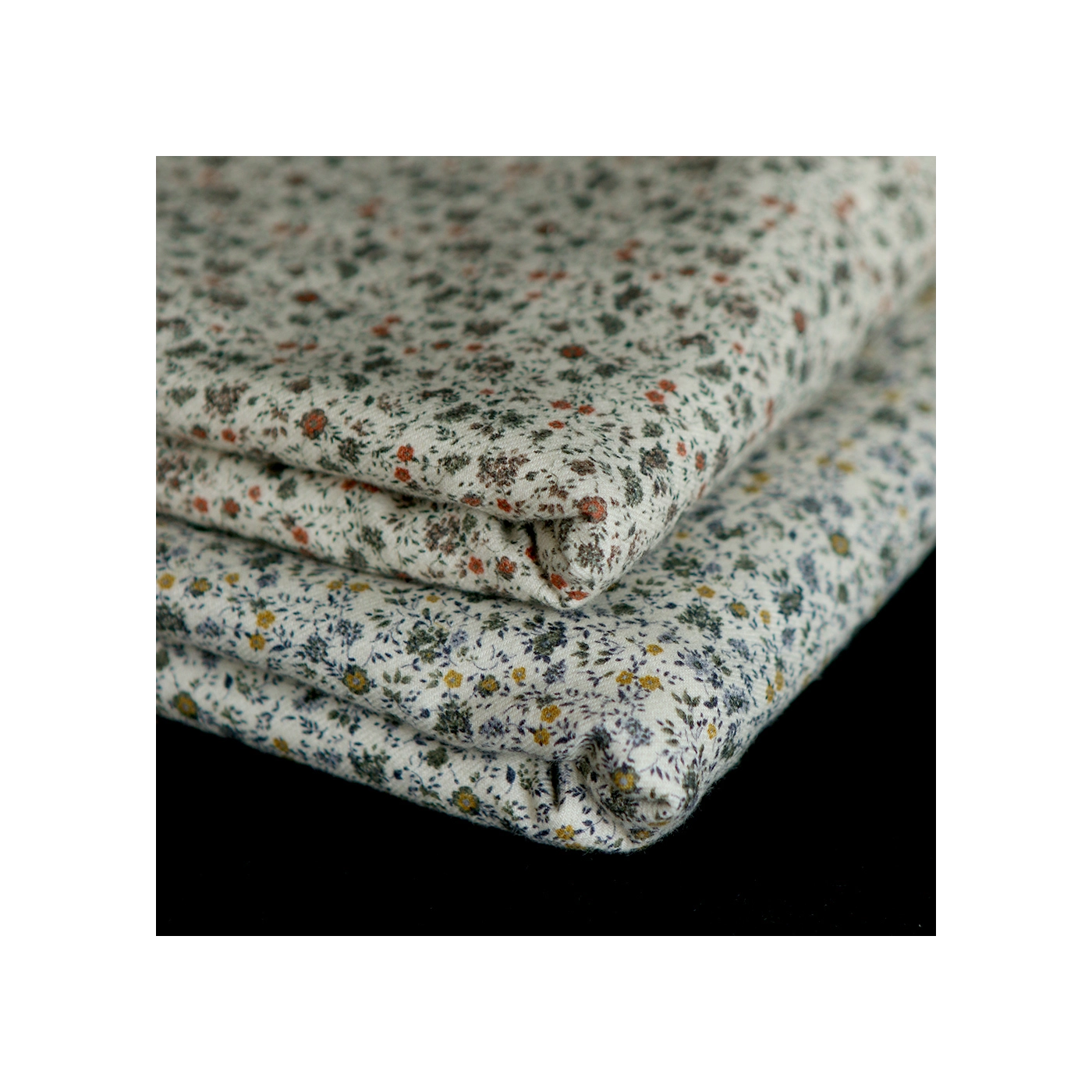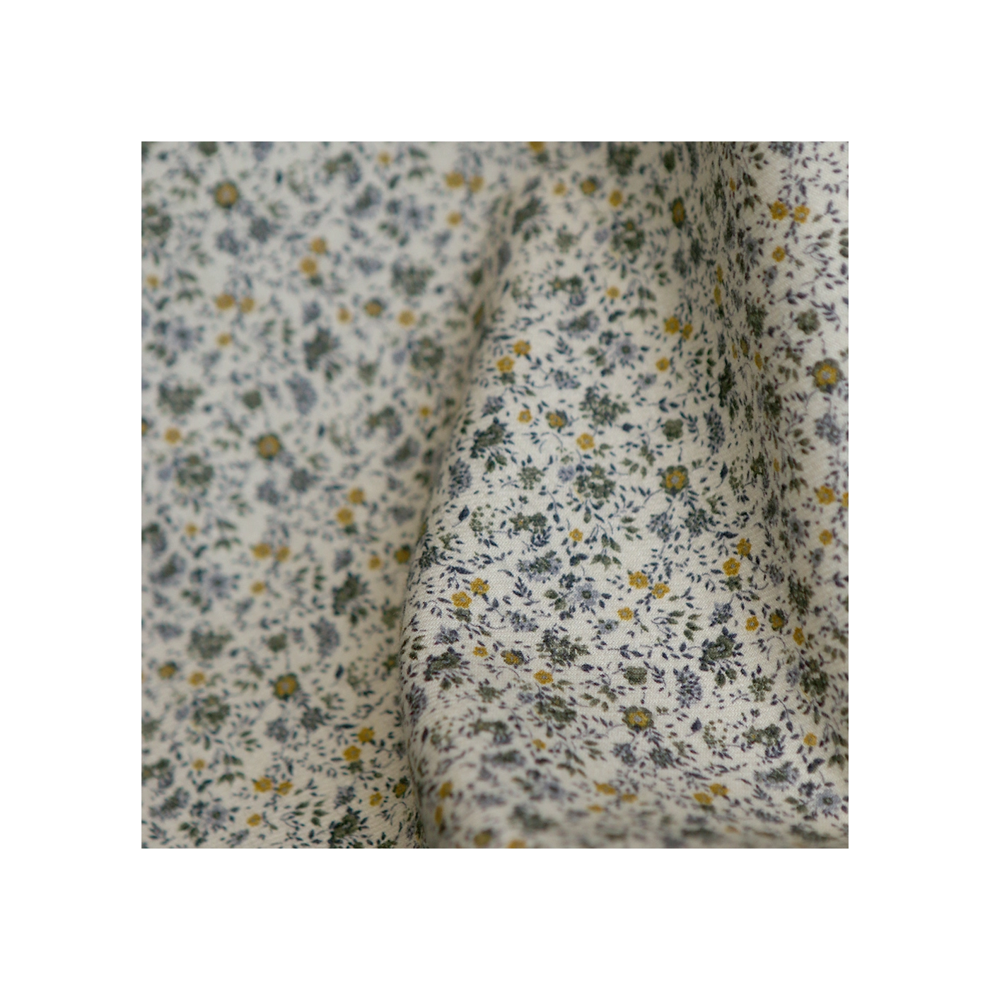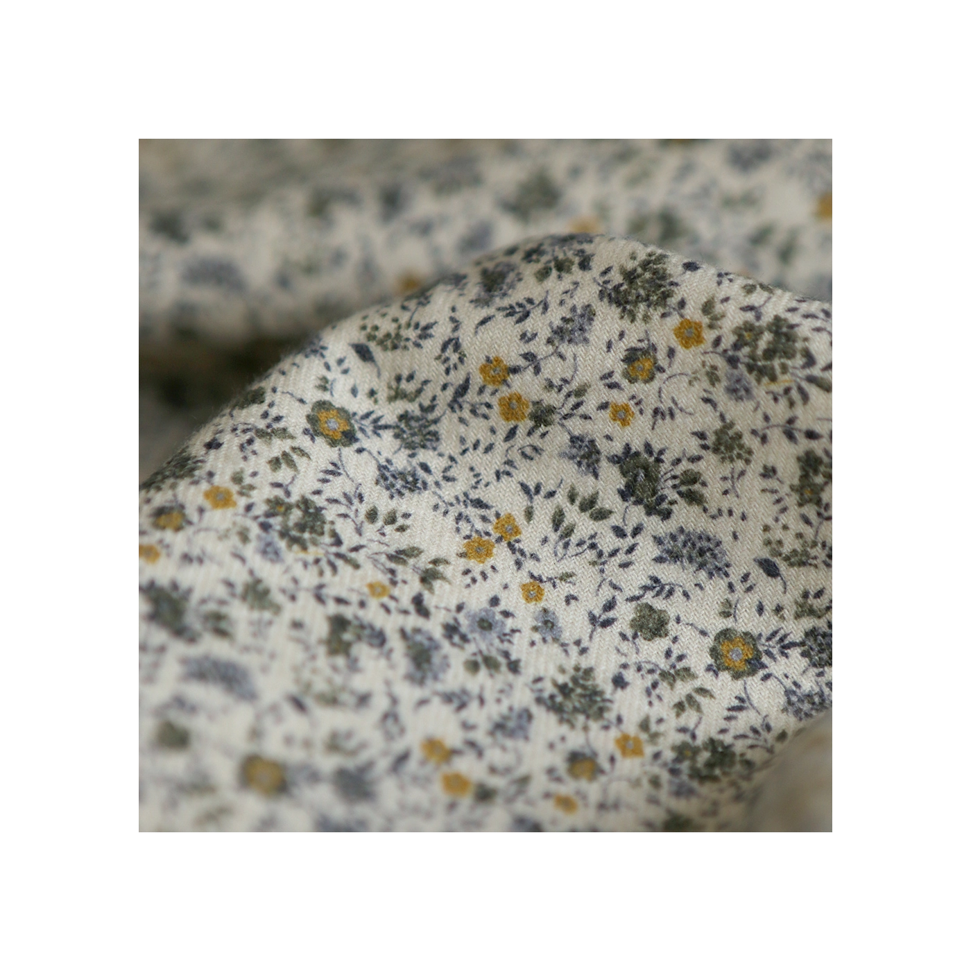 Harry - Coton gratté doux imprimé fleuri moutarde bleu et kaki
