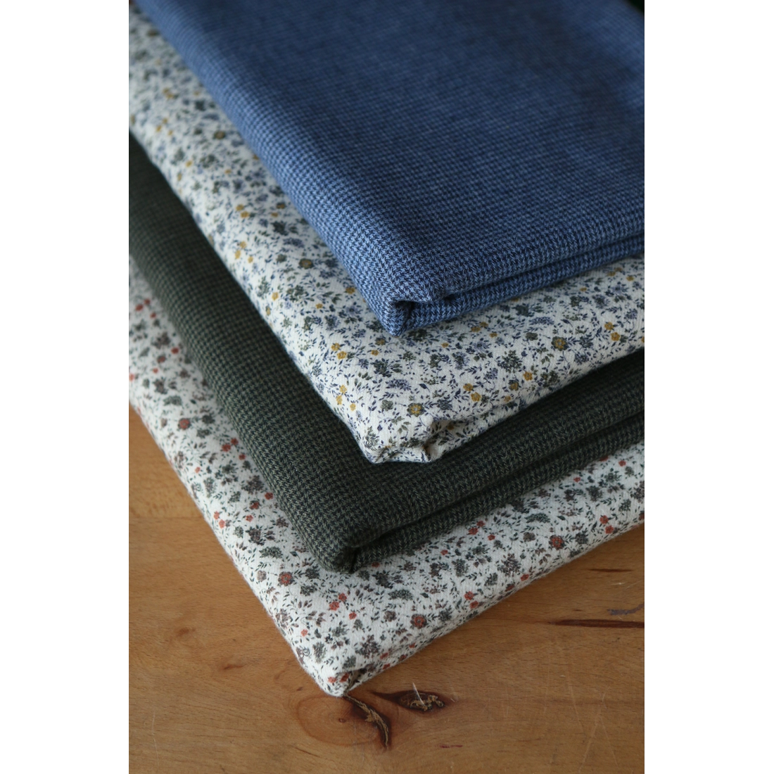 Coco - Coton gratté doux tissage mini pied de poule (pied de puce) Bleu