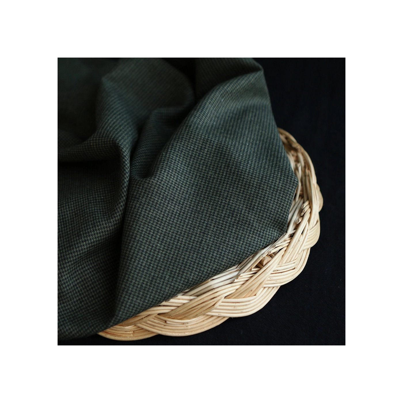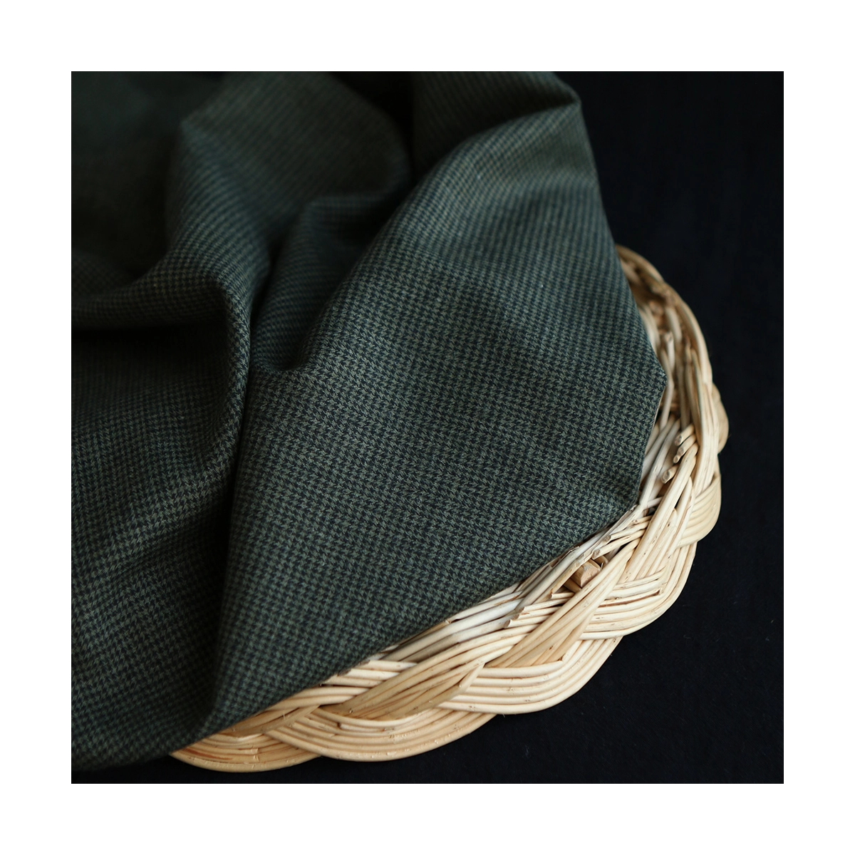 Coco - Coton gratté doux tissage mini pied de poule (pied de puce) Kaki