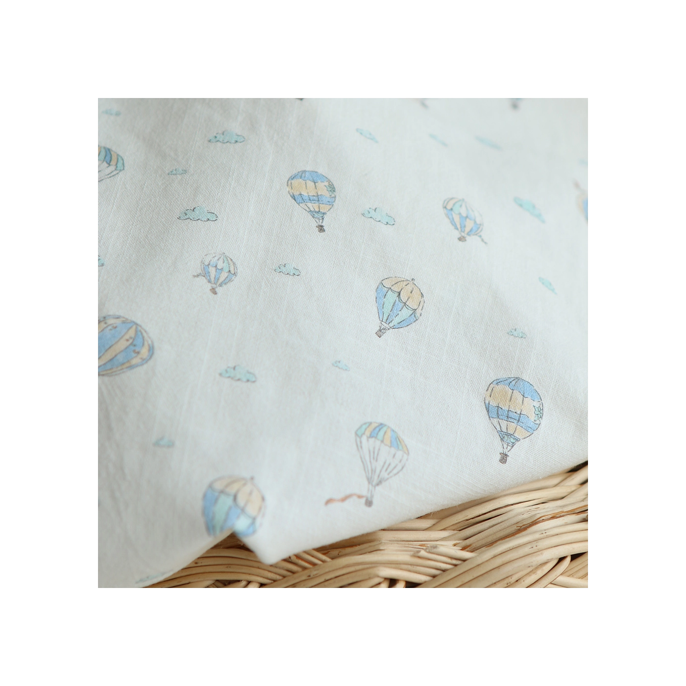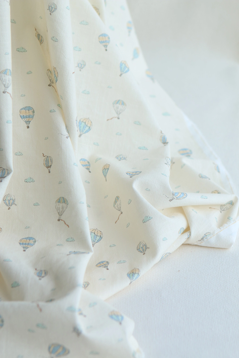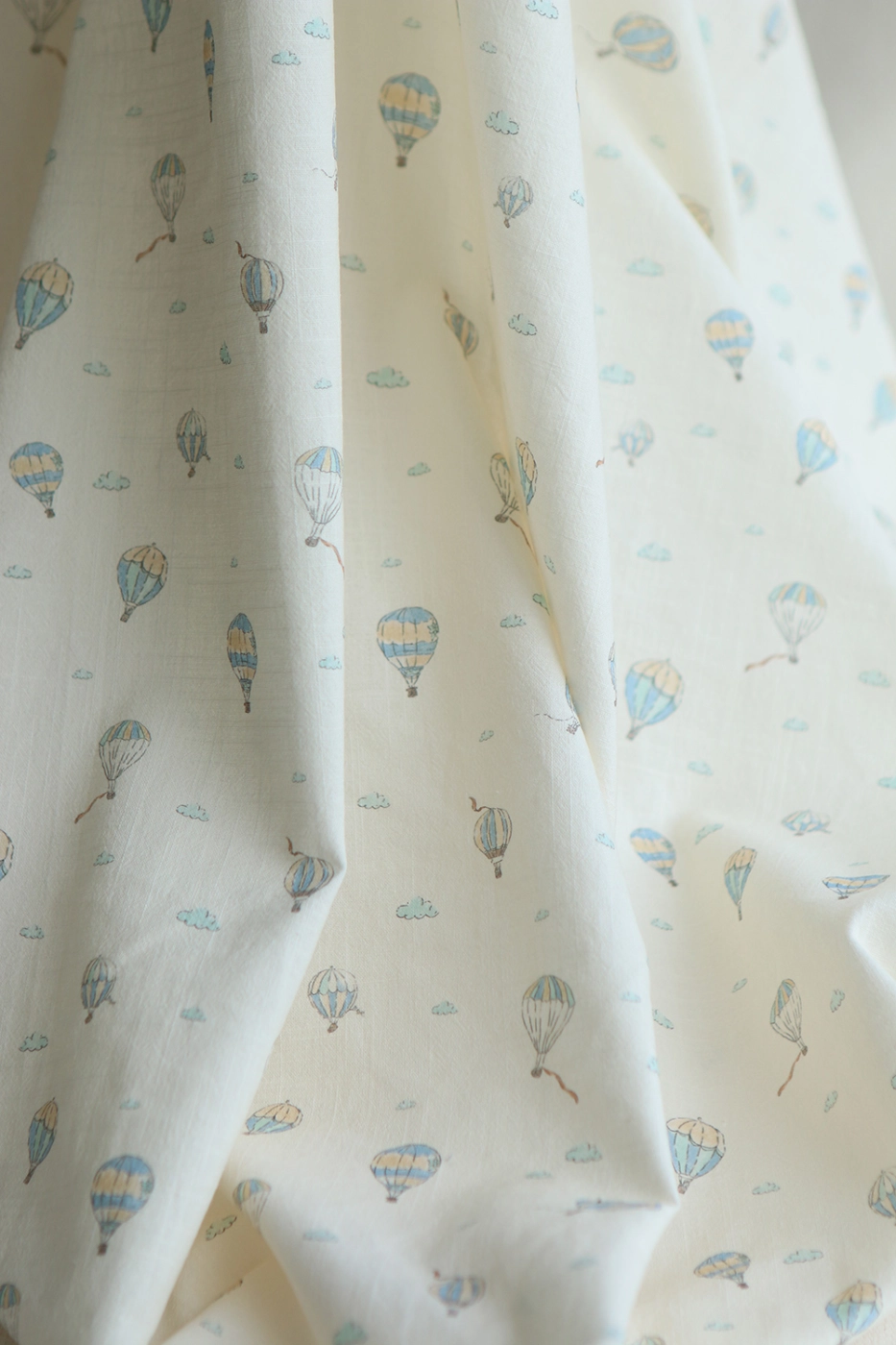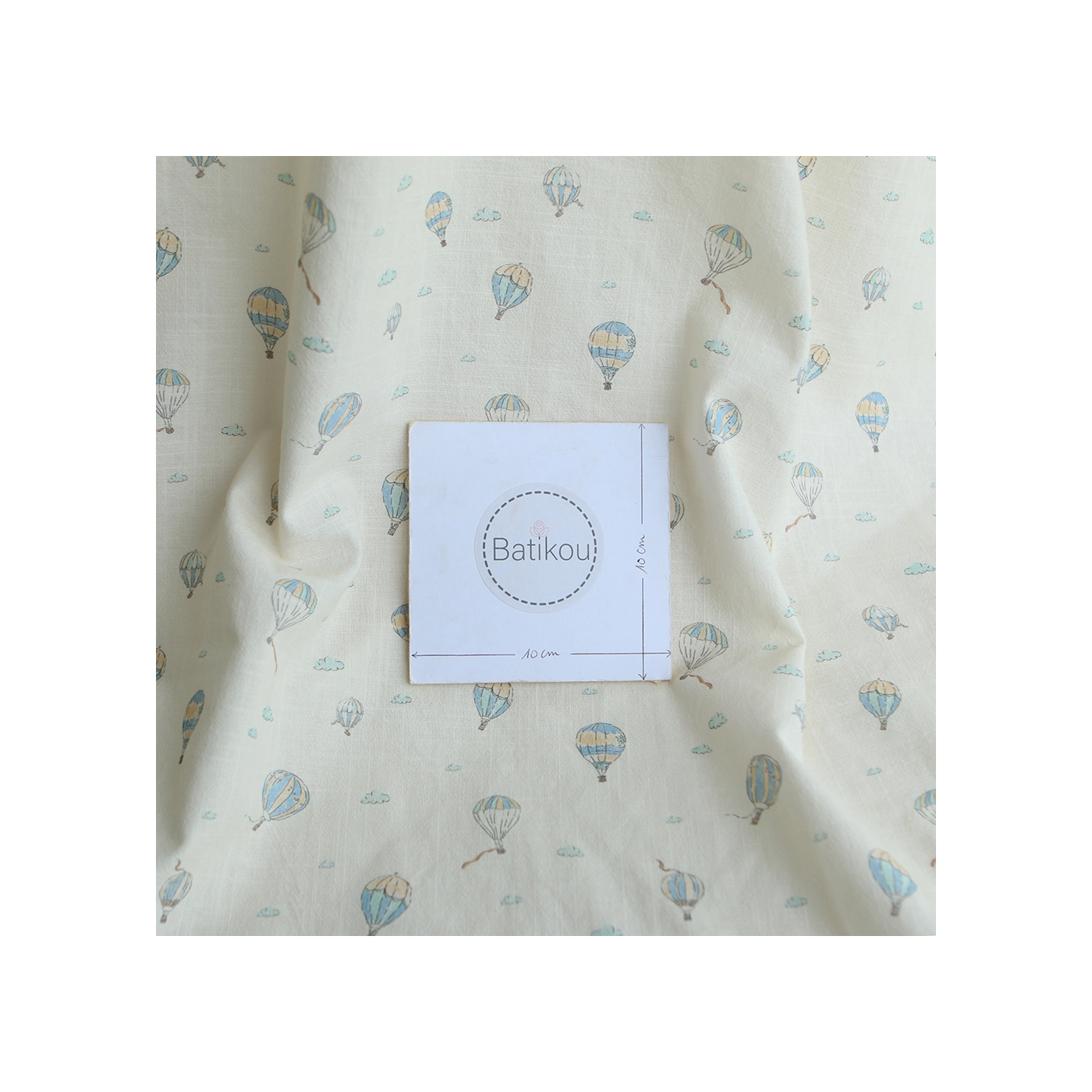 Fergusson - Coton lavé bio coloris vanille motif montgolfière