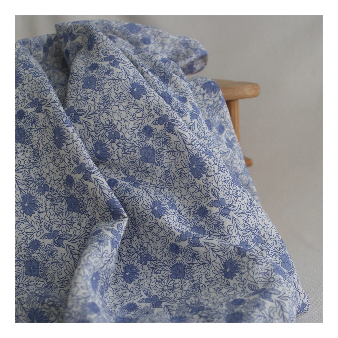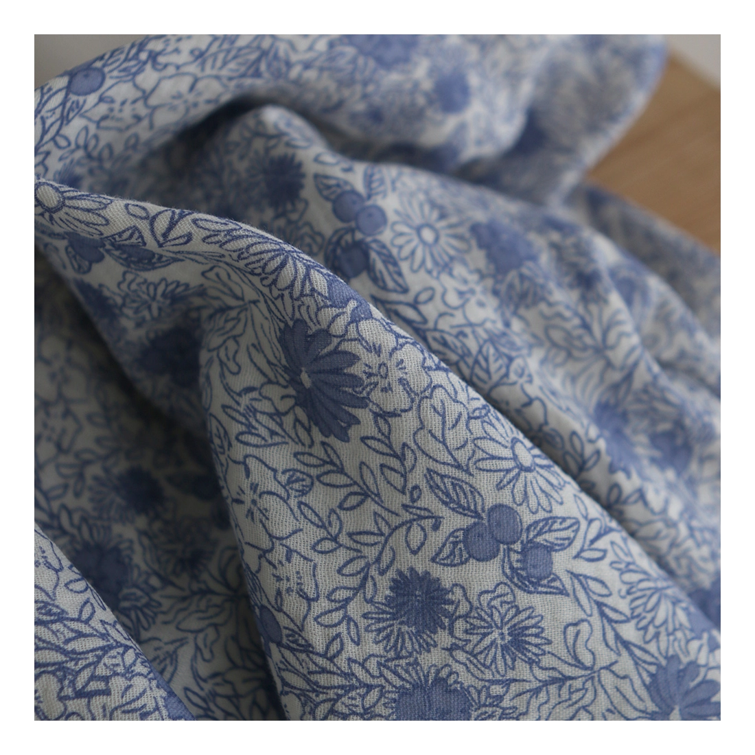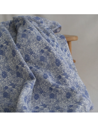 Zomea - Double gaze de coton fond écru motif bleu