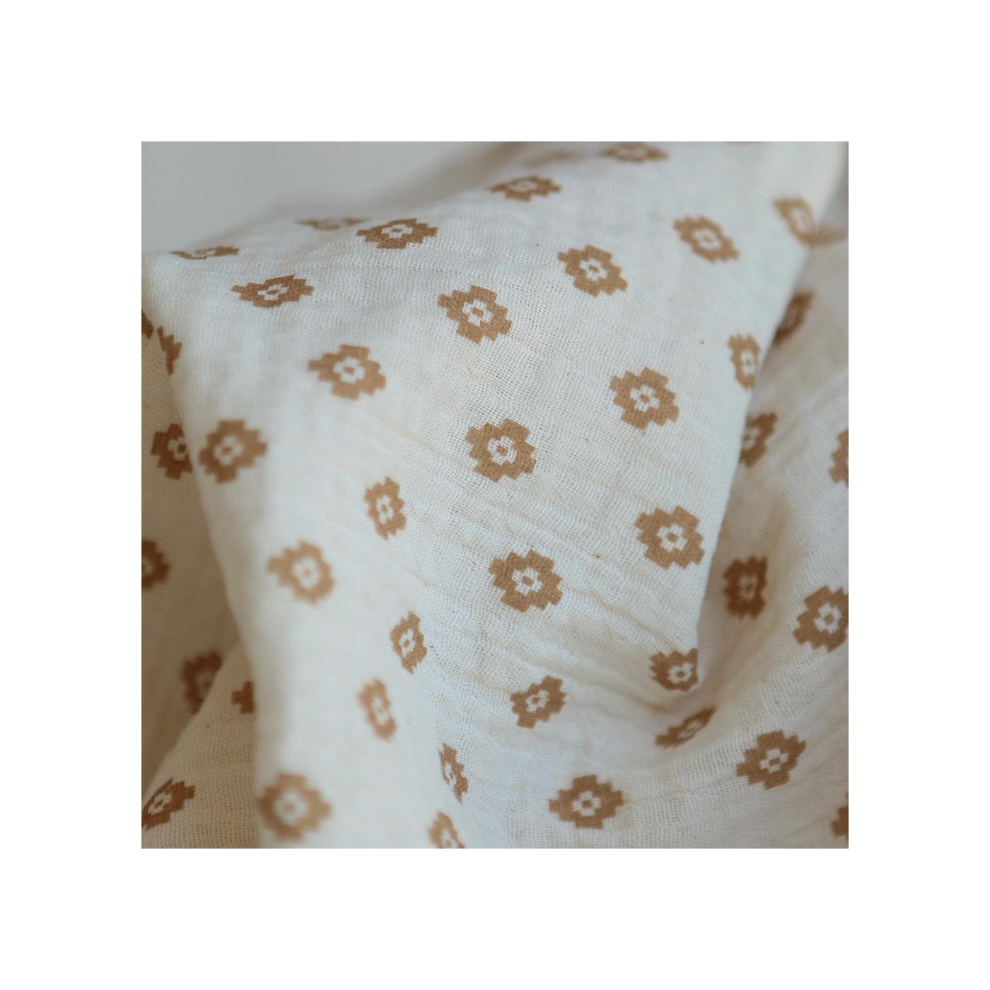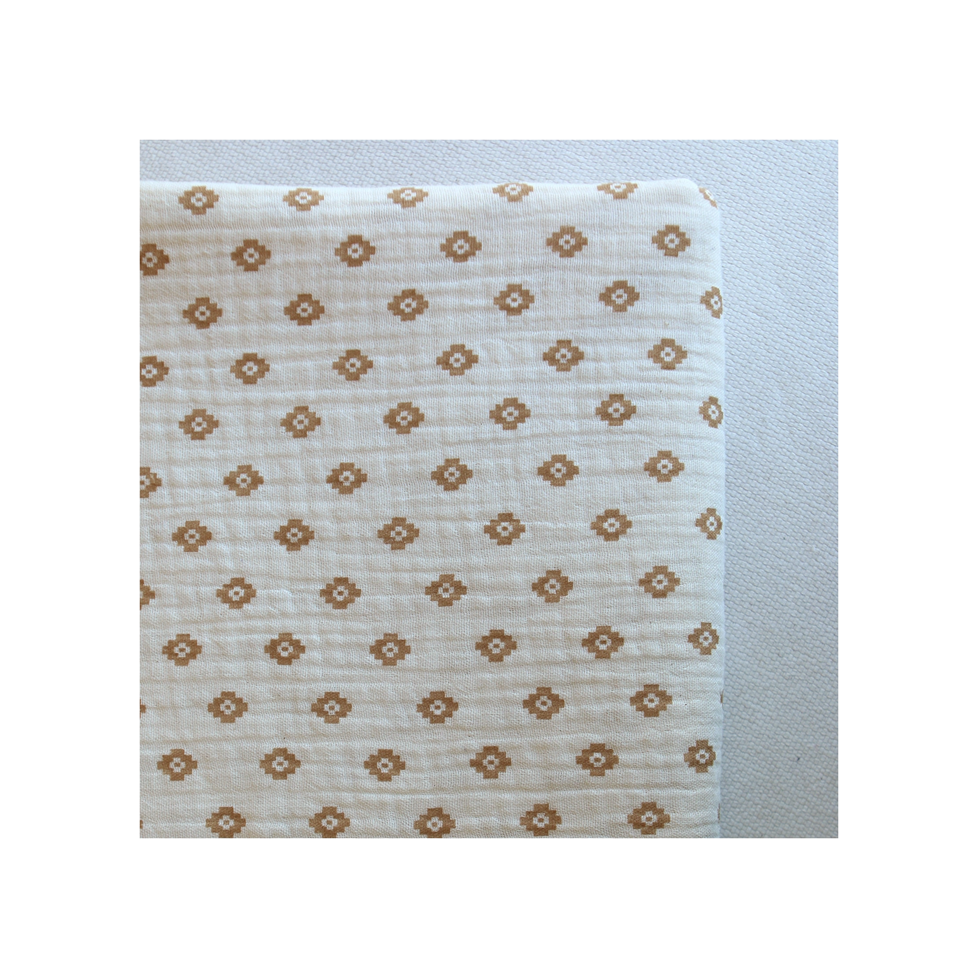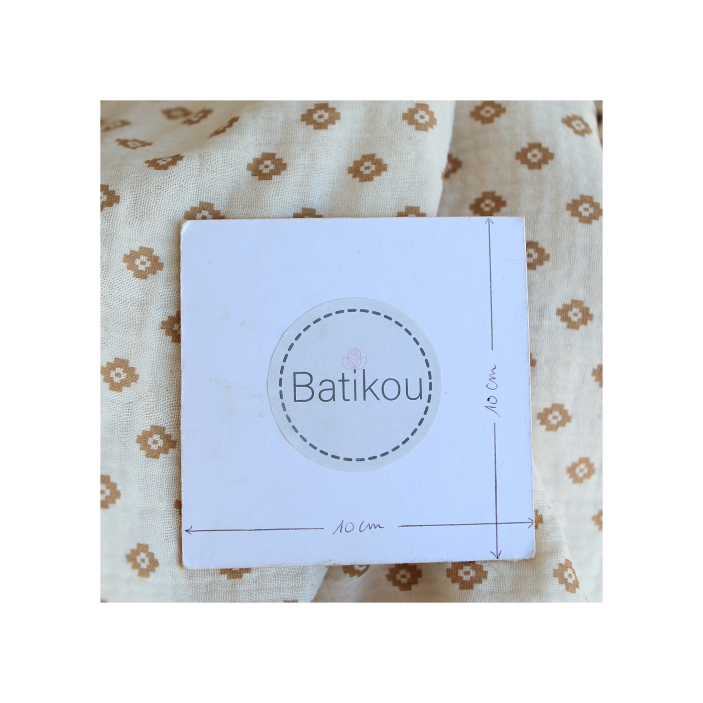Maya - Double gaze coton BIO motif fond écru camel