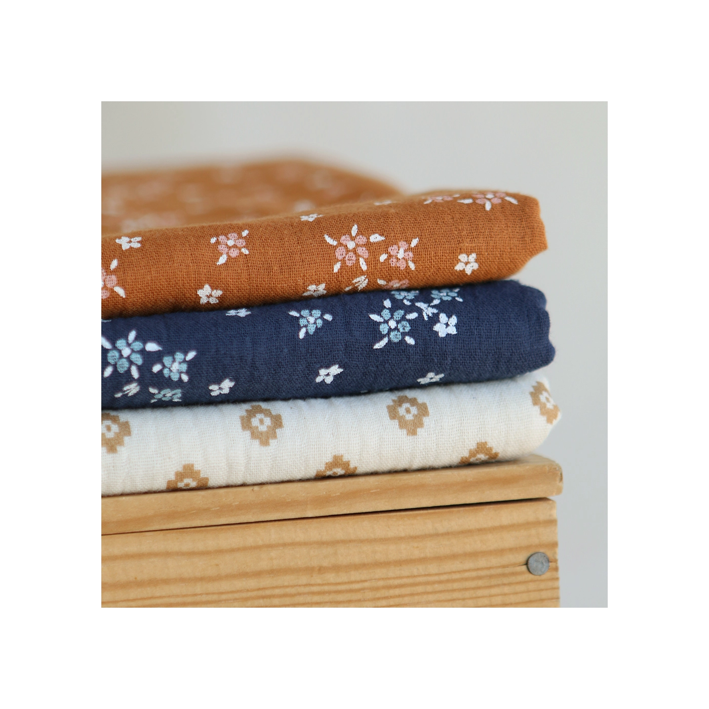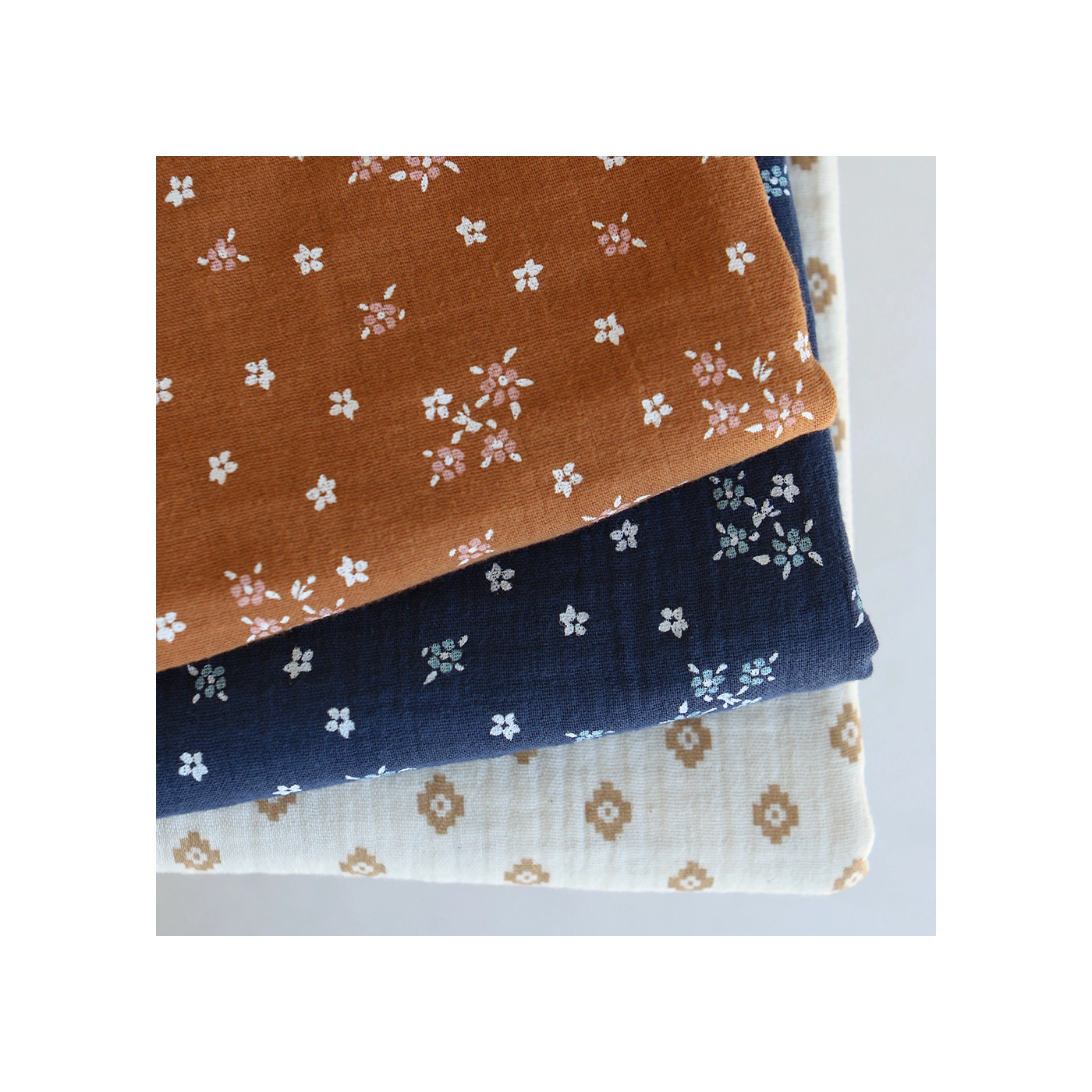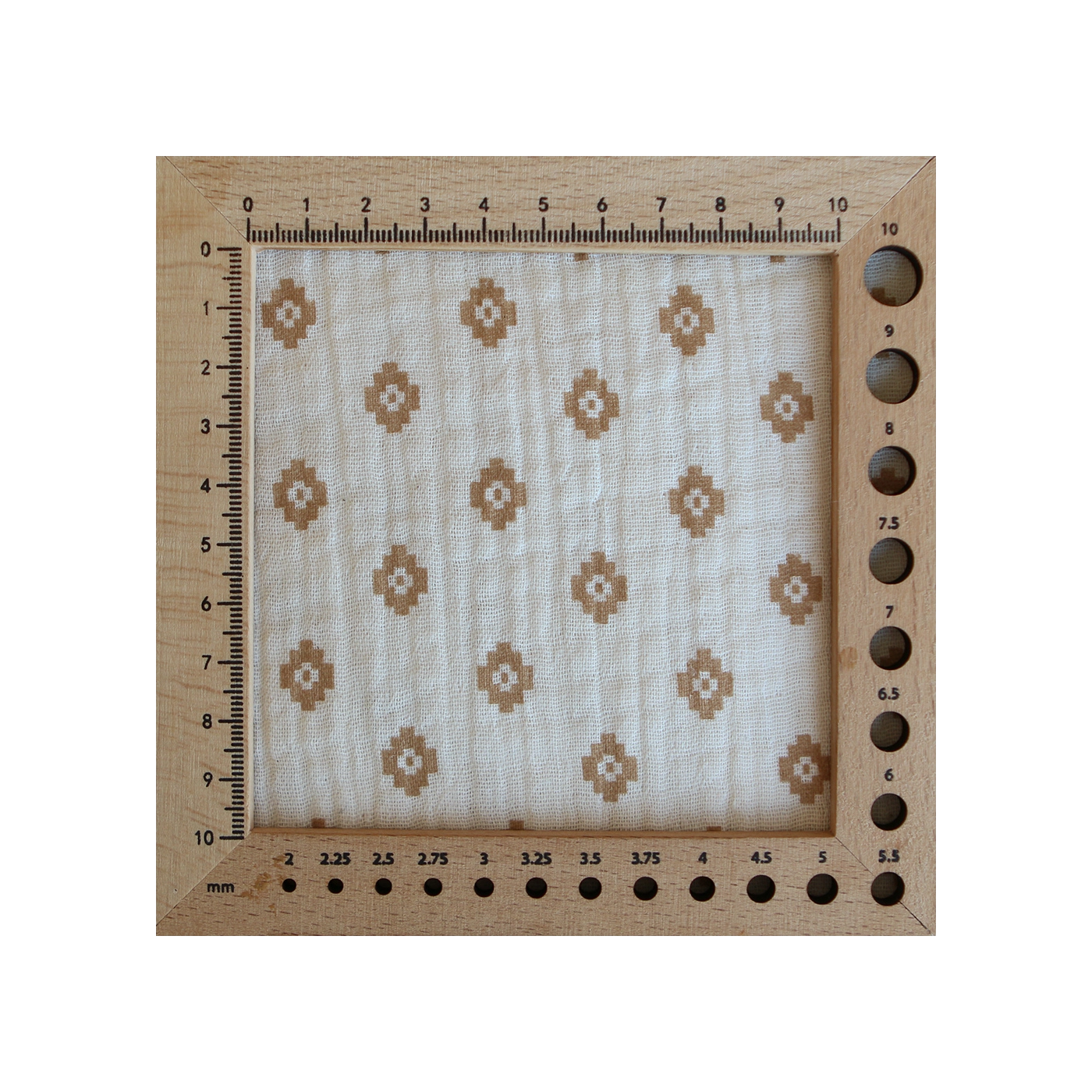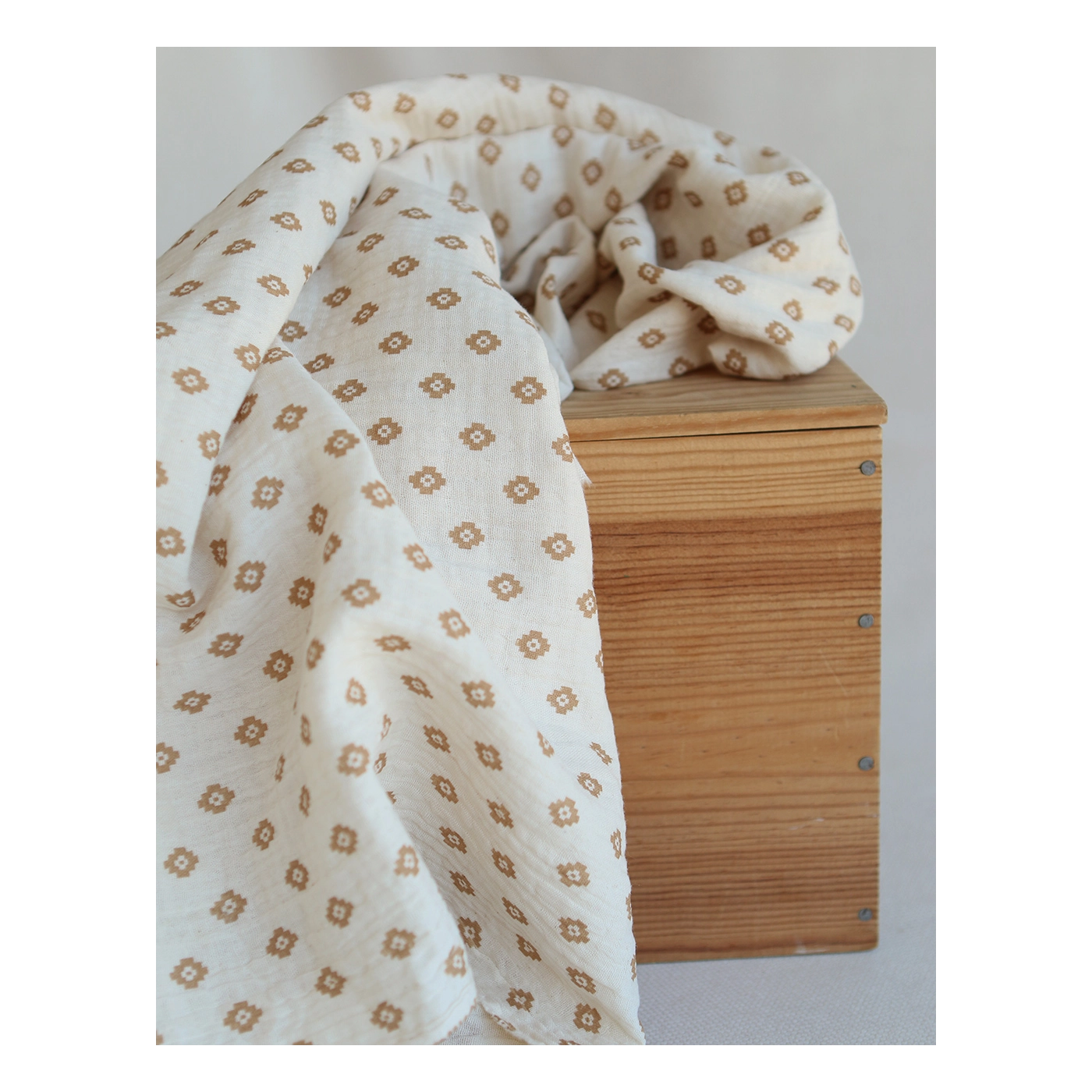 Maya - Double gaze coton BIO motif fond écru camel