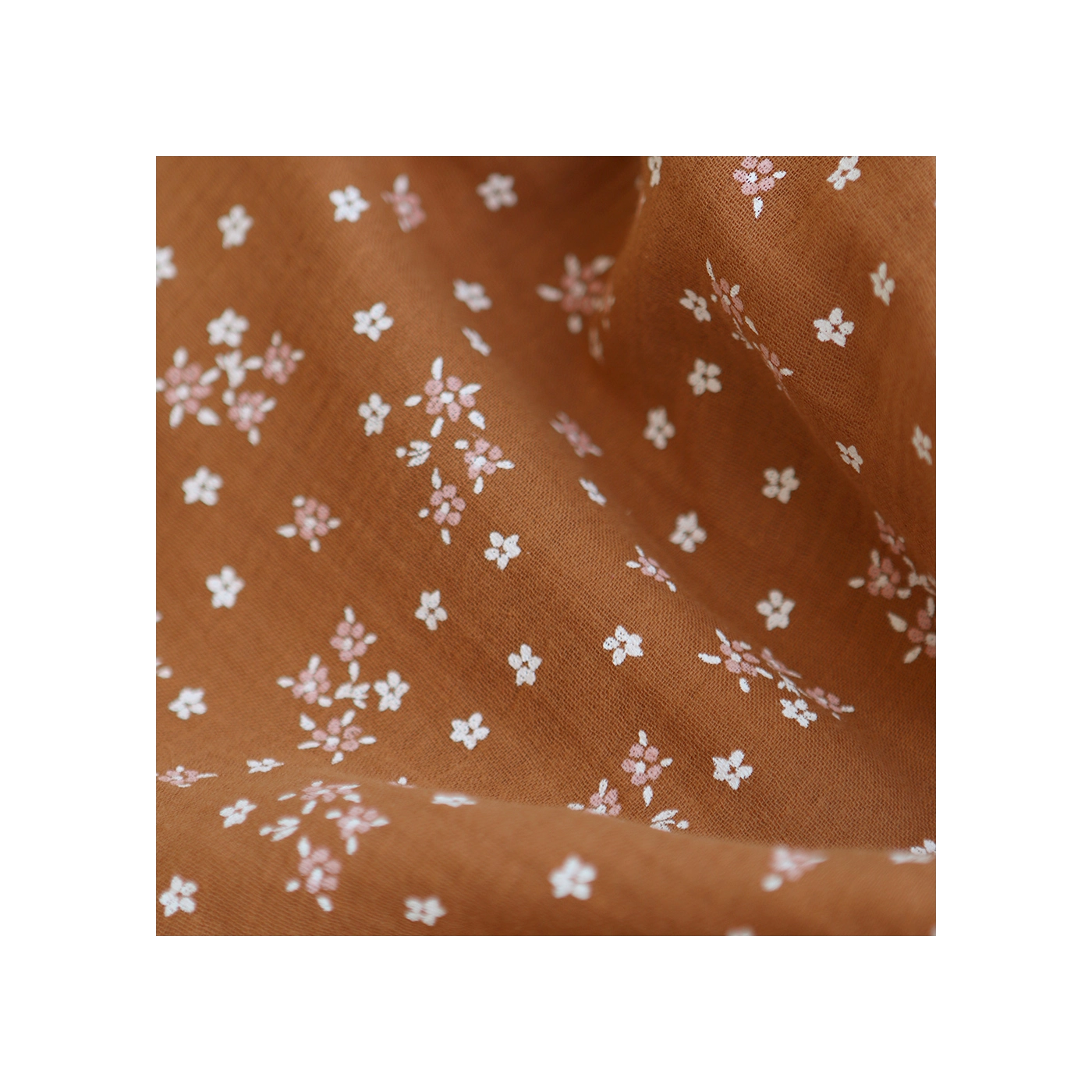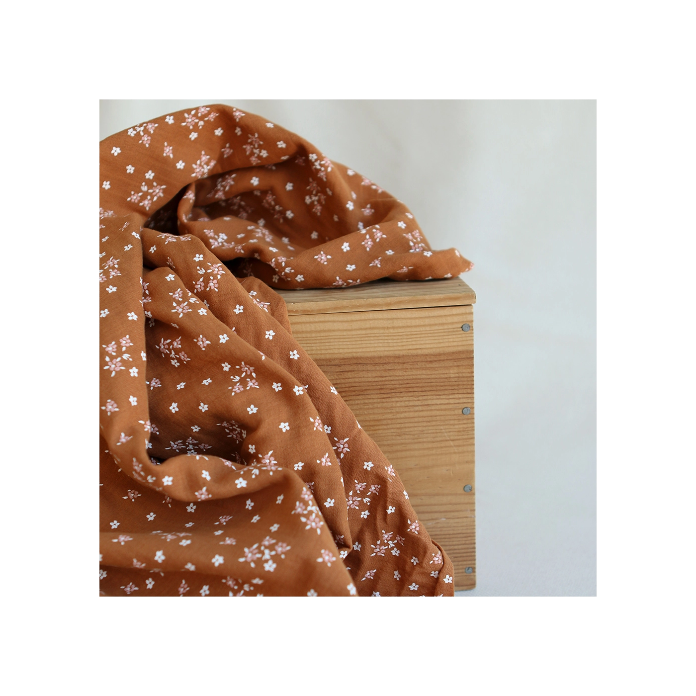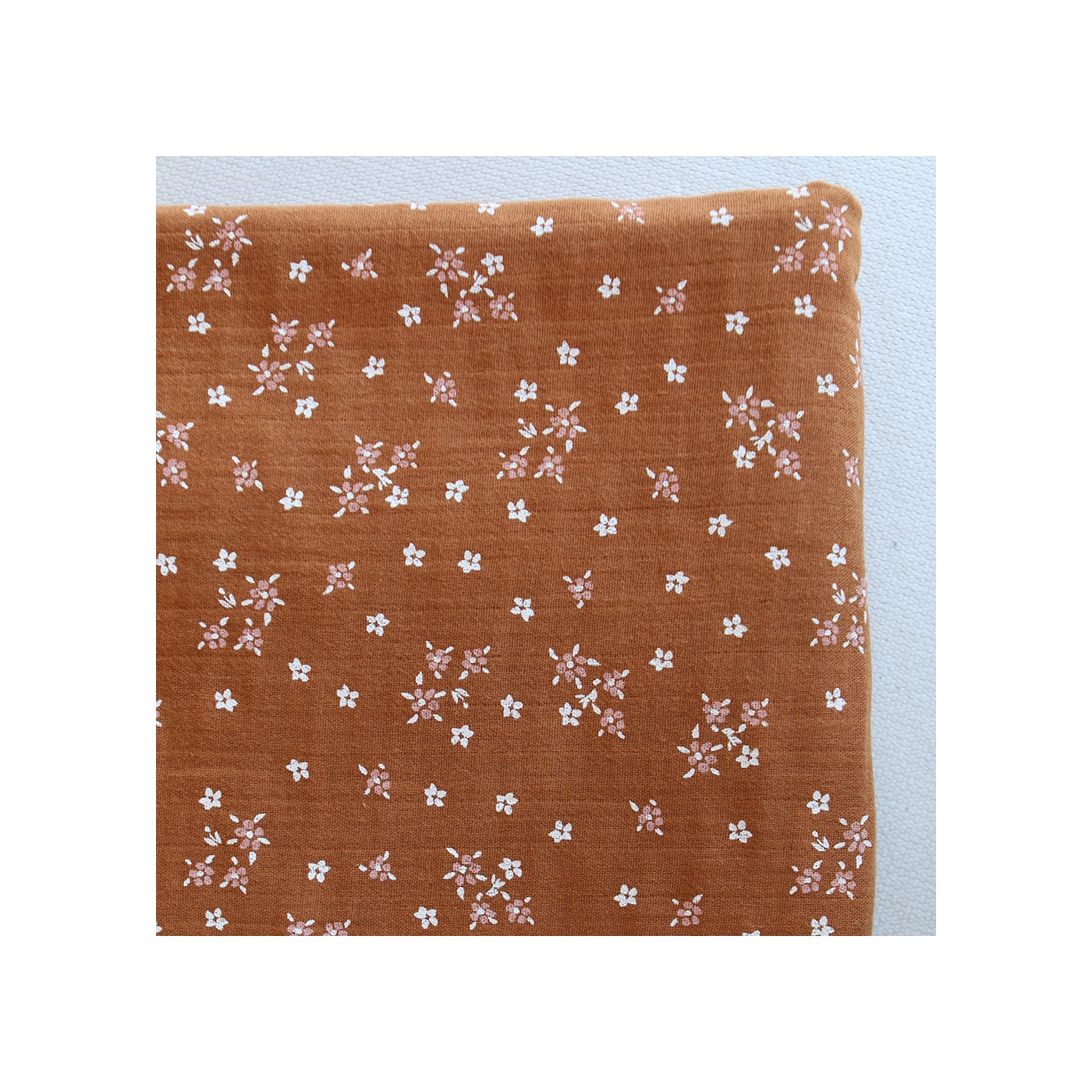 Lena - Double gaze de coton motif fleuri fond écureuil
