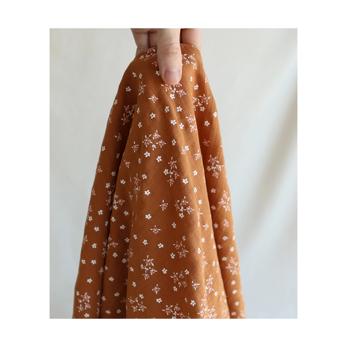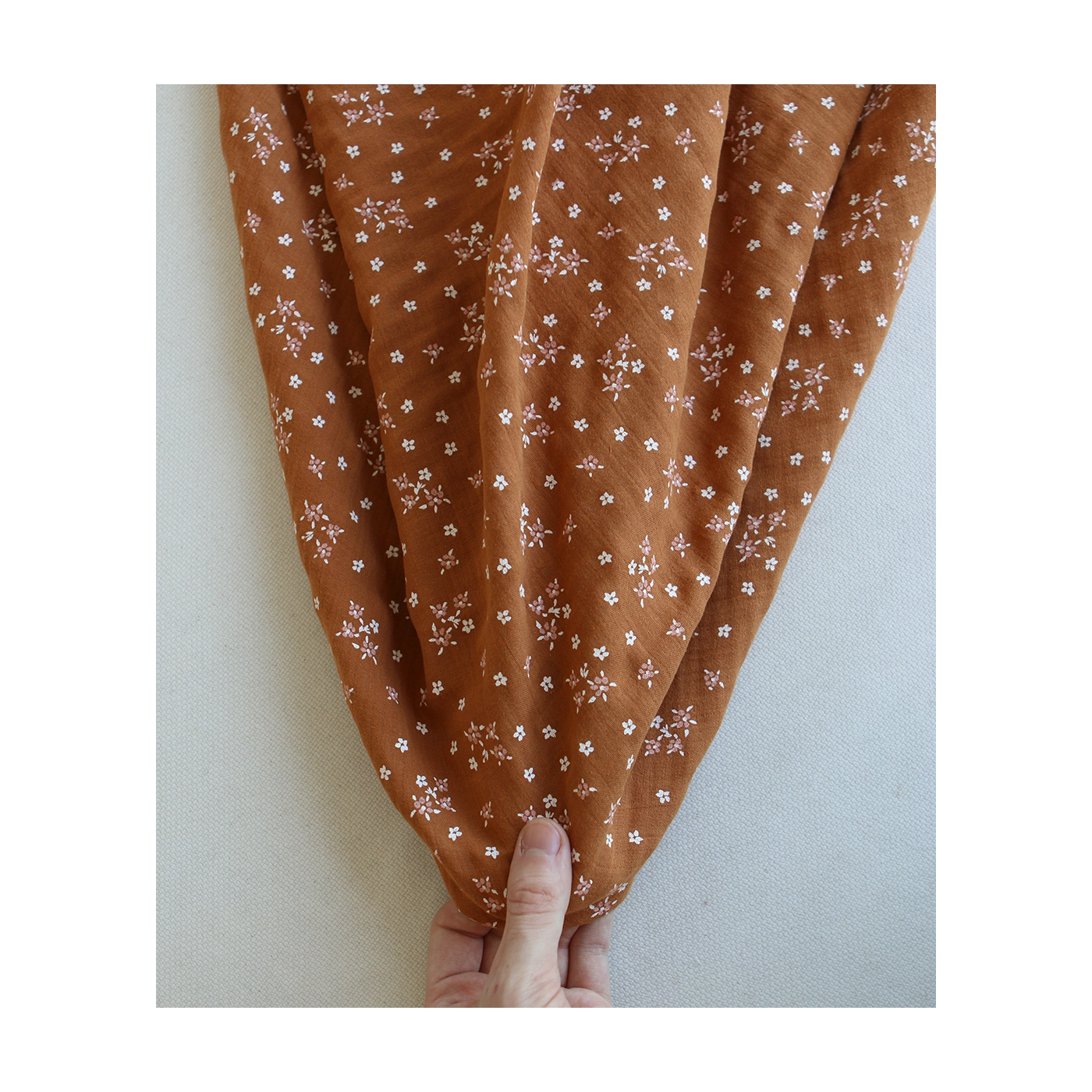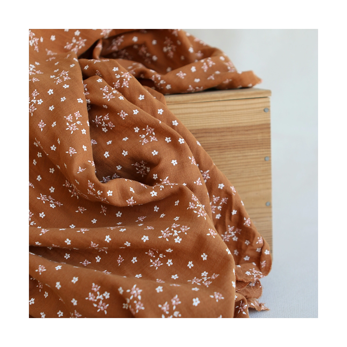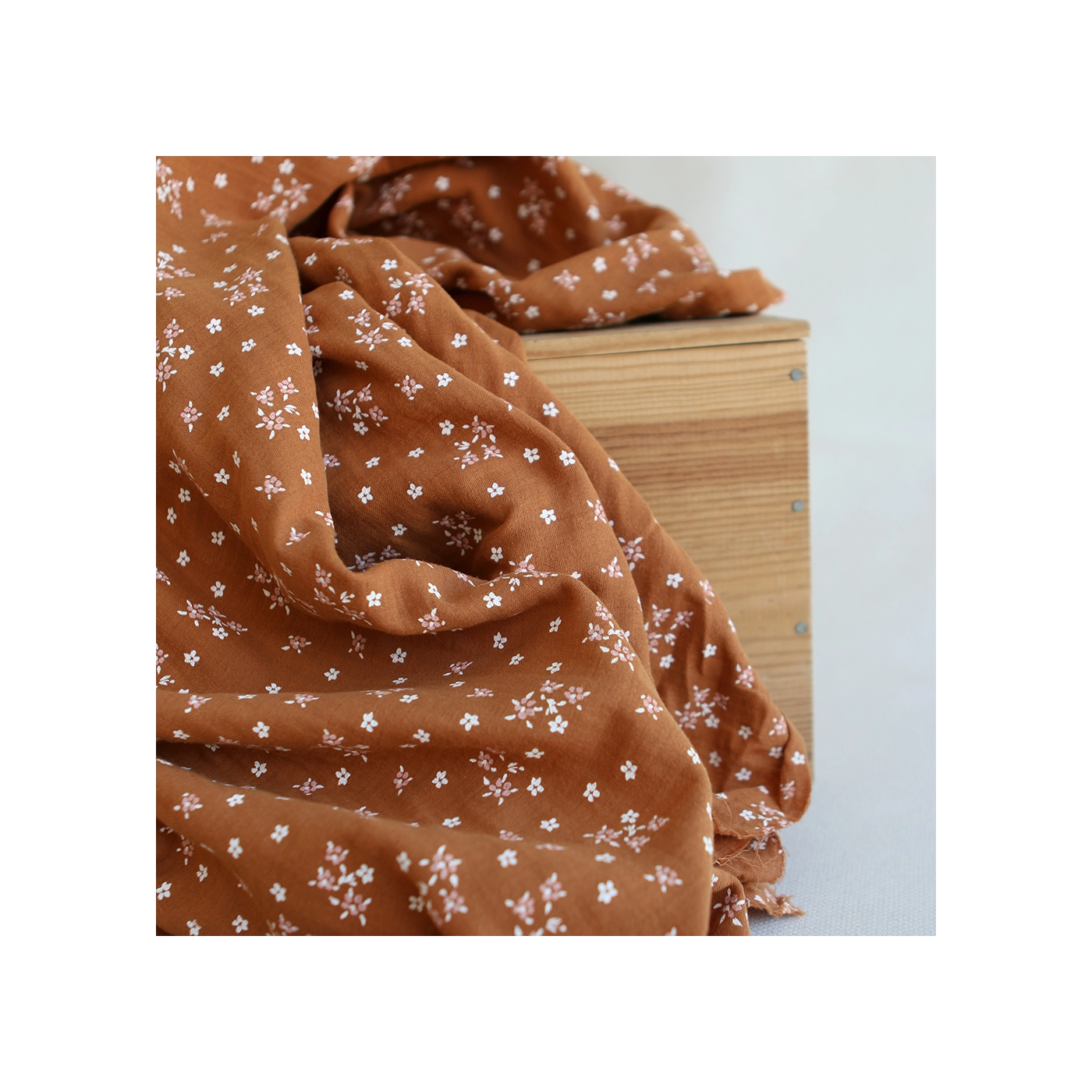 Lena - Double gaze de coton motif fleuri fond écureuil