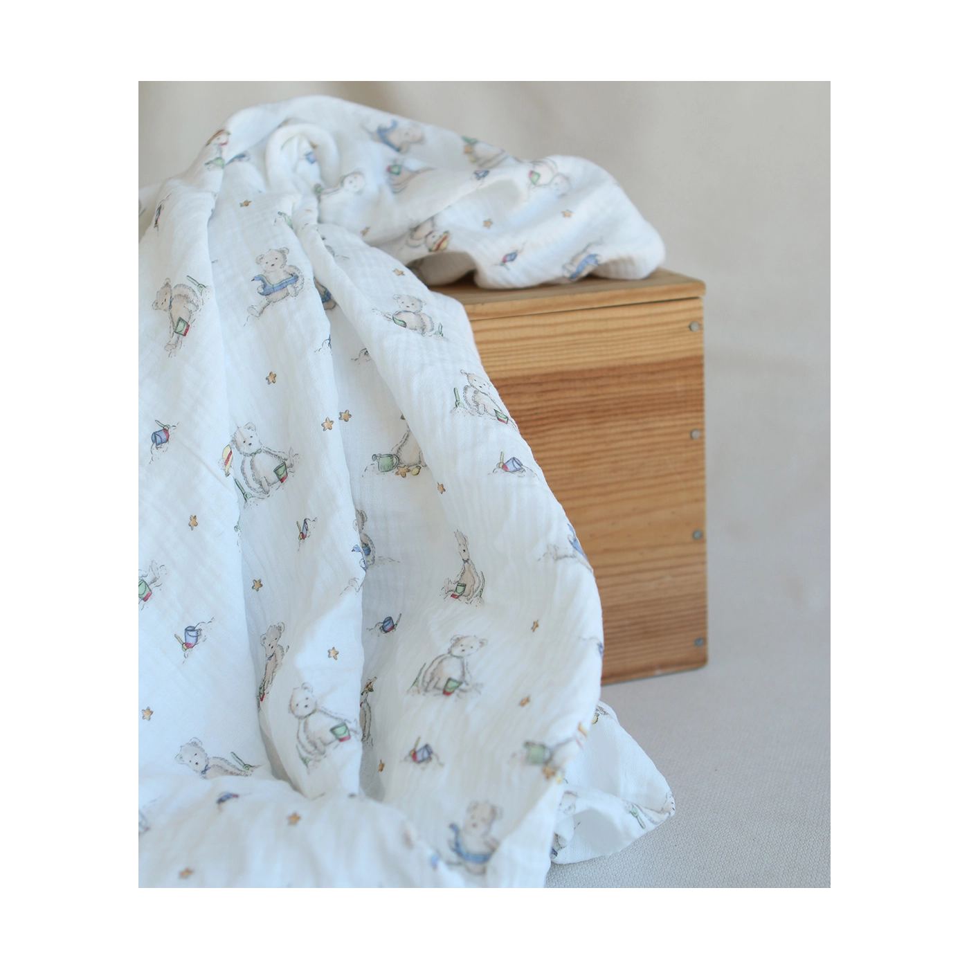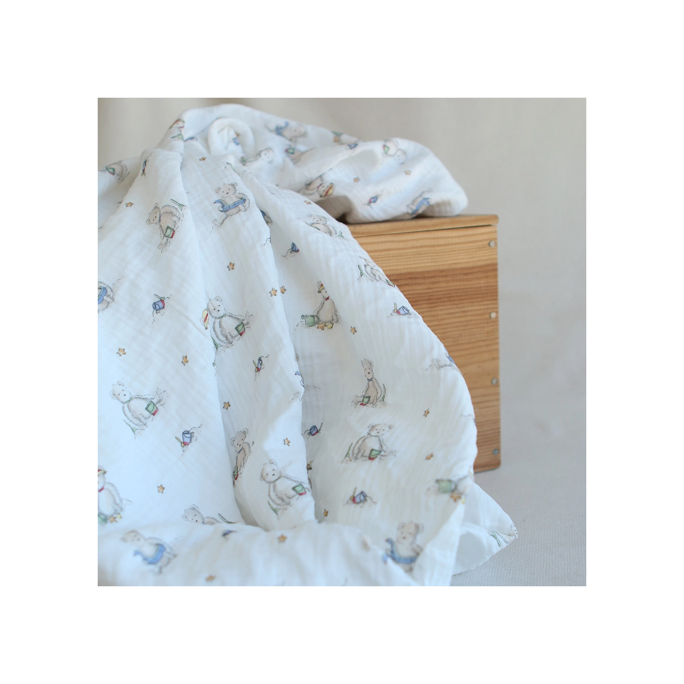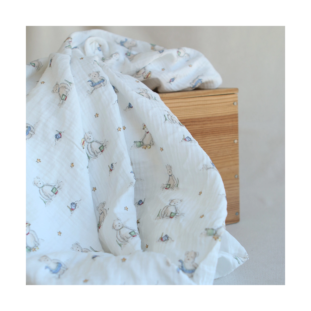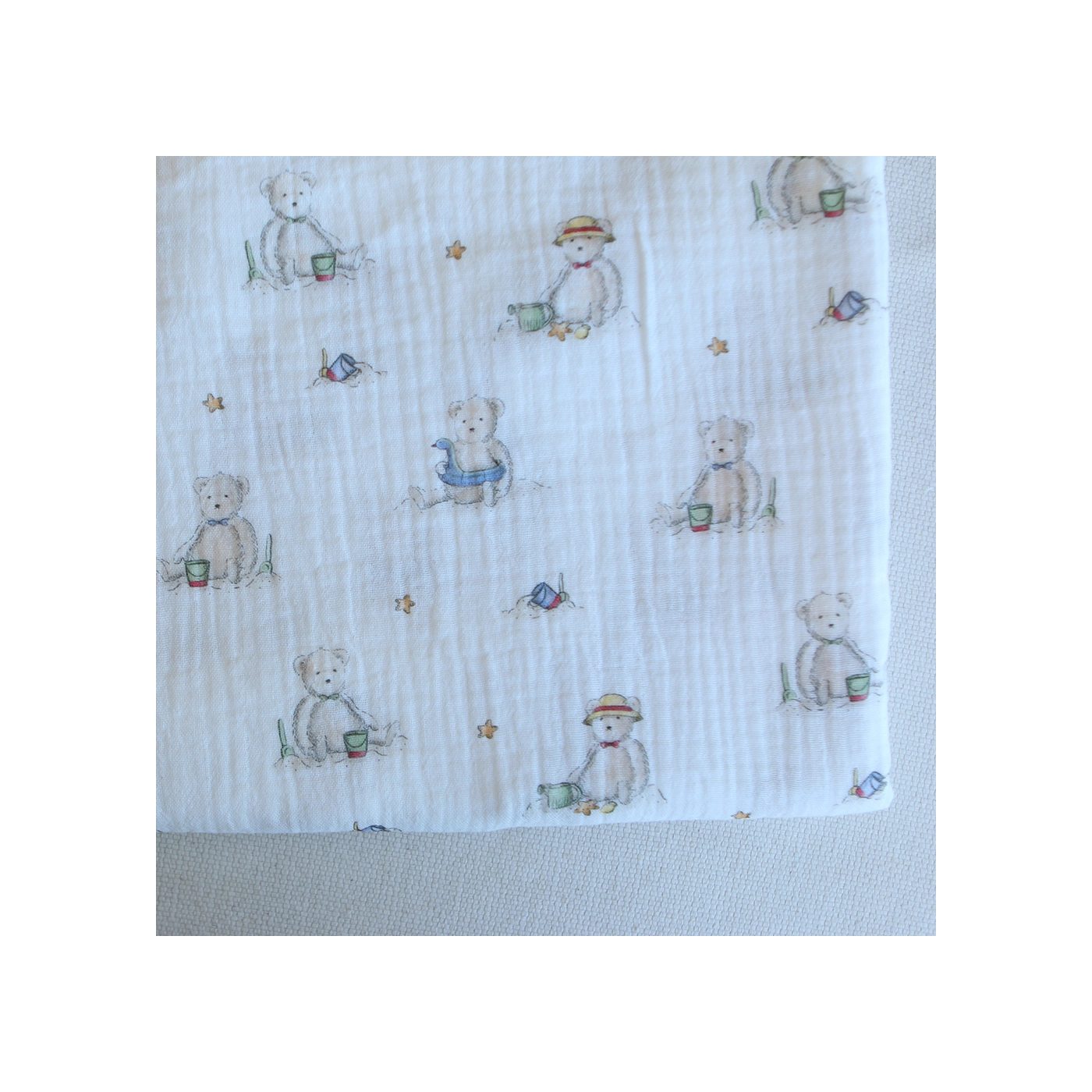 Barry - Double gaze de coton motif ourson à la plage
