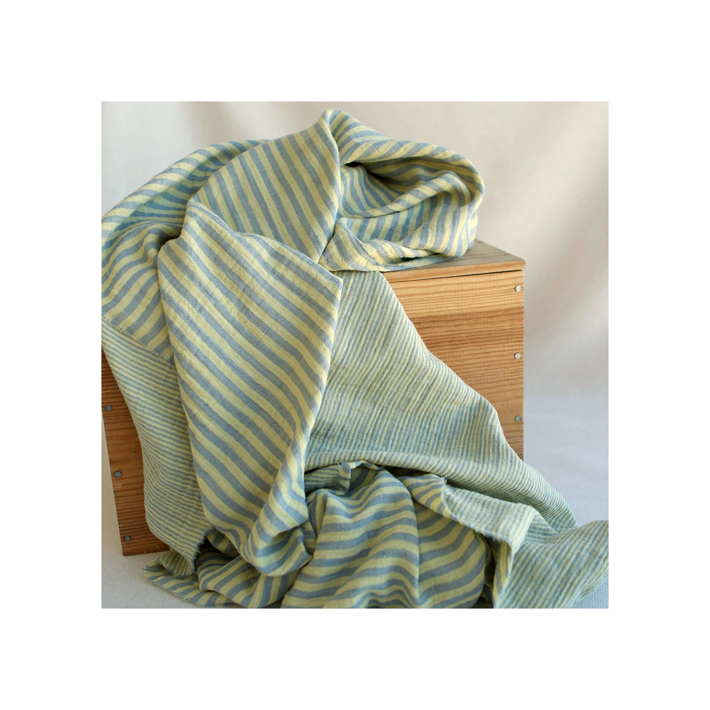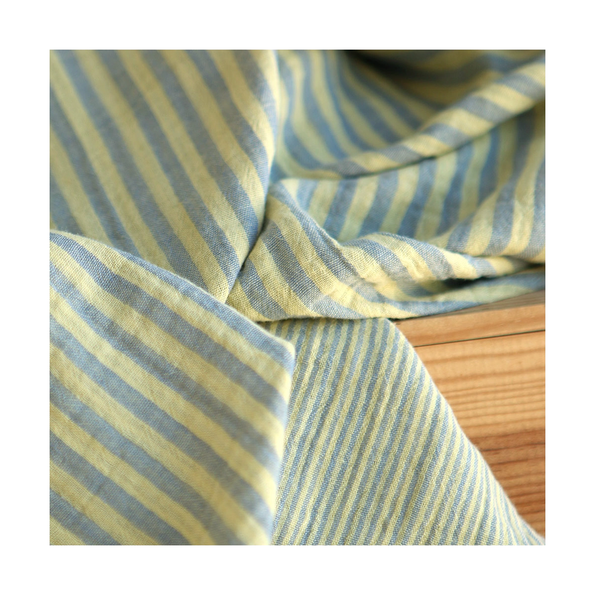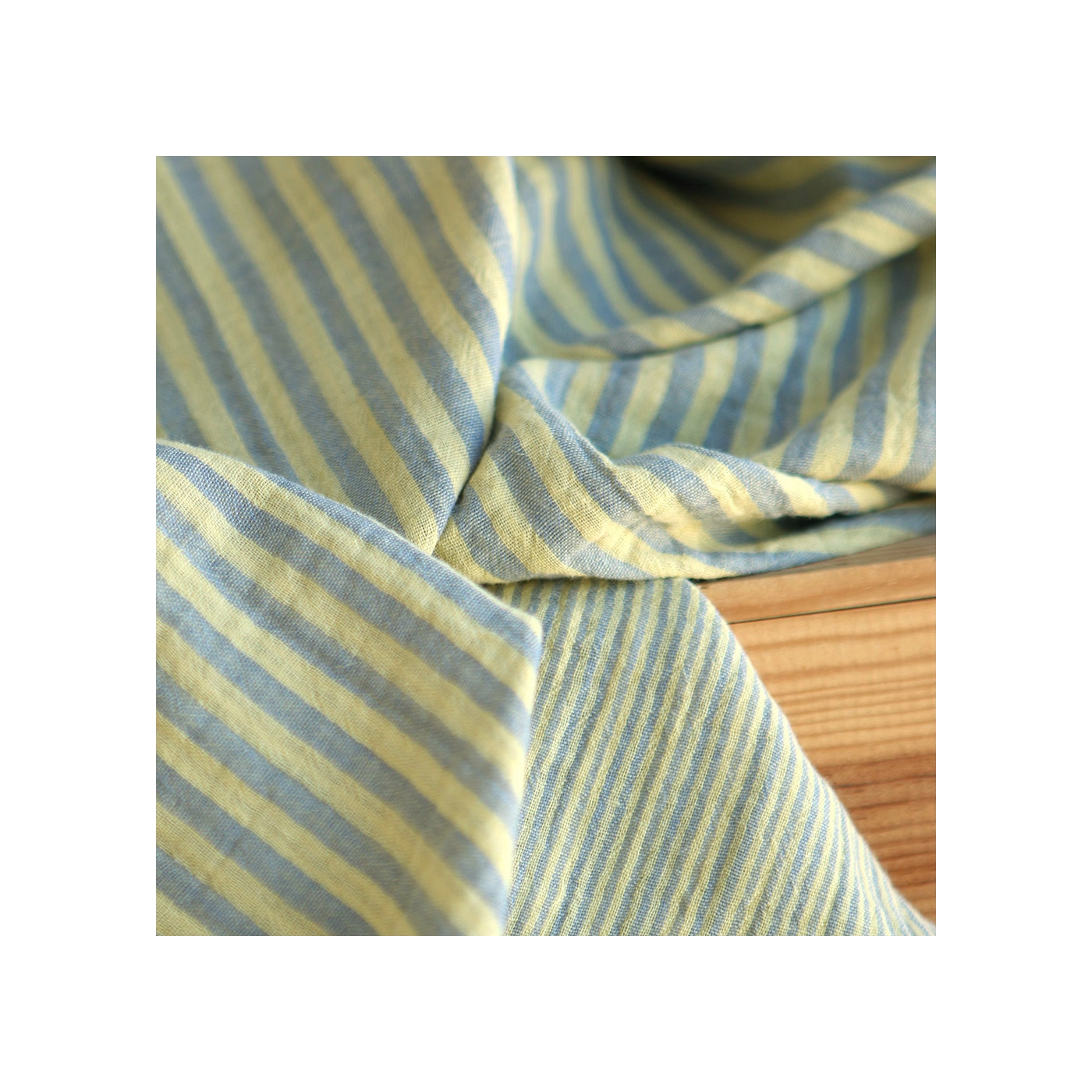 Double gaze de coton réversible rayures lemon et bleu baltique
