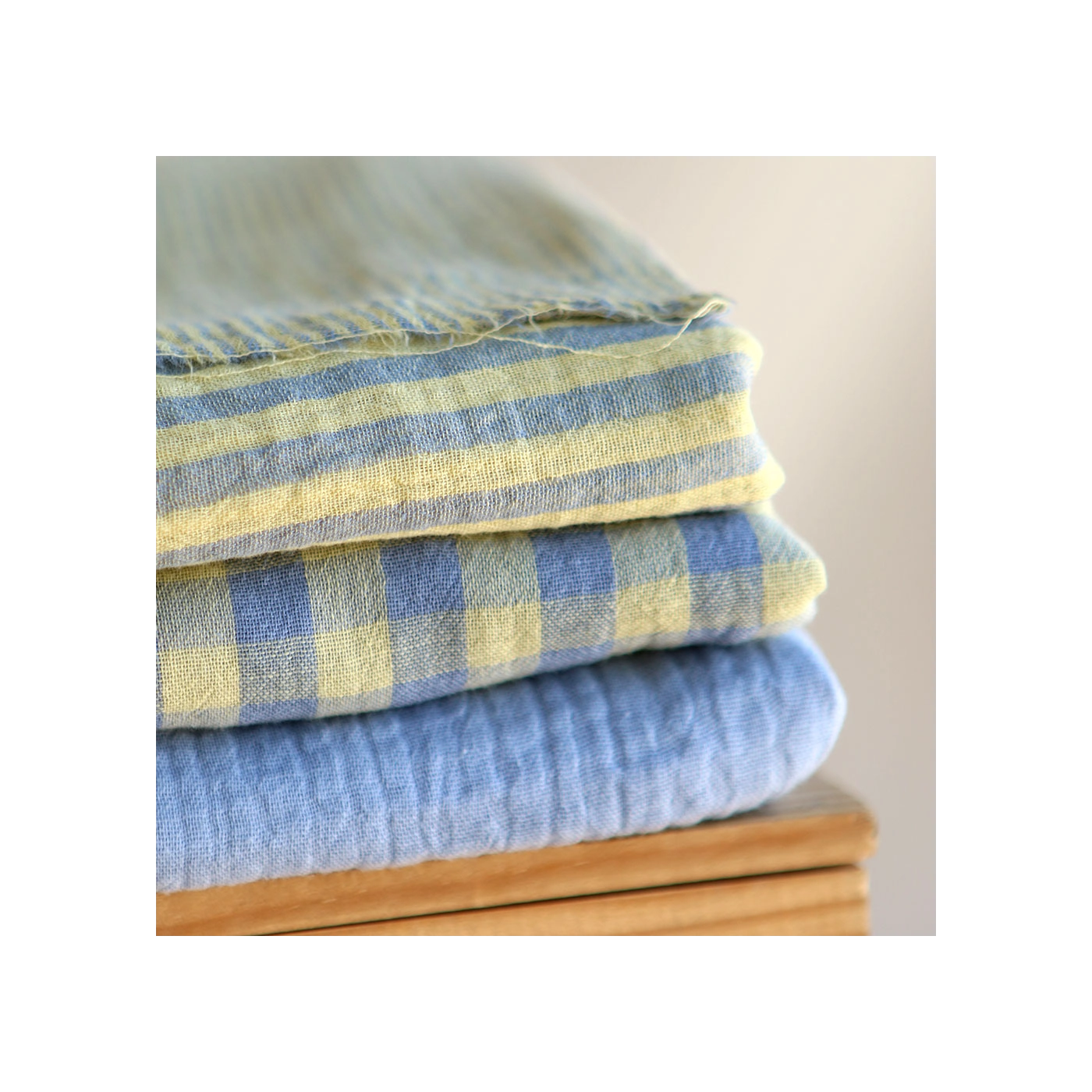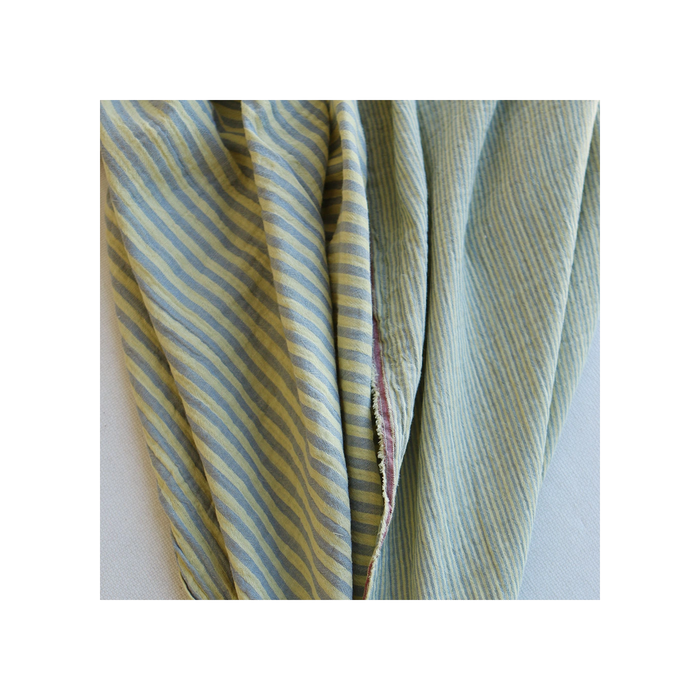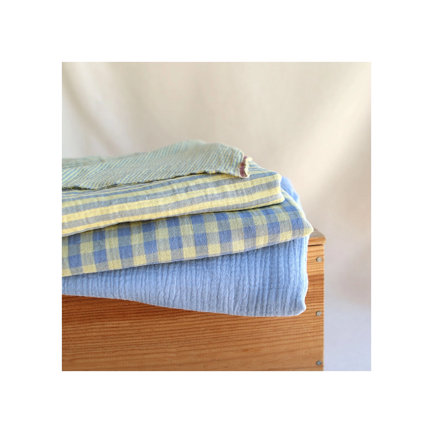 Double gaze de coton réversible rayures lemon et bleu baltique