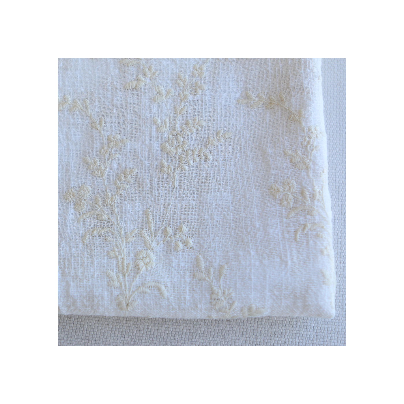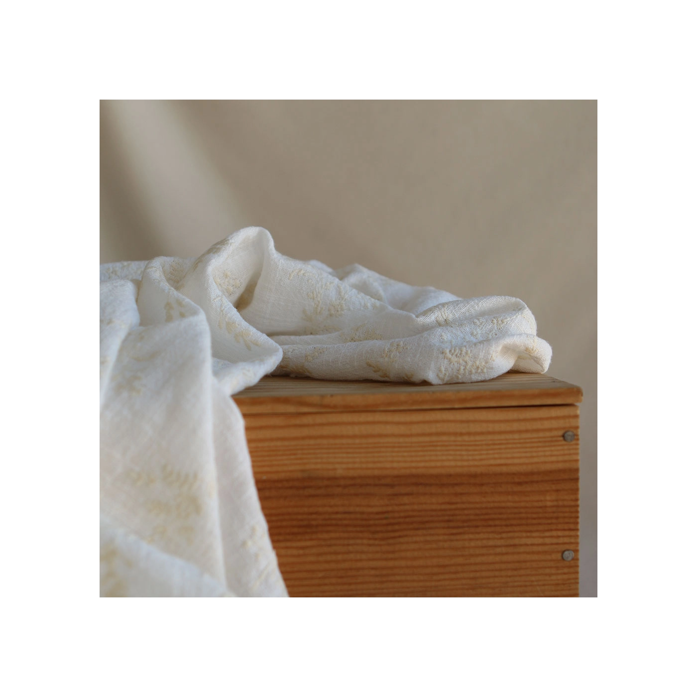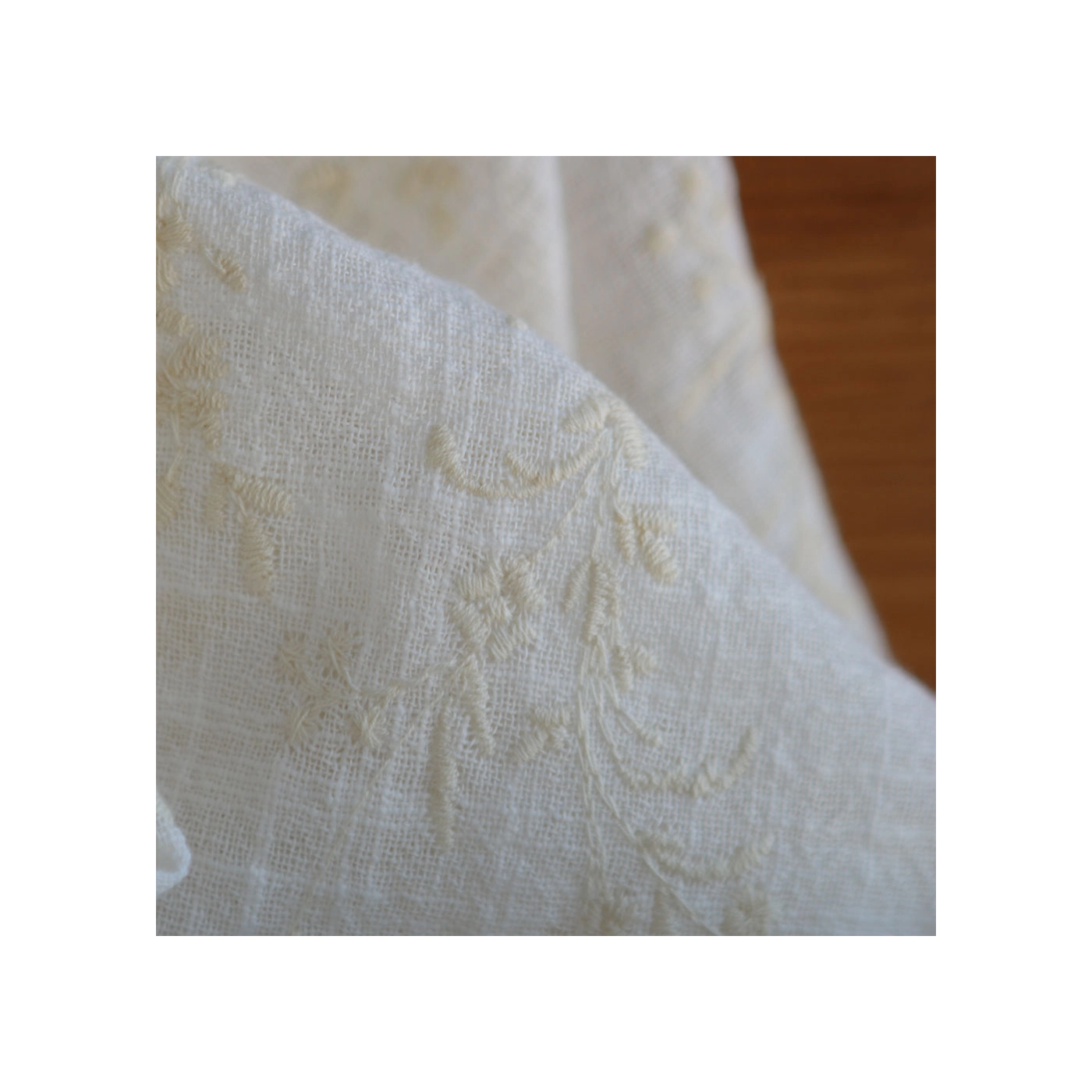 Gaze de coton BIO blanc lait broderie anglaise écru
