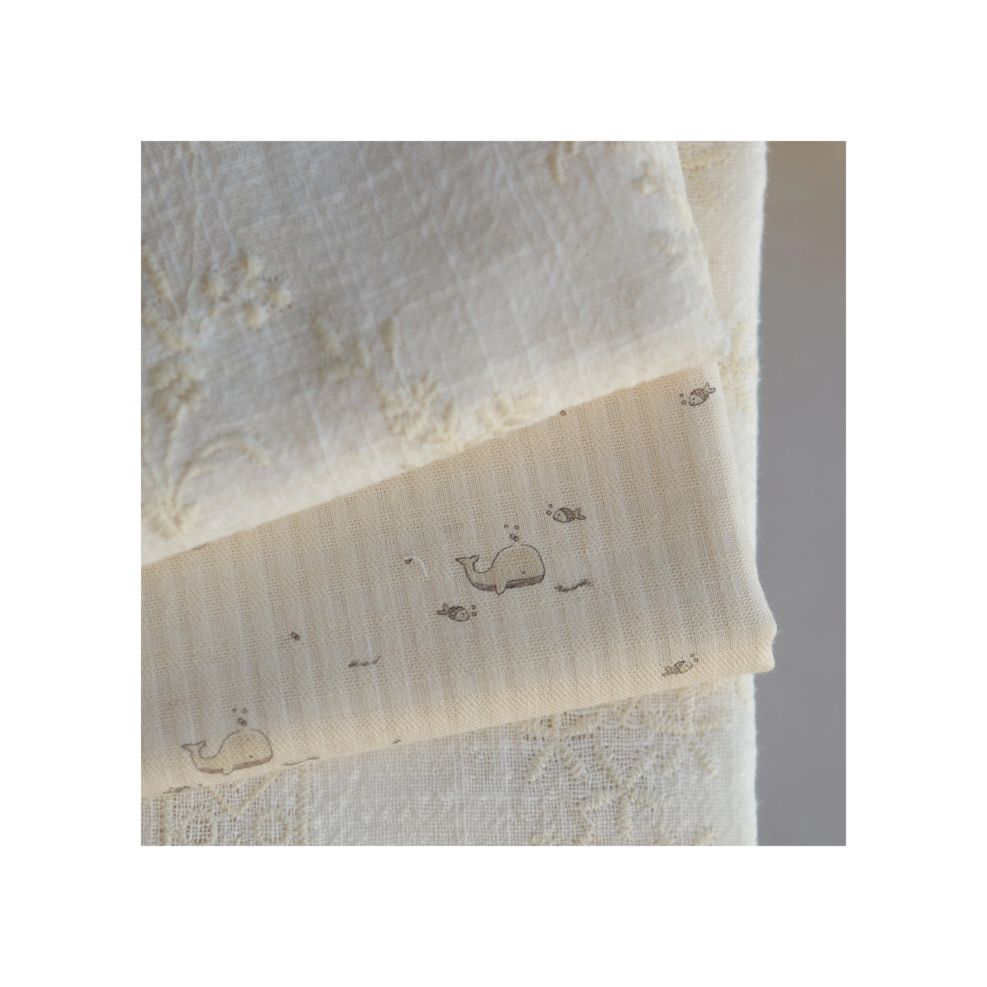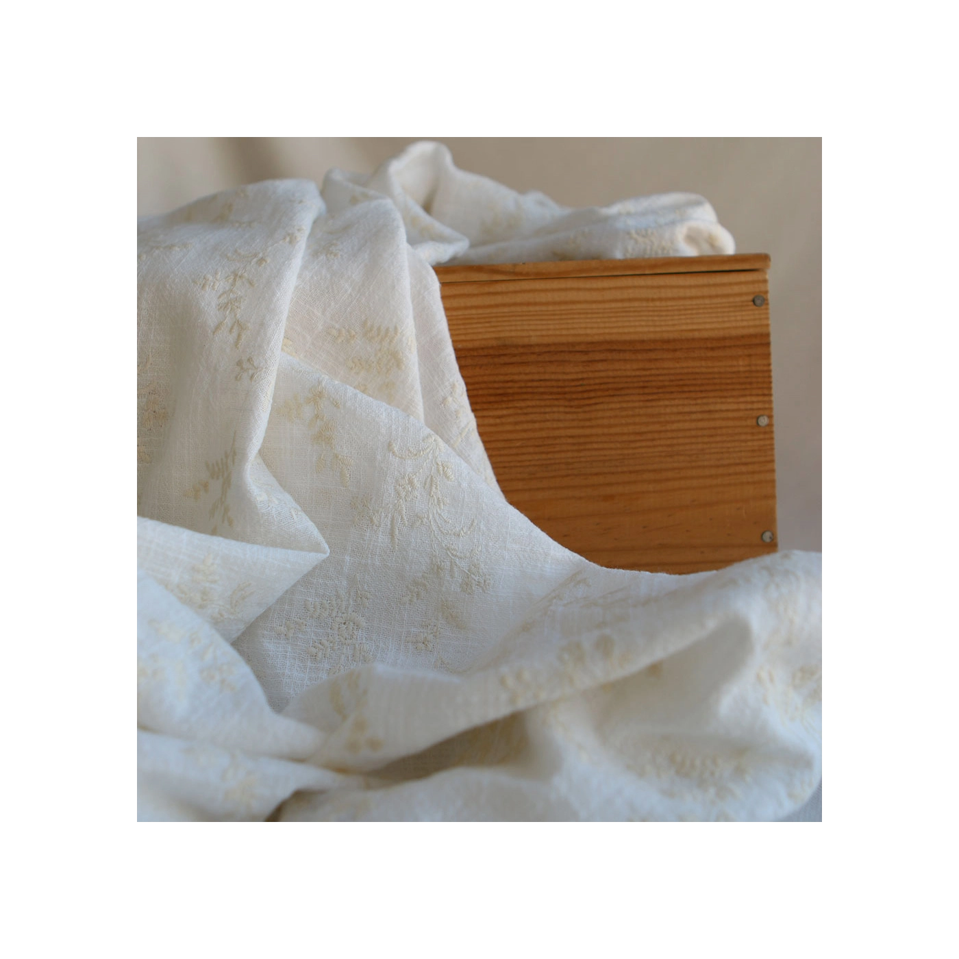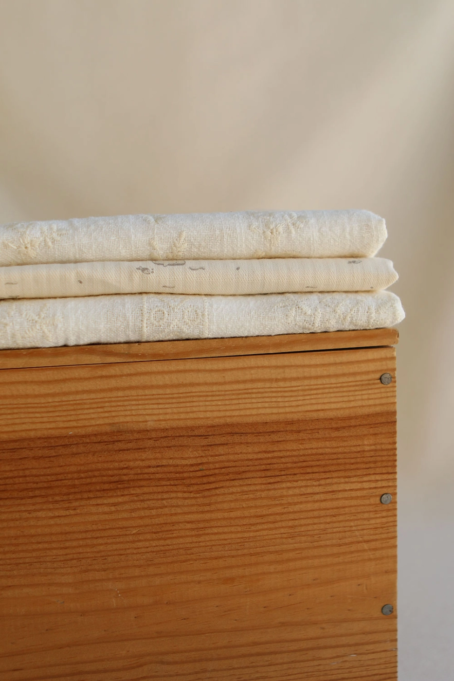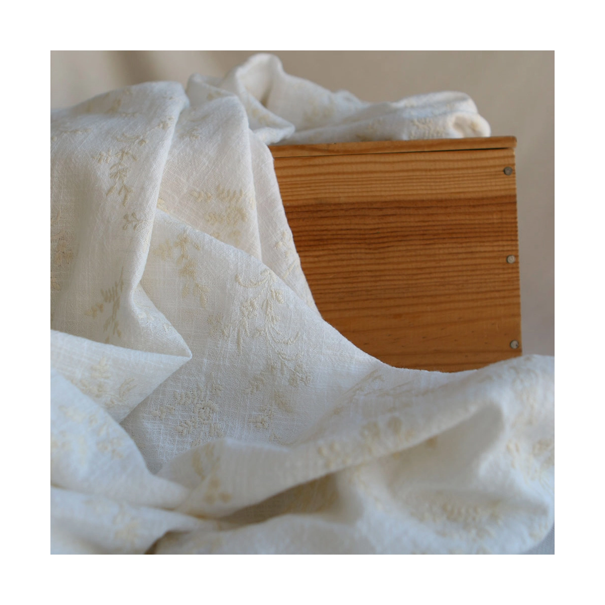 Gaze de coton BIO blanc lait broderie anglaise écru