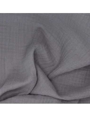 Double gaze de coton BIO unie gris éléphant
