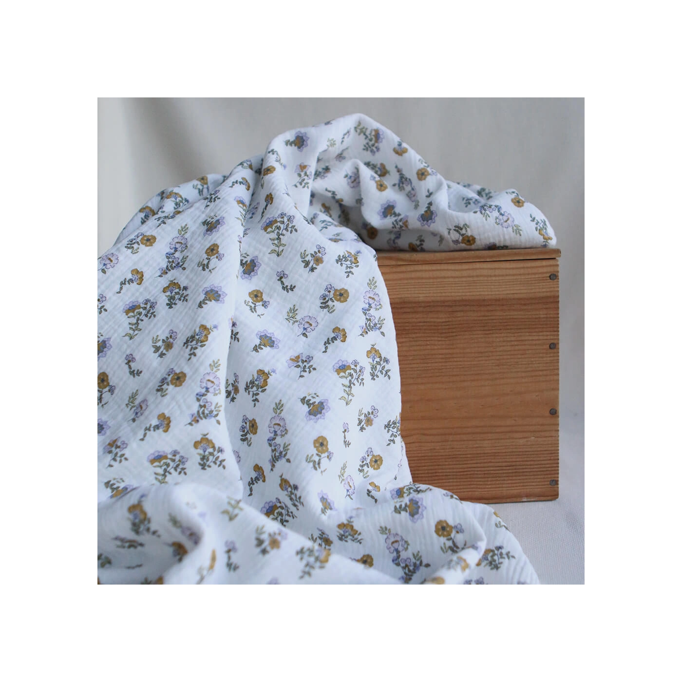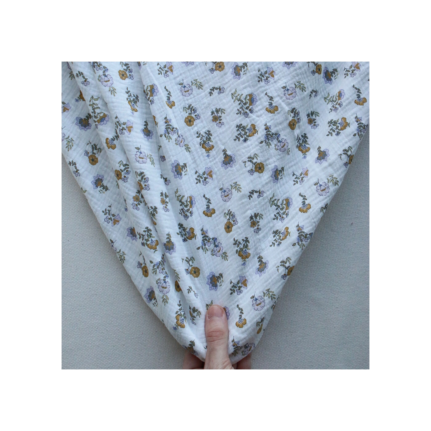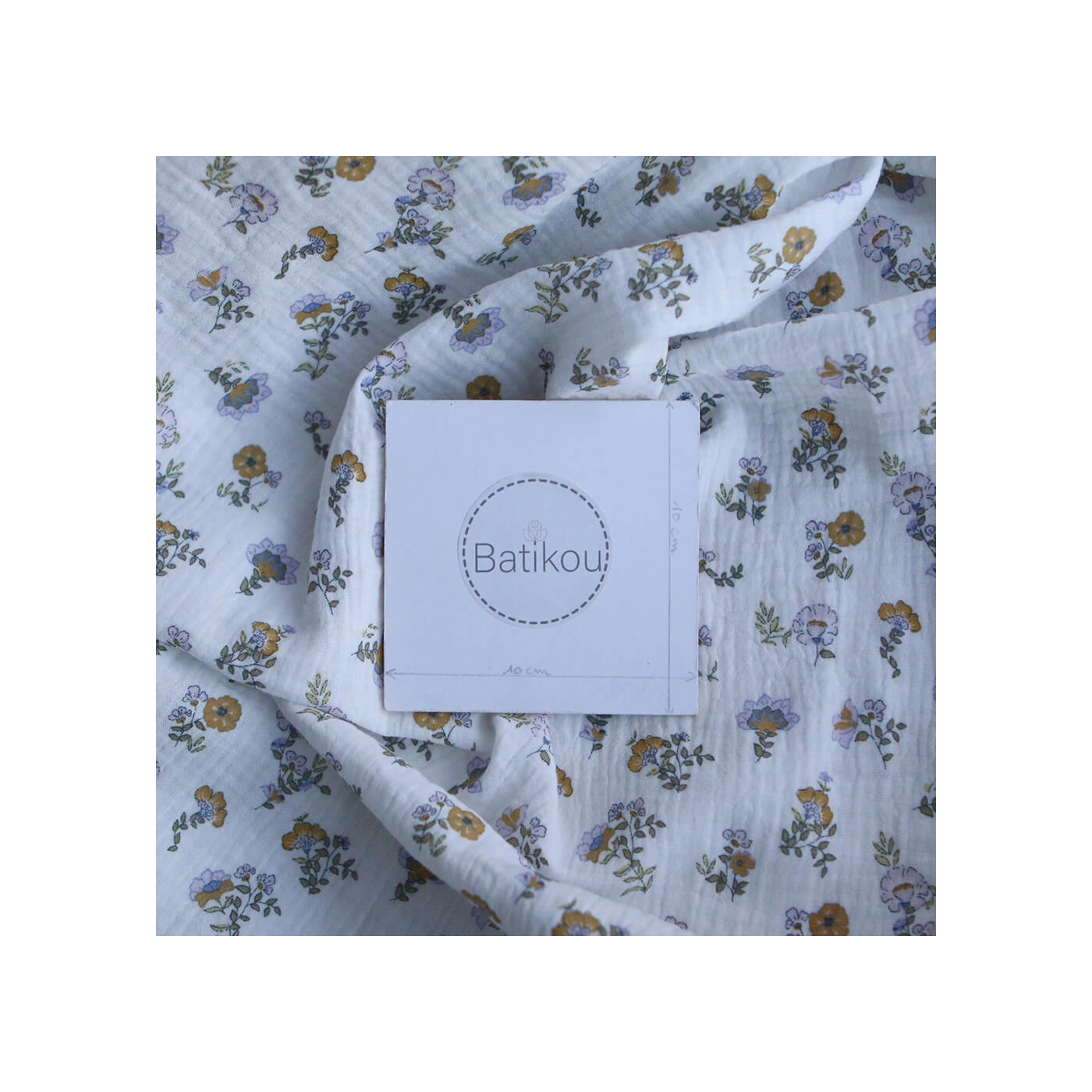 Azélie - Double gaze de coton motif fleuri parme moutarde et vert