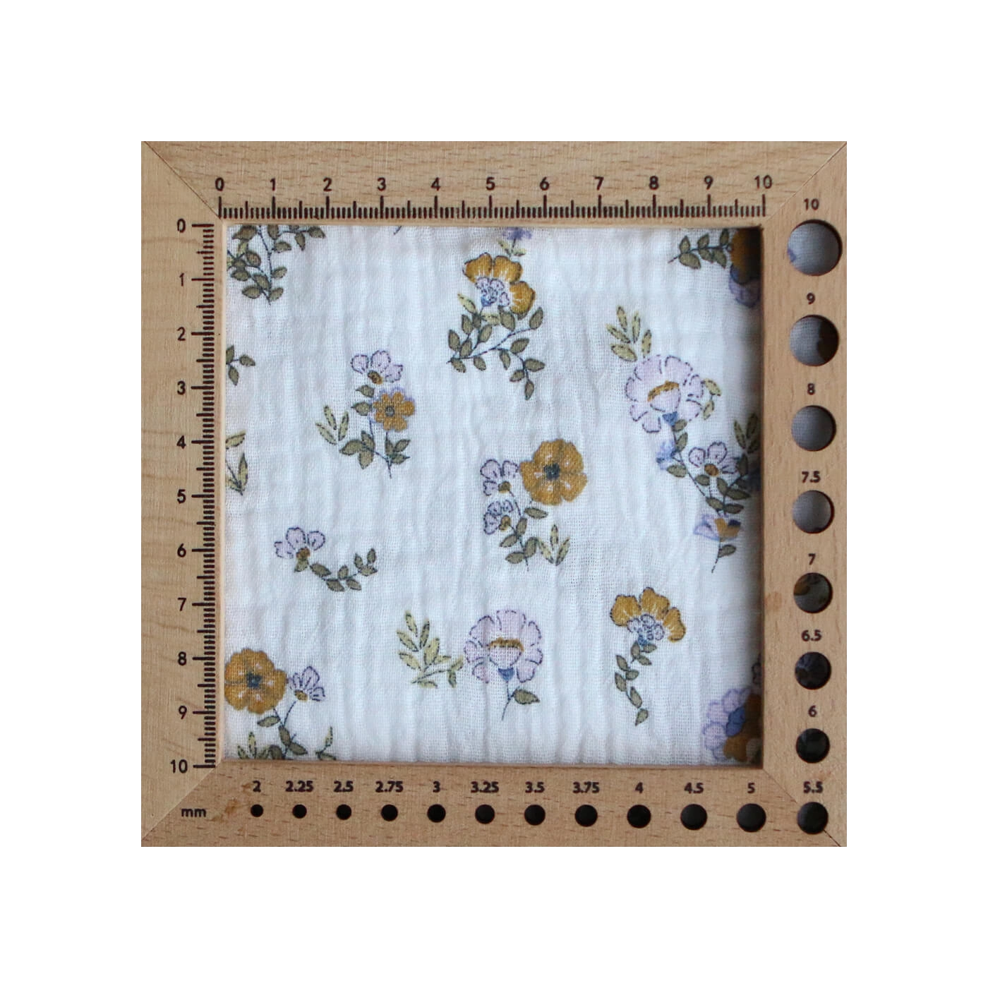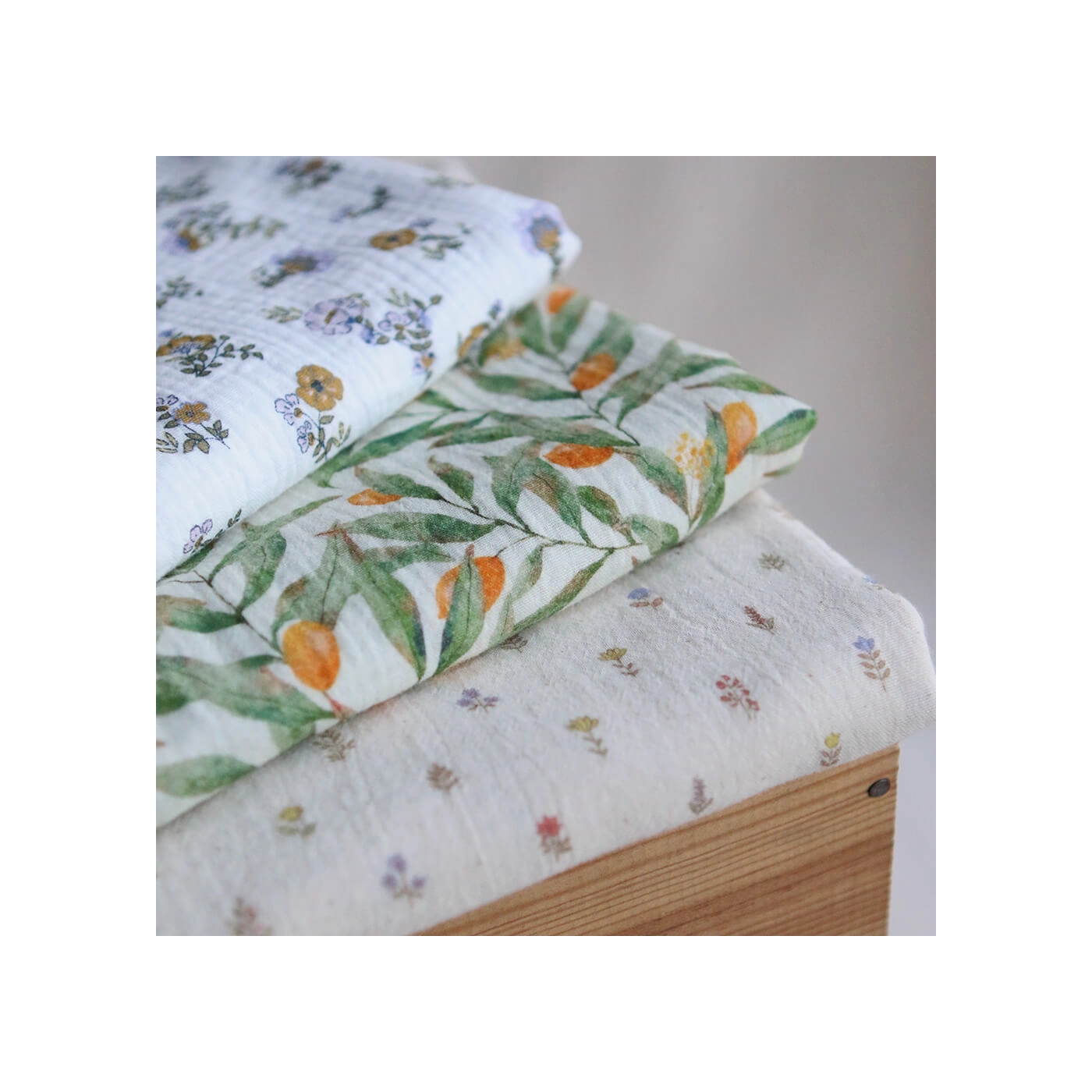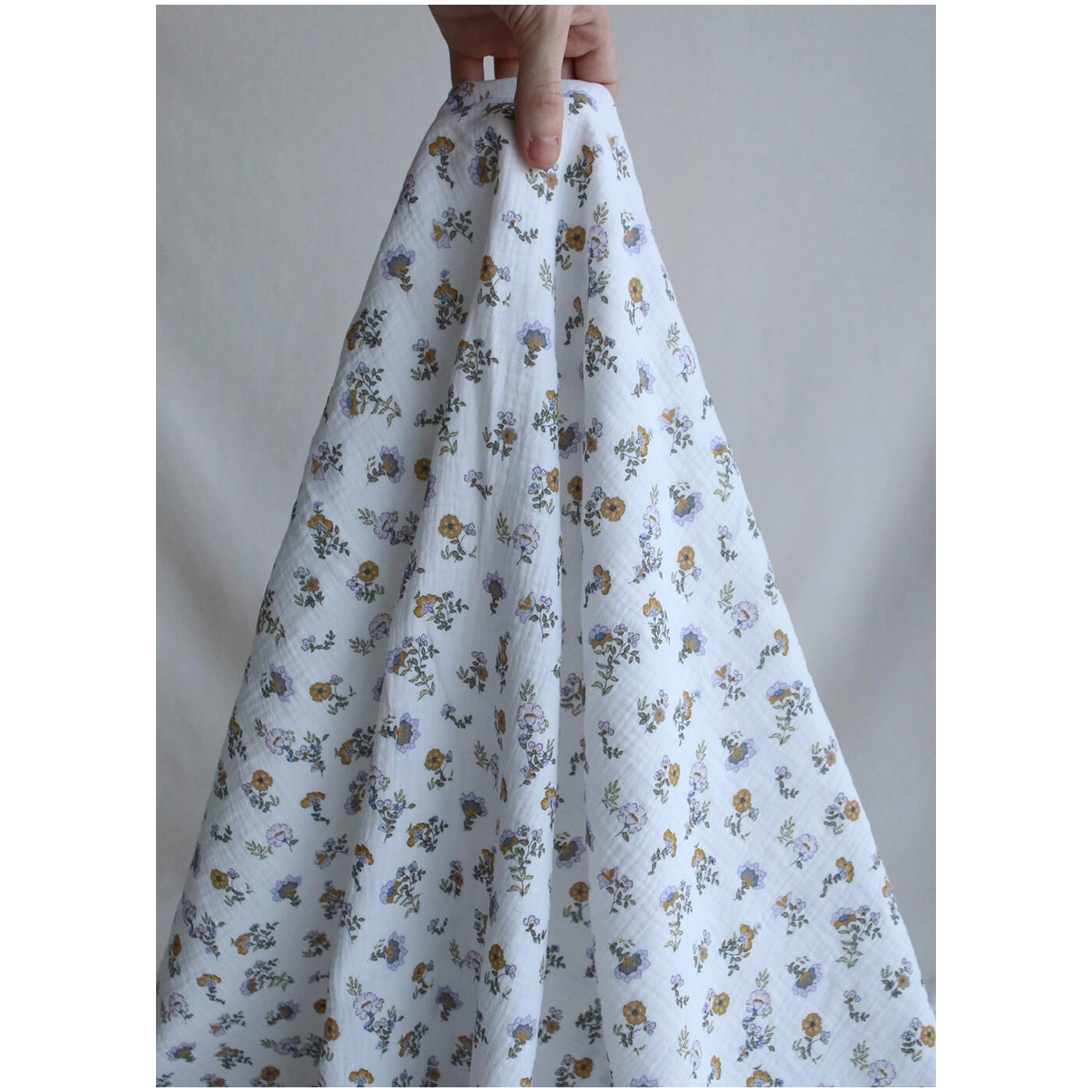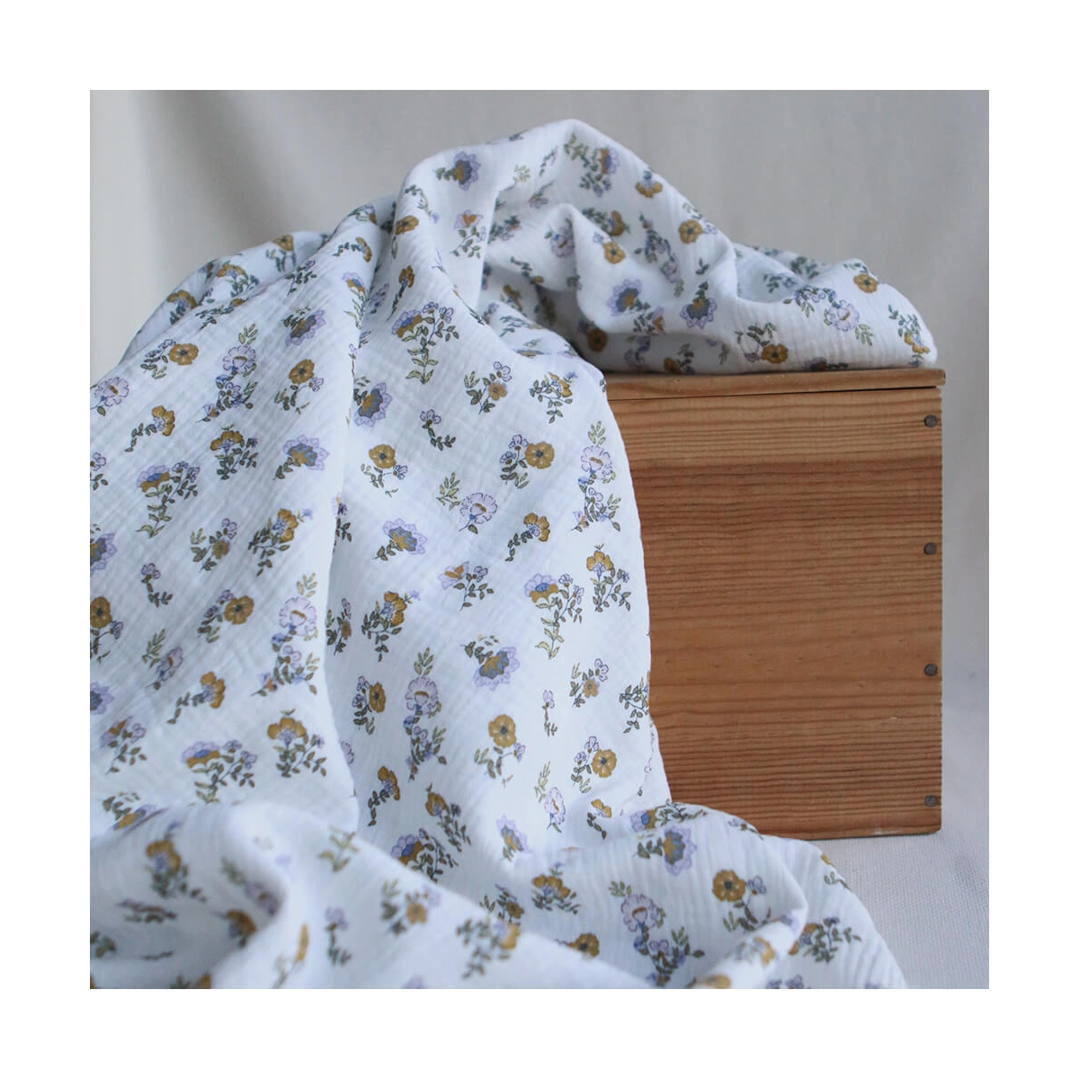 Azélie - Double gaze de coton motif fleuri parme moutarde et vert