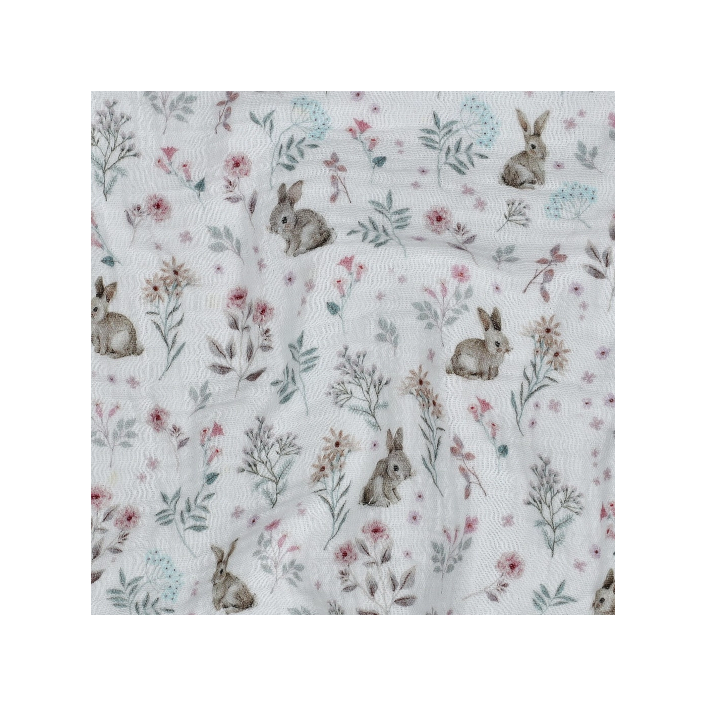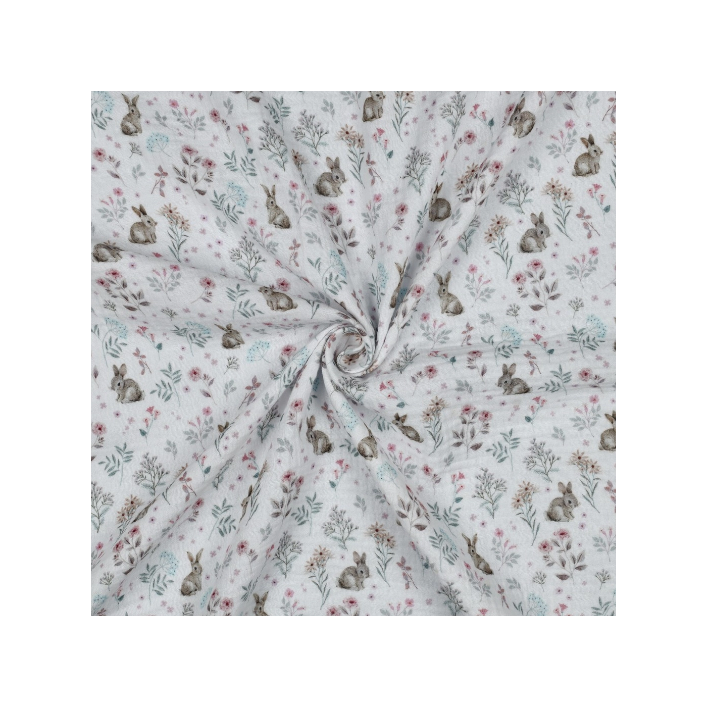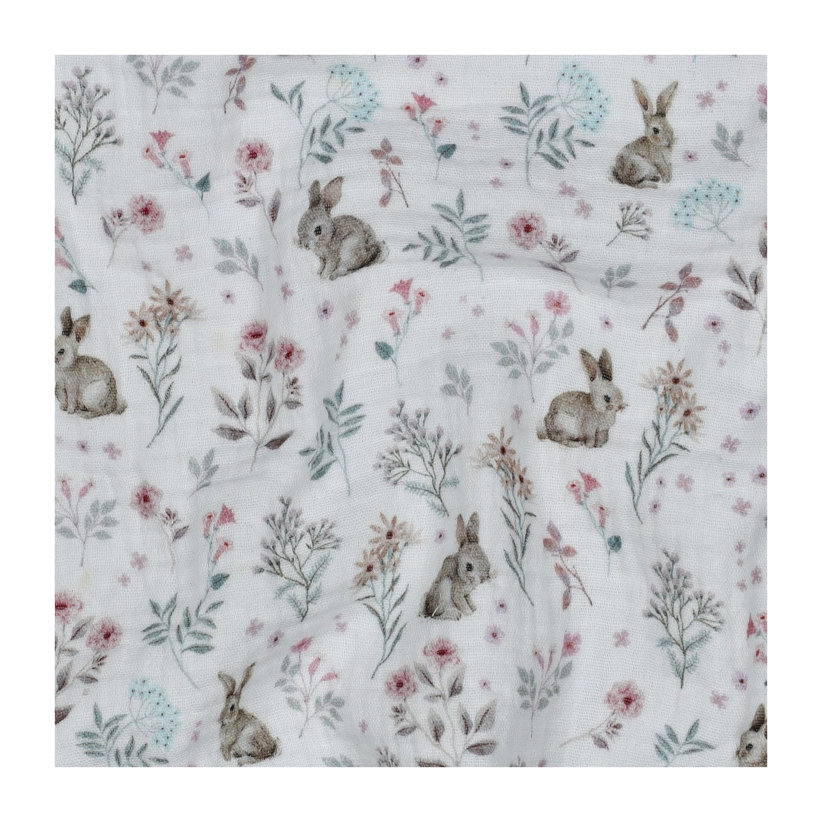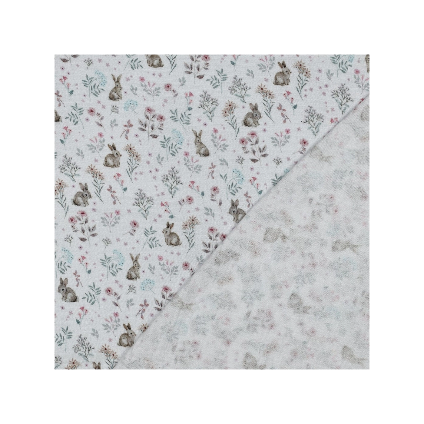Celia - Double gaze de coton motif petites fleurs et lapins