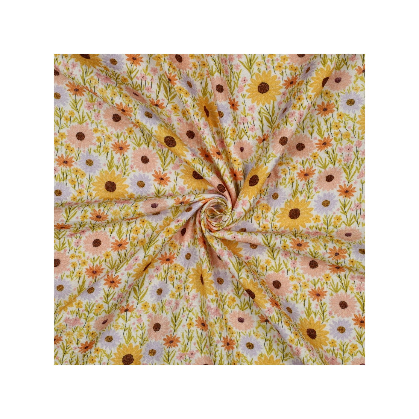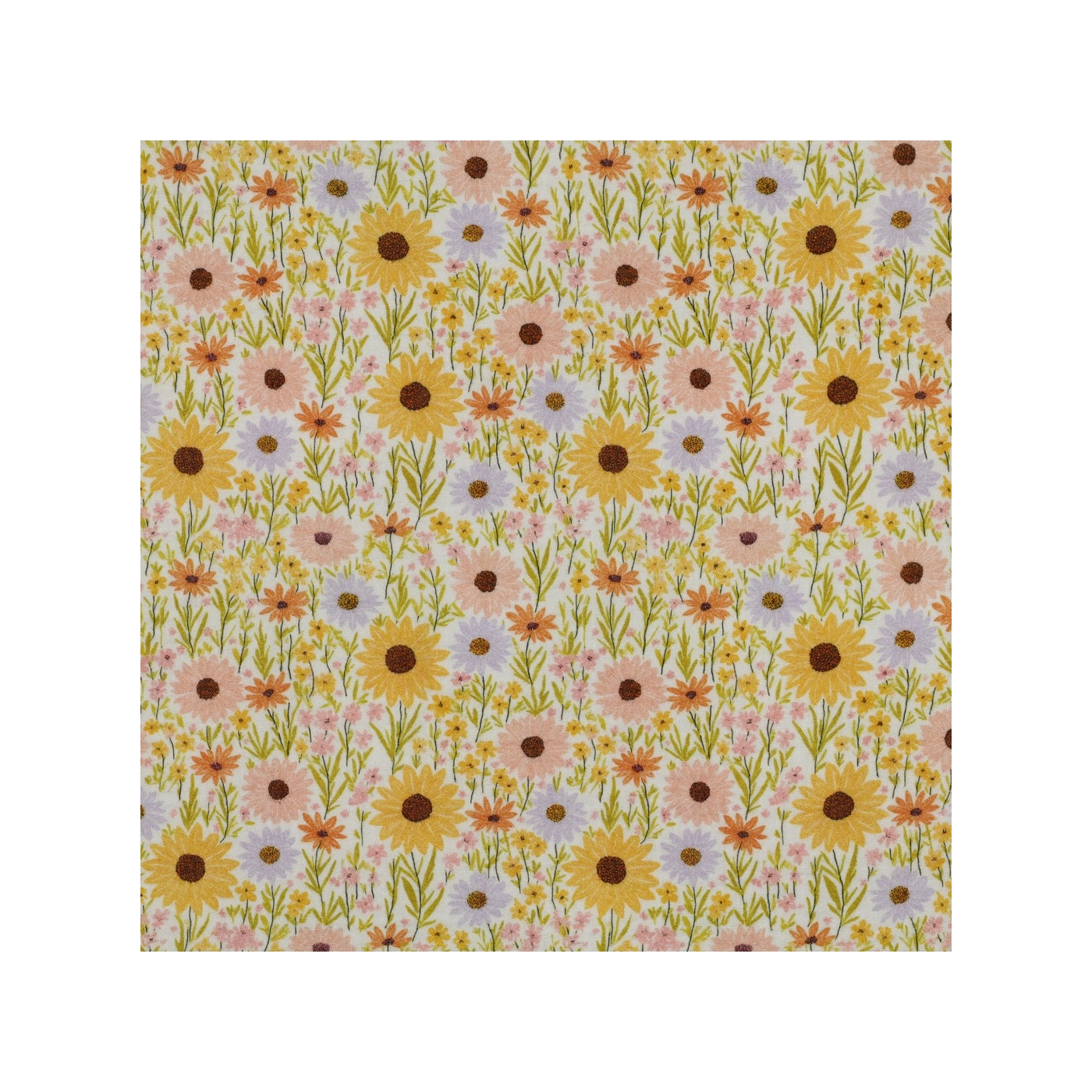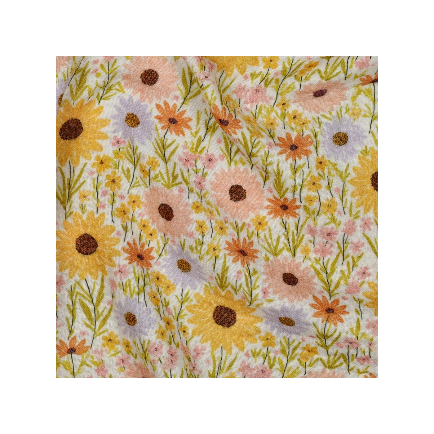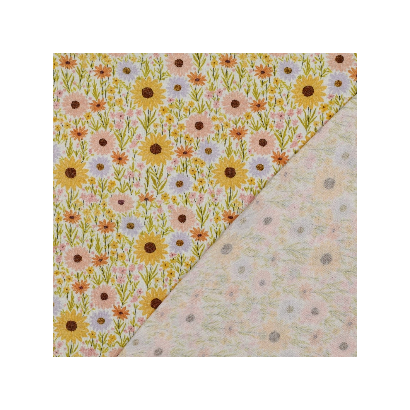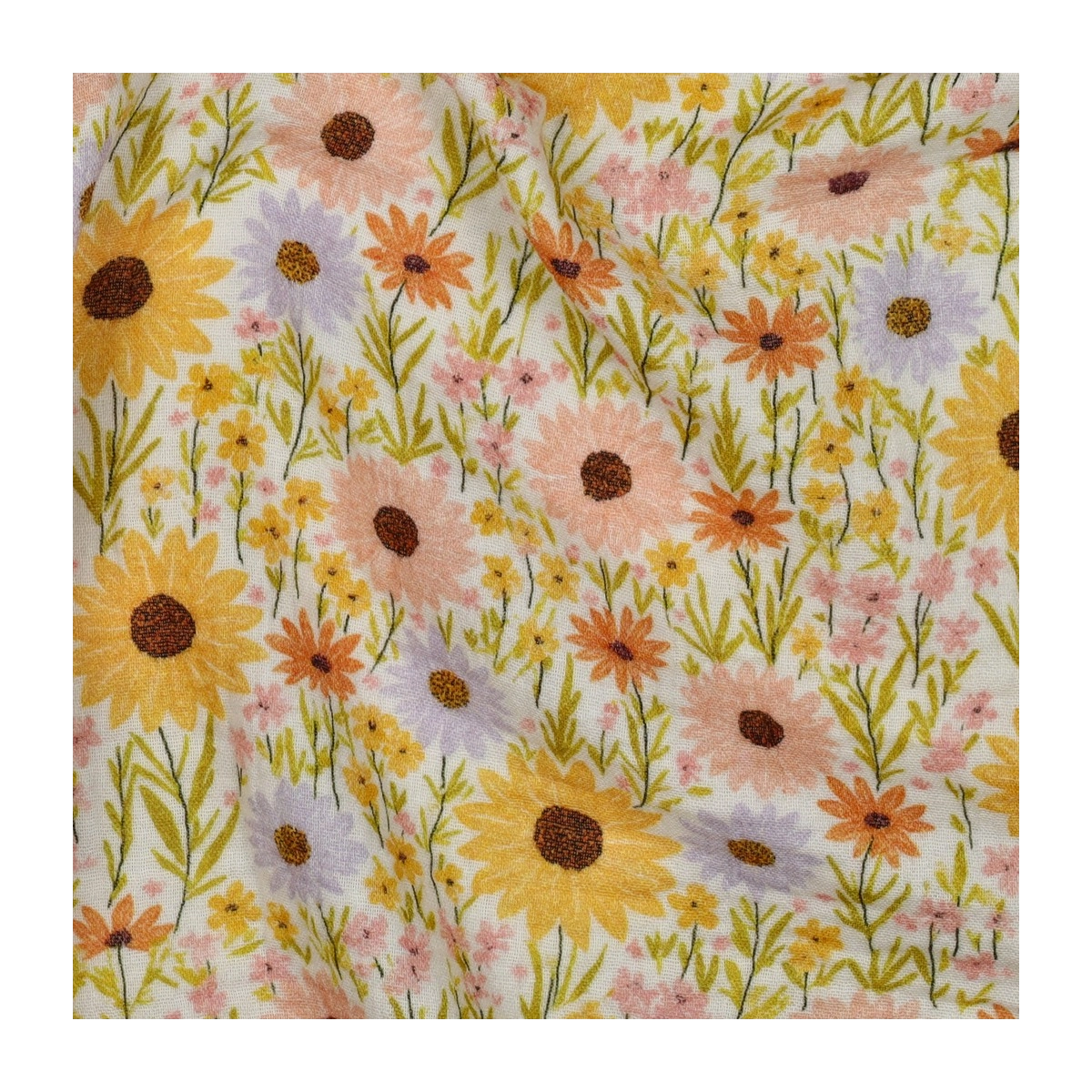 Calista - Double gaze de coton motif fleuri champêtre jaune