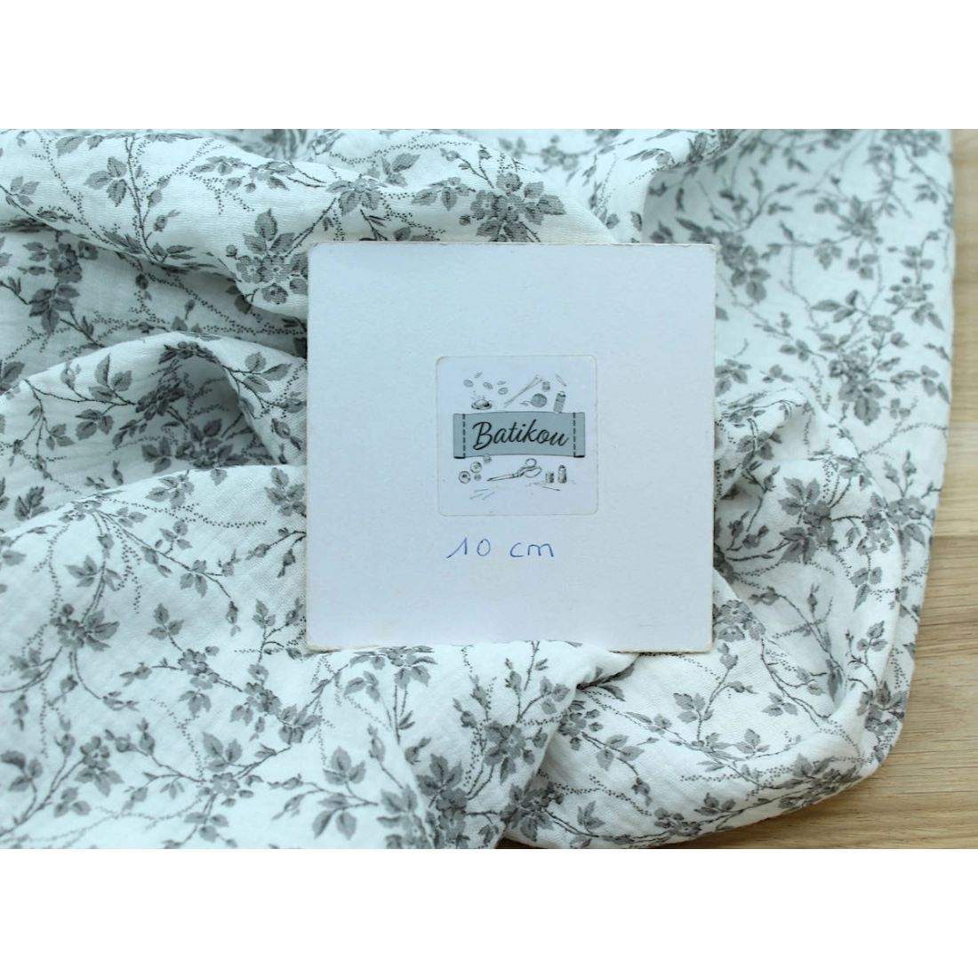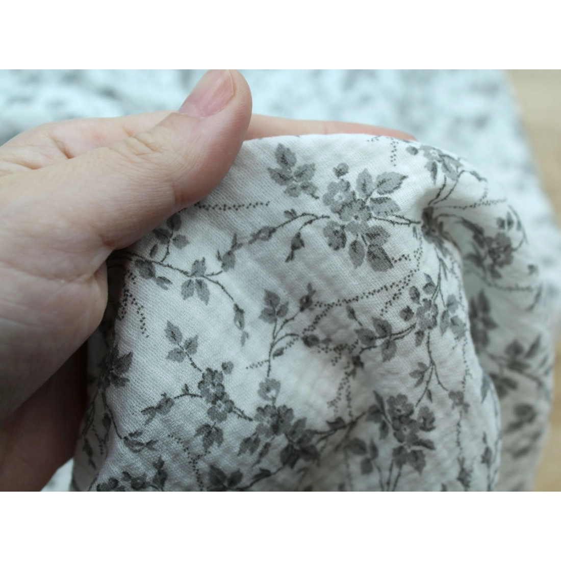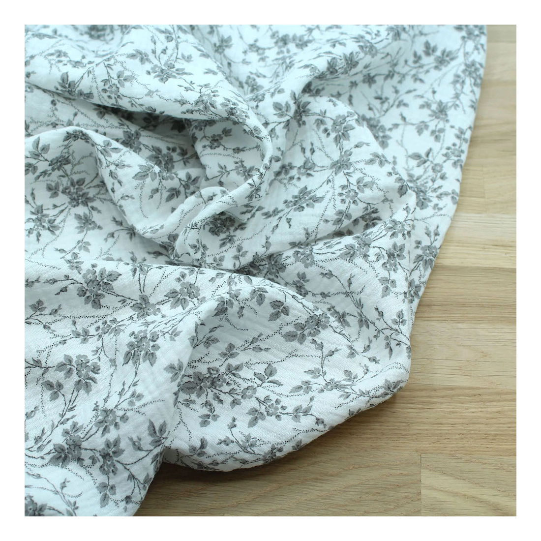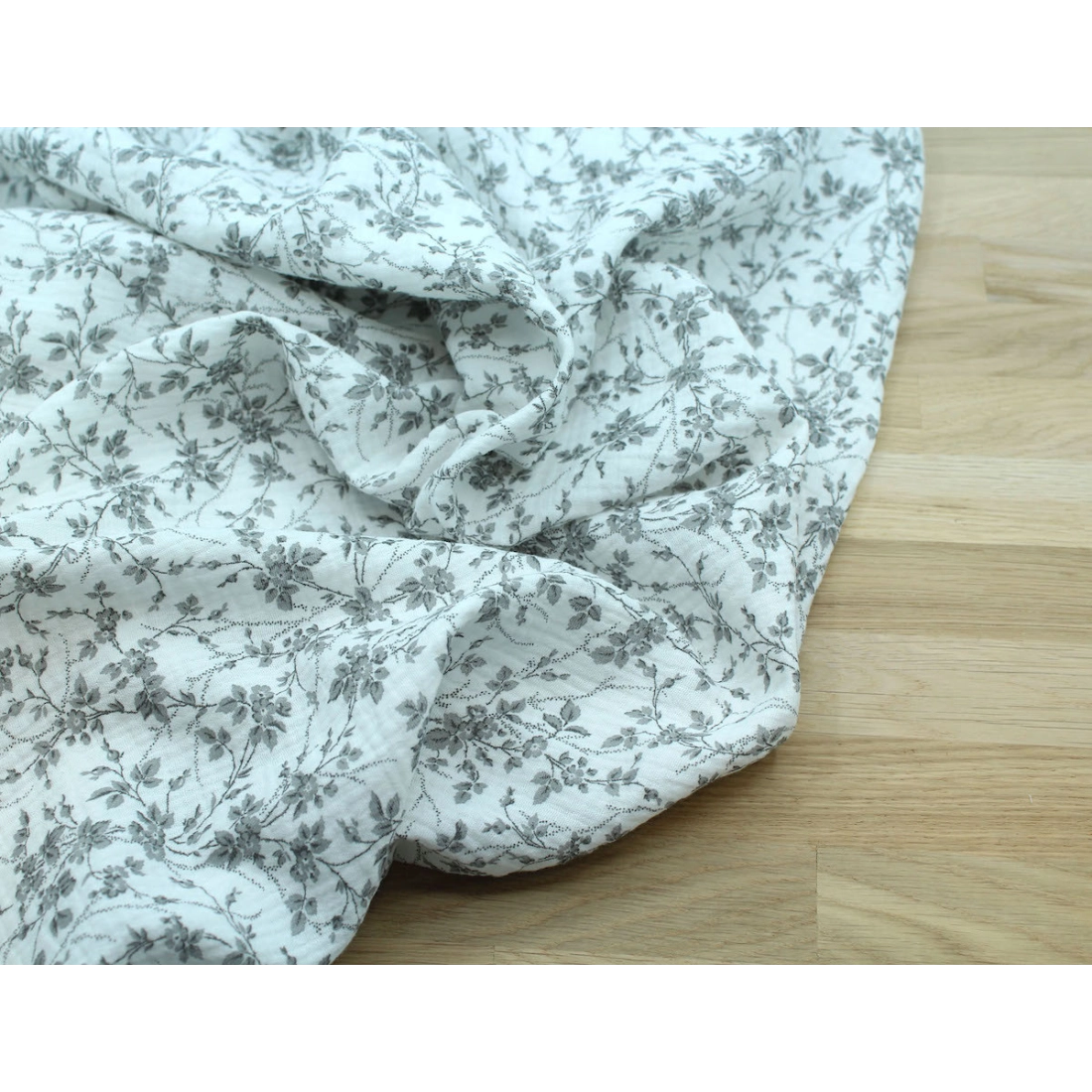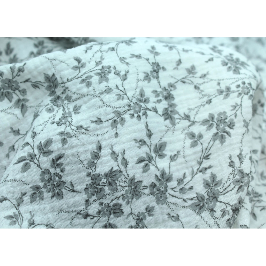Adele - Double gaze de coton BIO motif fleuri gris