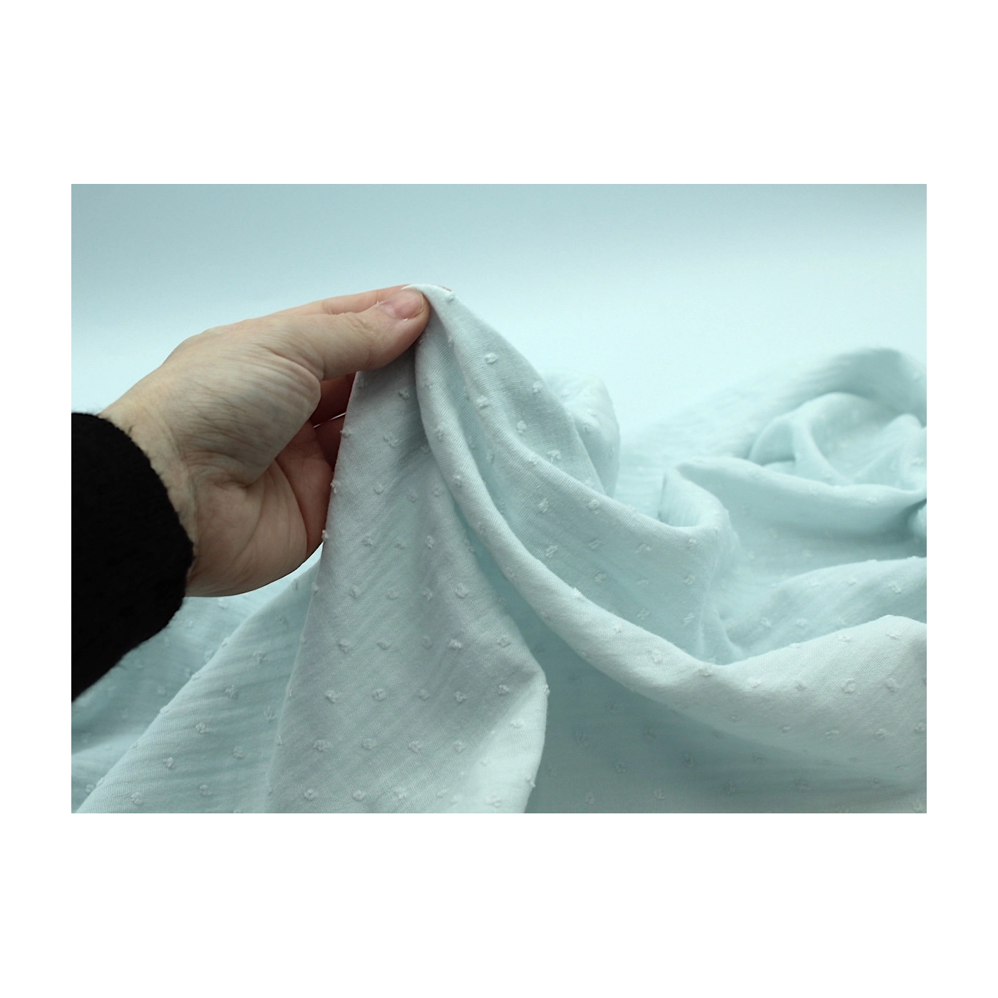 Double gaze de coton BIO plumetis bleu artique