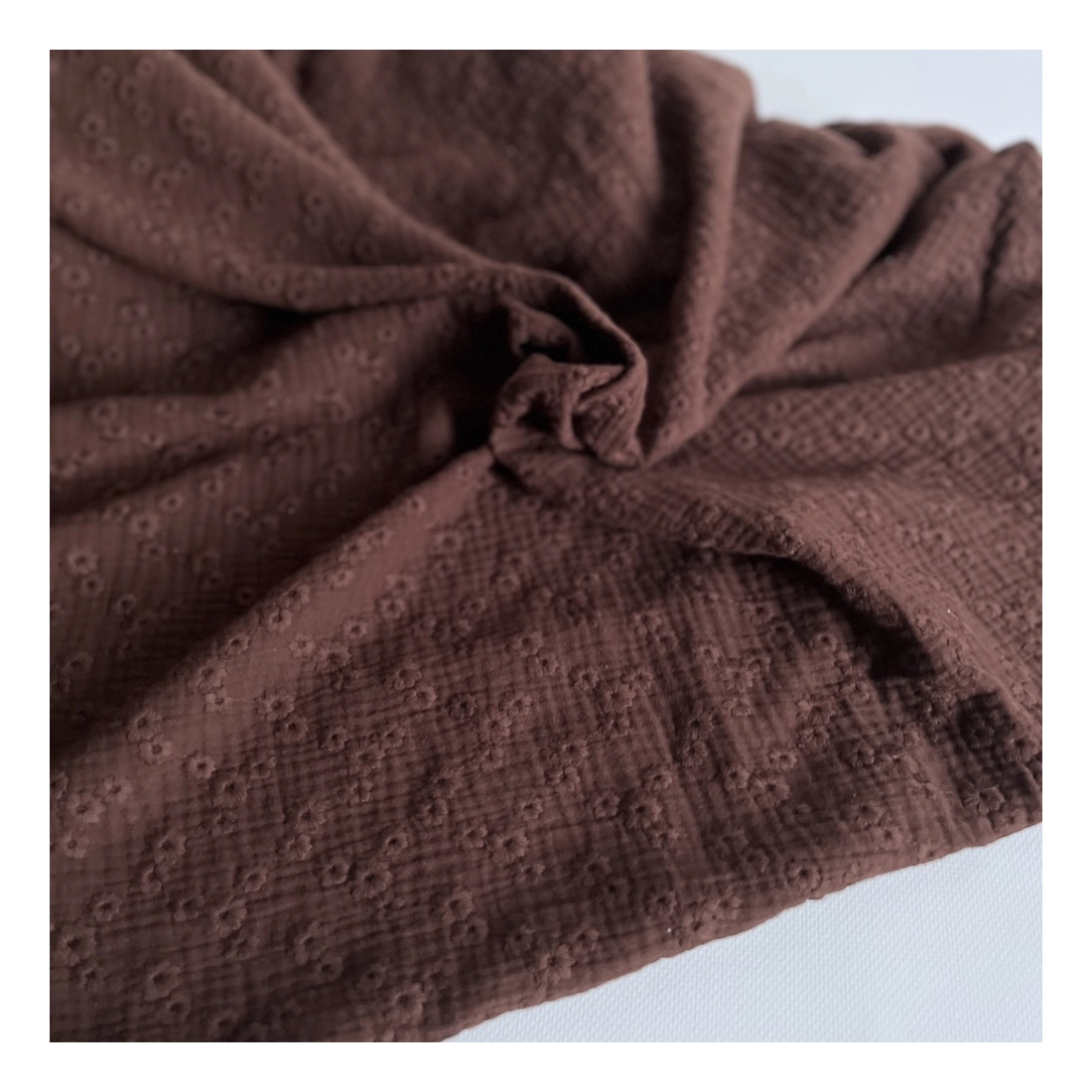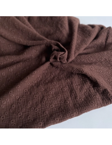 Double gaze de coton Esmée brodée coloris cacao